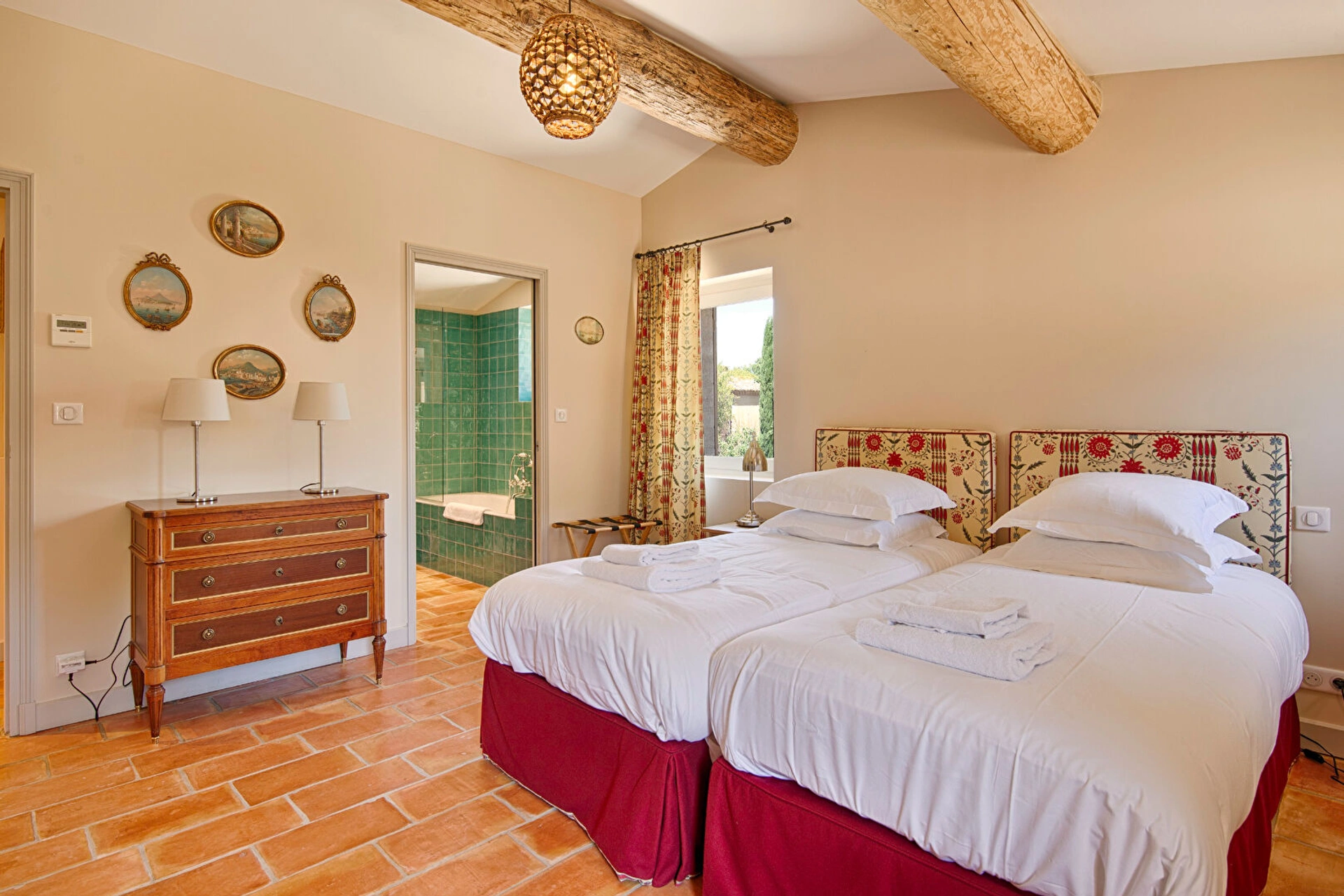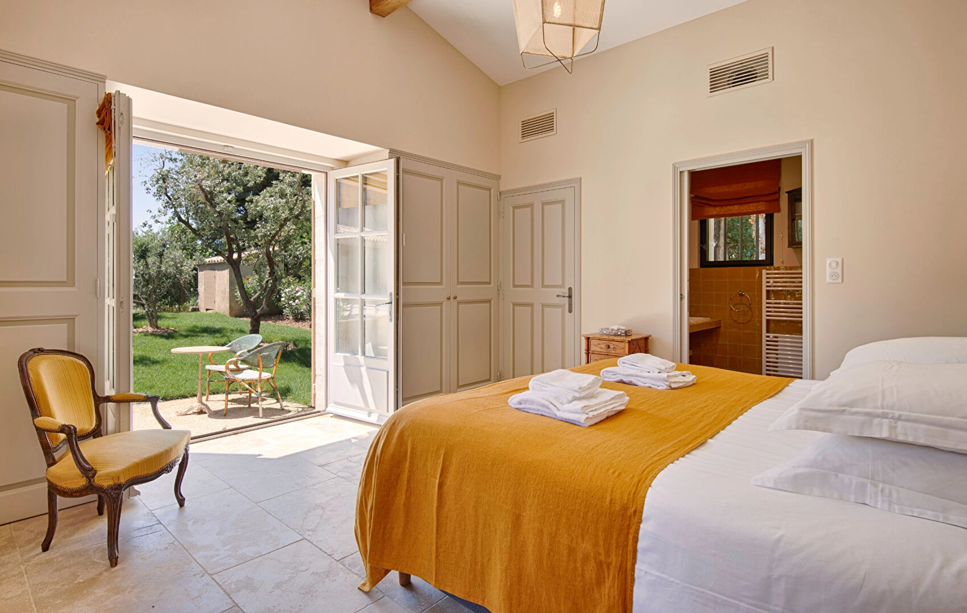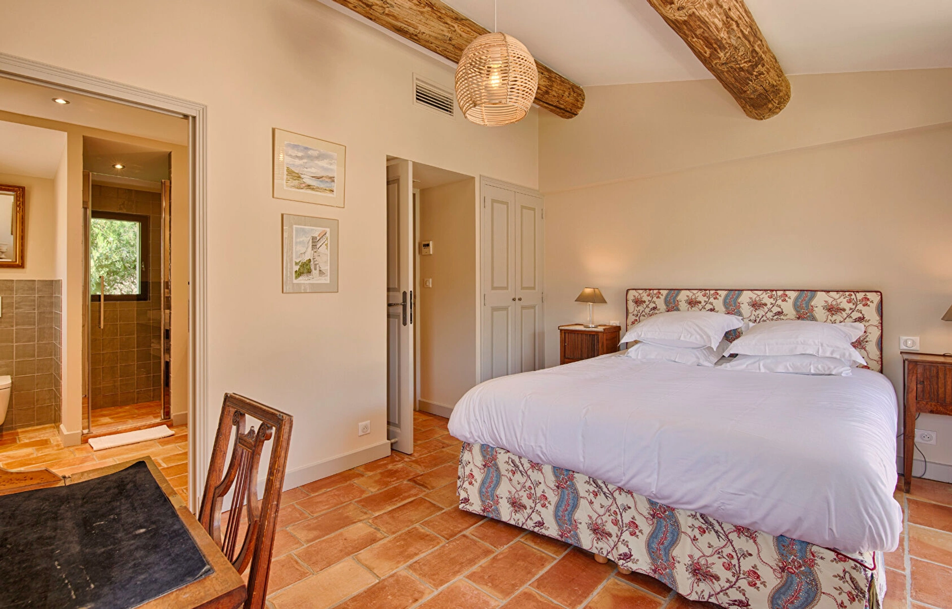 Le mas propose trois chambres spacieuses et lumineuses, décorées avec raffinement dans un style provençal authentique. Vous y trouverez également une salle d'eau contemporaine ainsi qu'une salle de bain entièrement équipée pour un confort optimal.