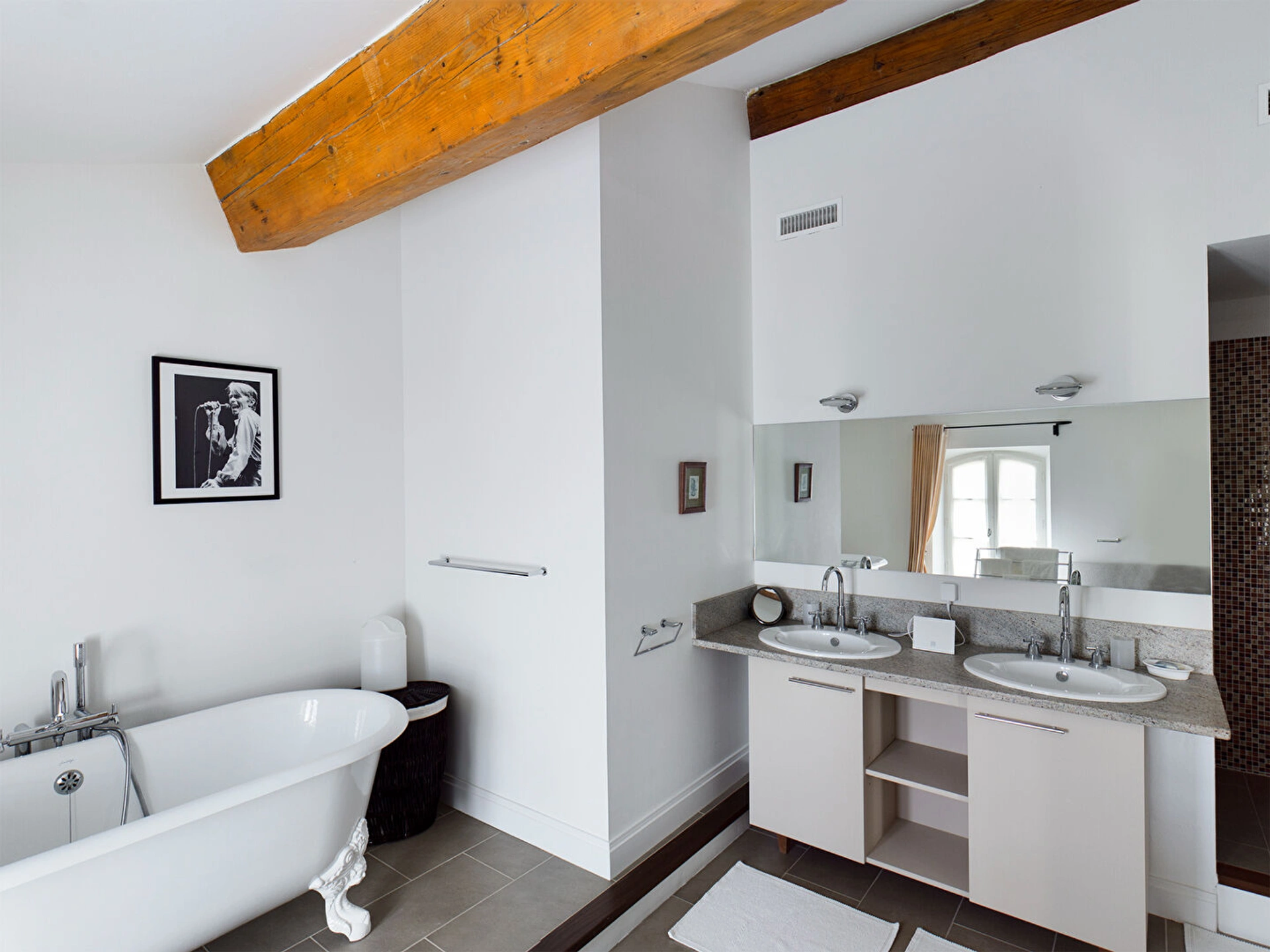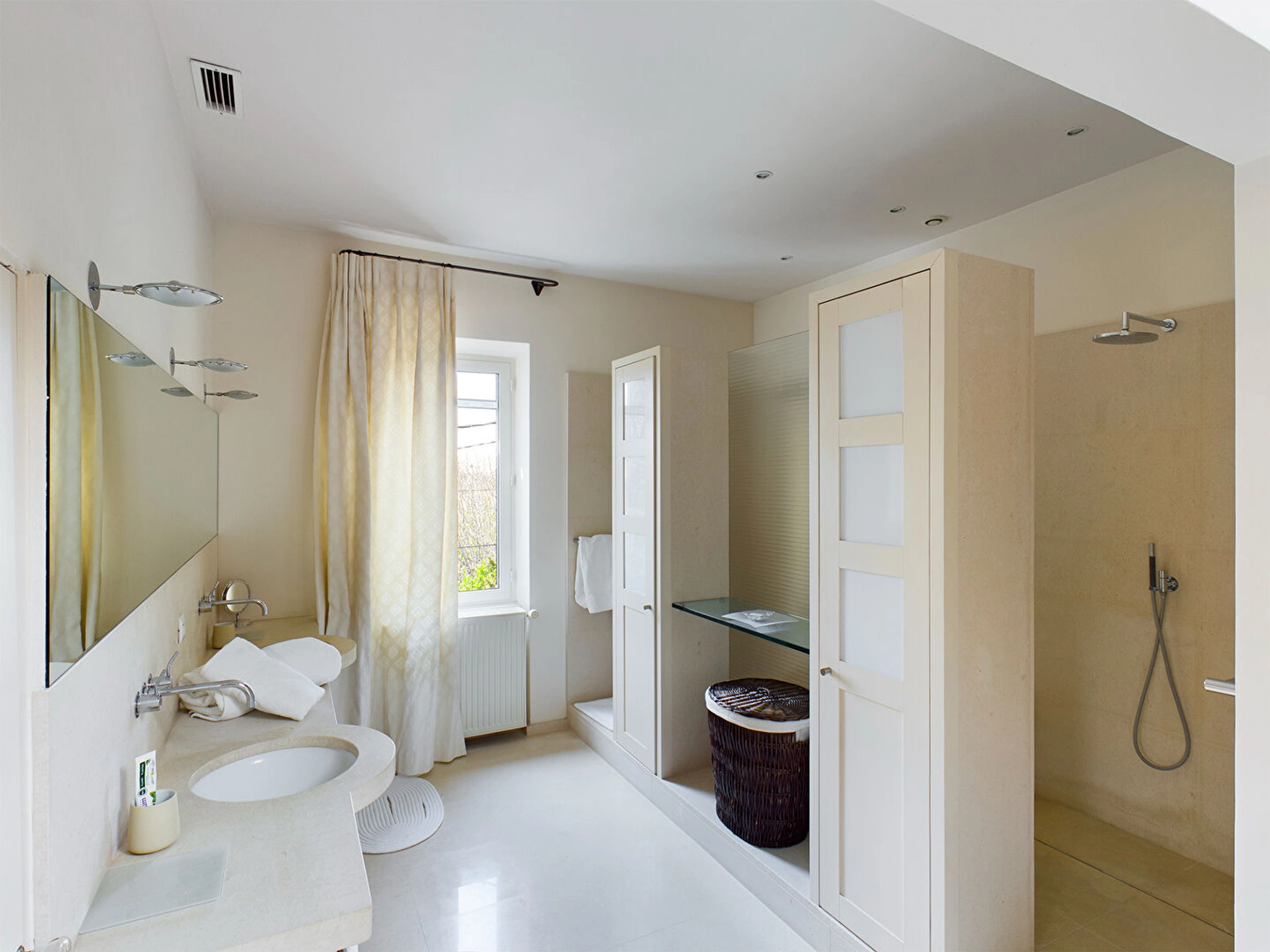 Dans le mas principal, le rez-de-chaussée abrite un vaste salon avec cheminée, une grande cuisine, une salle à manger, un second salon, ainsi qu'une suite avec salle d'eau. A l'étage, vous trouverez deux suites, dont l'une avec un spacieux dressing, ainsi qu'une buanderie fonctionnelle.
