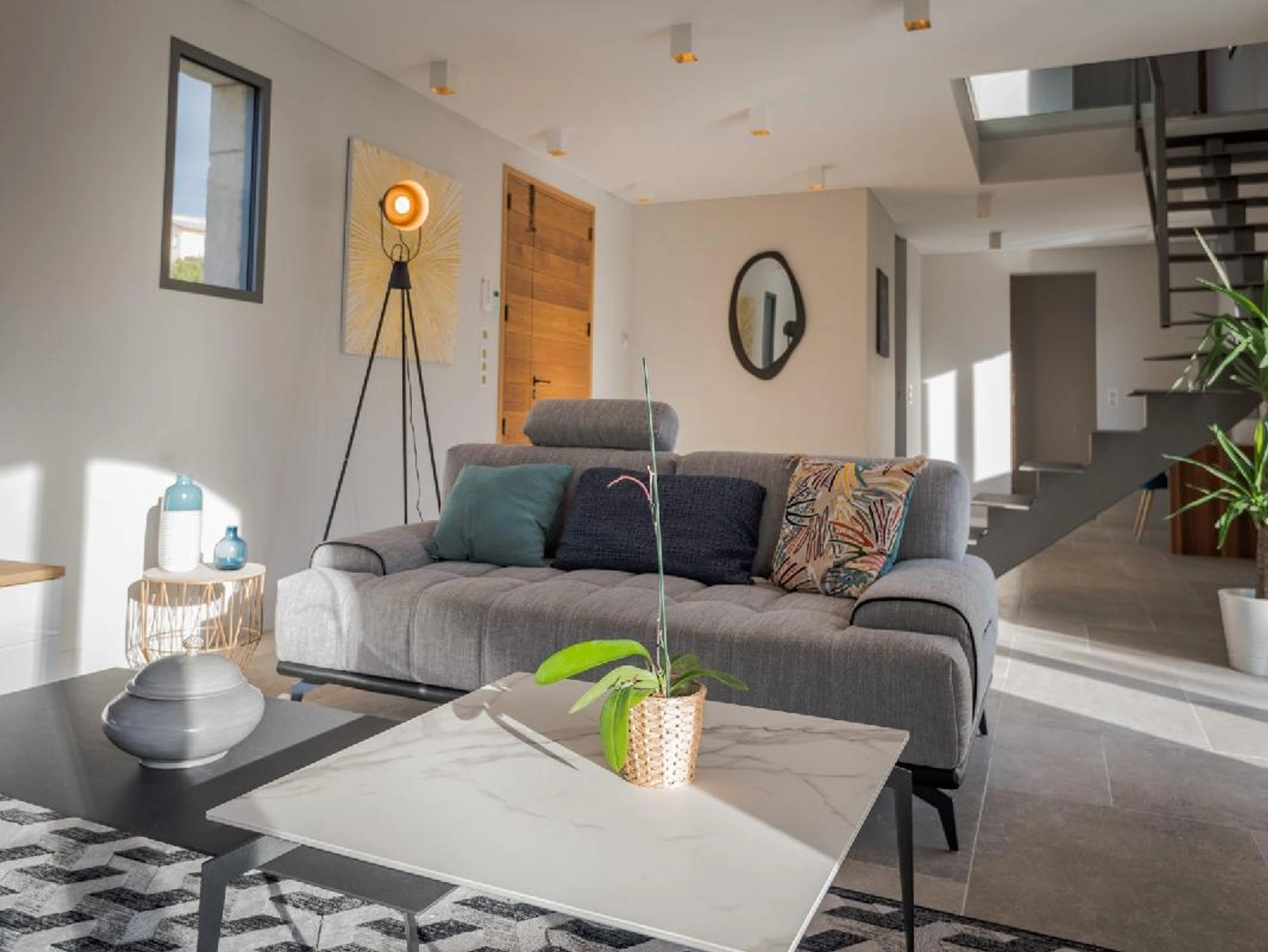 Cette maison contemporaine laisse place aux volumes pour que chaque pièce puisse bénéficier de grandeur, d'espace et de lumière. D'une surface de 222 m², vous trouverez au rez-de-chaussée, un grande pièce de vie de 80 m² alliant cuisine, salon, salle à manger, une suite parentale en 180 avec salle de bains (douche et baignoire), 2 wc séparés, vestiaire, coin bureau et à l'étage, 3 suites avec chacune un wc séparé. Côté jardin, deux coups de coeur occasionneront l'envie irrésistible de profiter pleinement de l'espace extérieur : une piscine de 10 x 4 entourée de bains de soleil et d'un salon de jardin et une terrasse principale de 249 m², futur QG des repas, parties de carte... Plancher rafraîchissant au rdc et climatisation dans les chambres à l'étage.