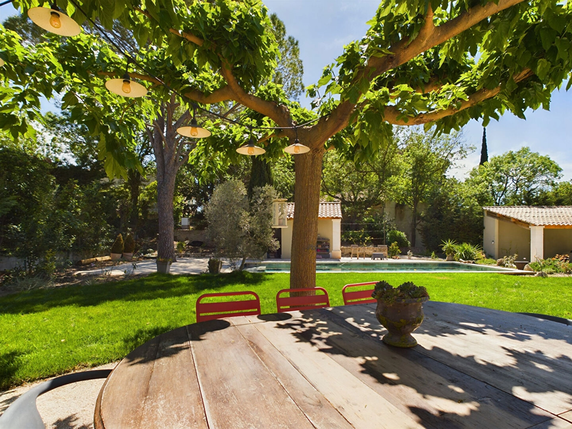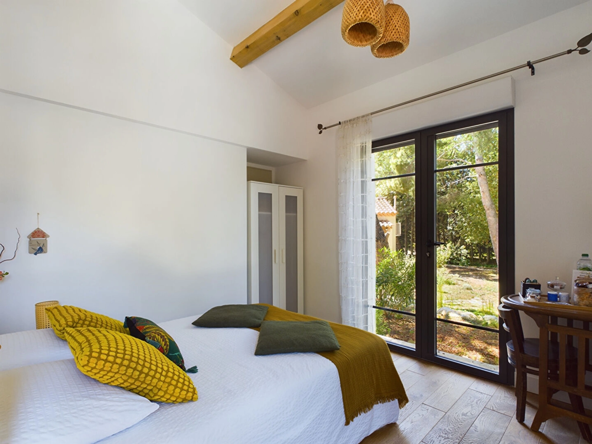 Le grand jardin méditerranéen, orné d'une magnifique piscine, est un véritable refuge pour se détendre ou profiter de moments de baignade en toute sérénité. A l'intérieur, le mas a été rénové avec soin, alliant authenticité et modernité. Les espaces de vie, lumineux et spacieux, sont parfaits pour les moments conviviaux, tandis que la cuisine entièrement équipée vous permettra de préparer de délicieux repas à savourer autour de la grande table ou sur la terrasse ombragée, idéale pour vos dîners en été.