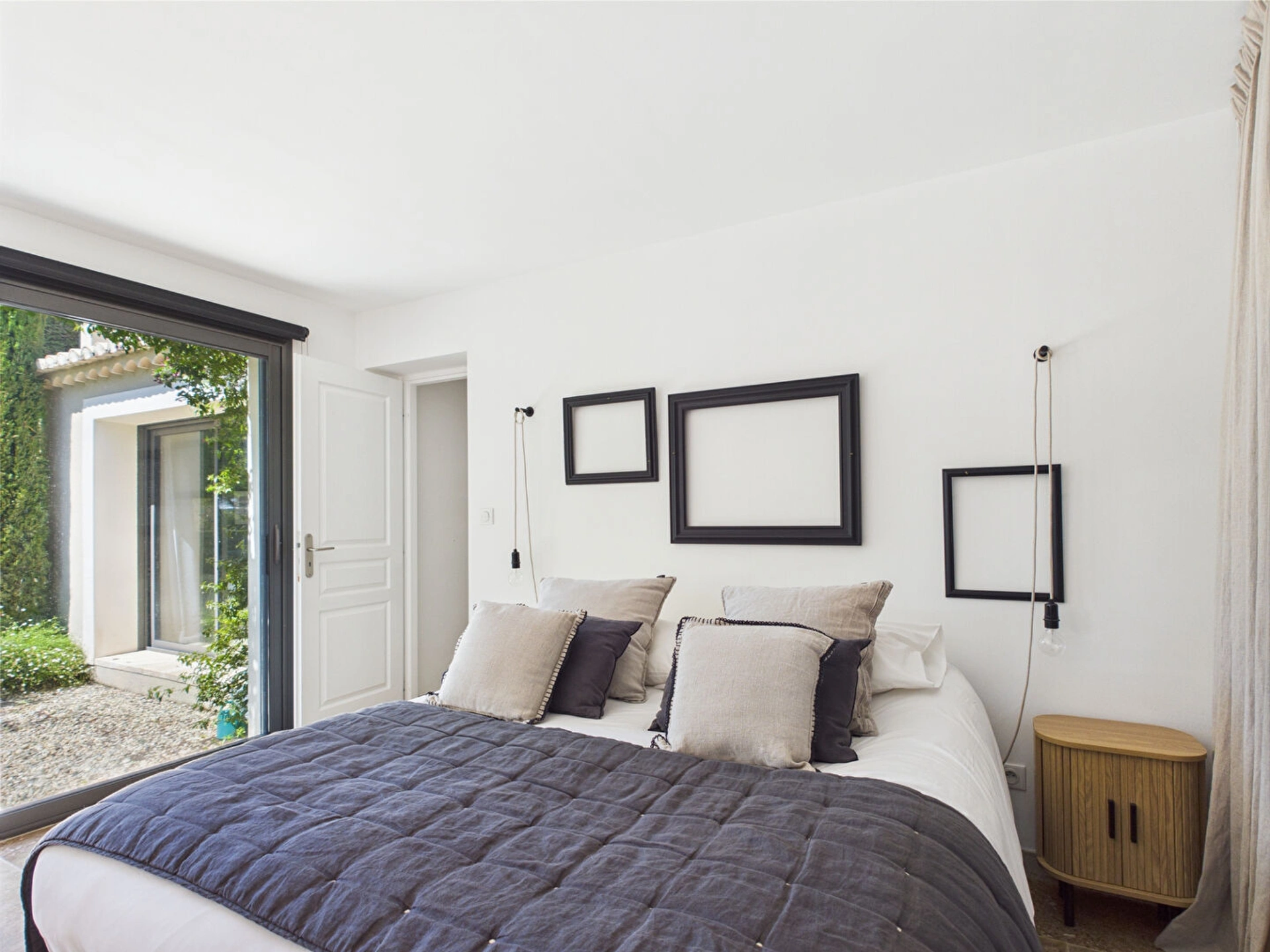 une salle à manger lumineuse et un salon confortable, tous deux donnant accès à l'extérieur. Côté nuit : une première chambre avec lit double (160 cm), une petite chambre avec lit double (140 cm), parfaite pour deux enfants ou un couple, qui se partagent une salle d'eau et une suite parentale avec lit double, dressing privatif et accès à une salle de bain.