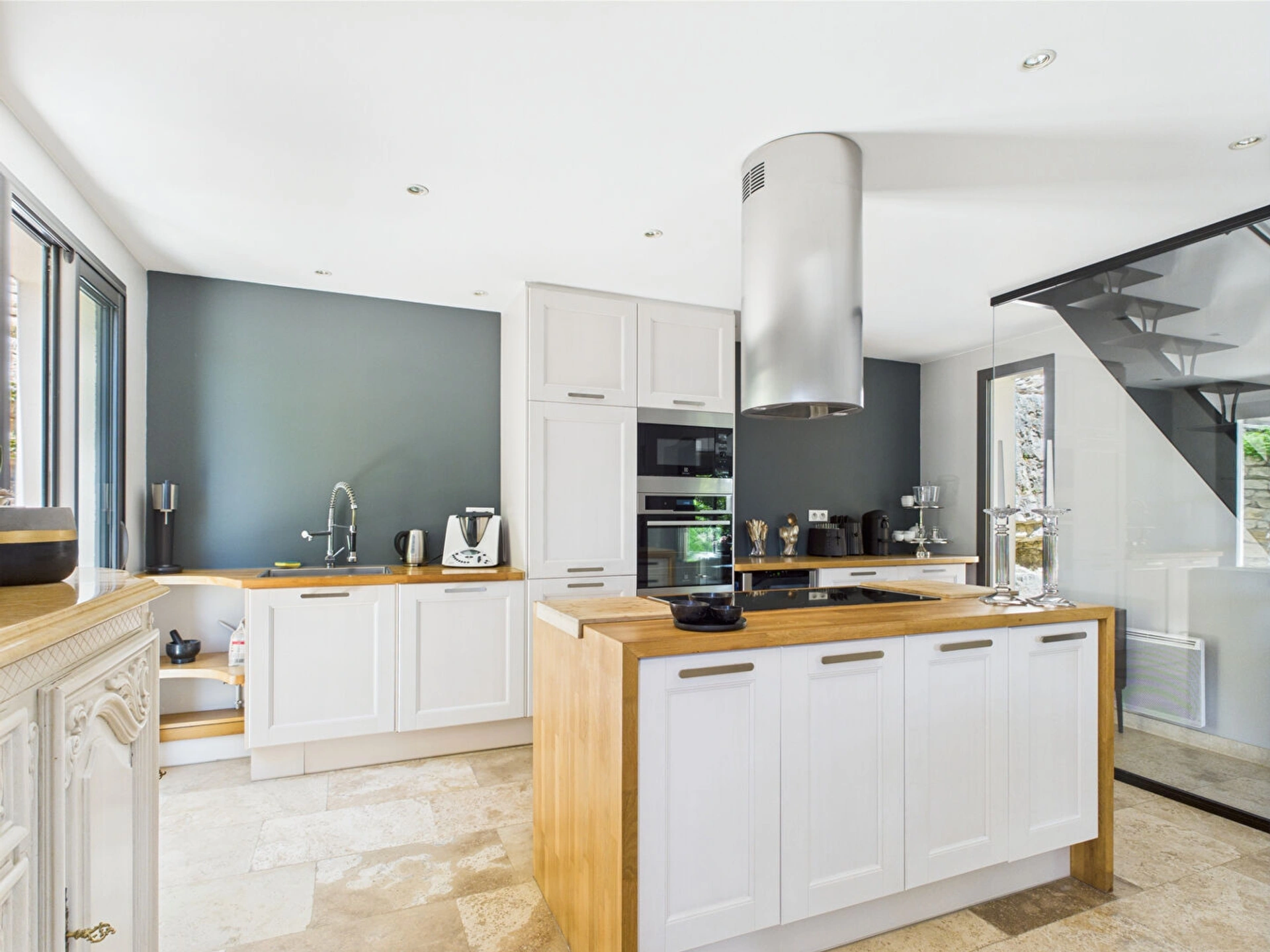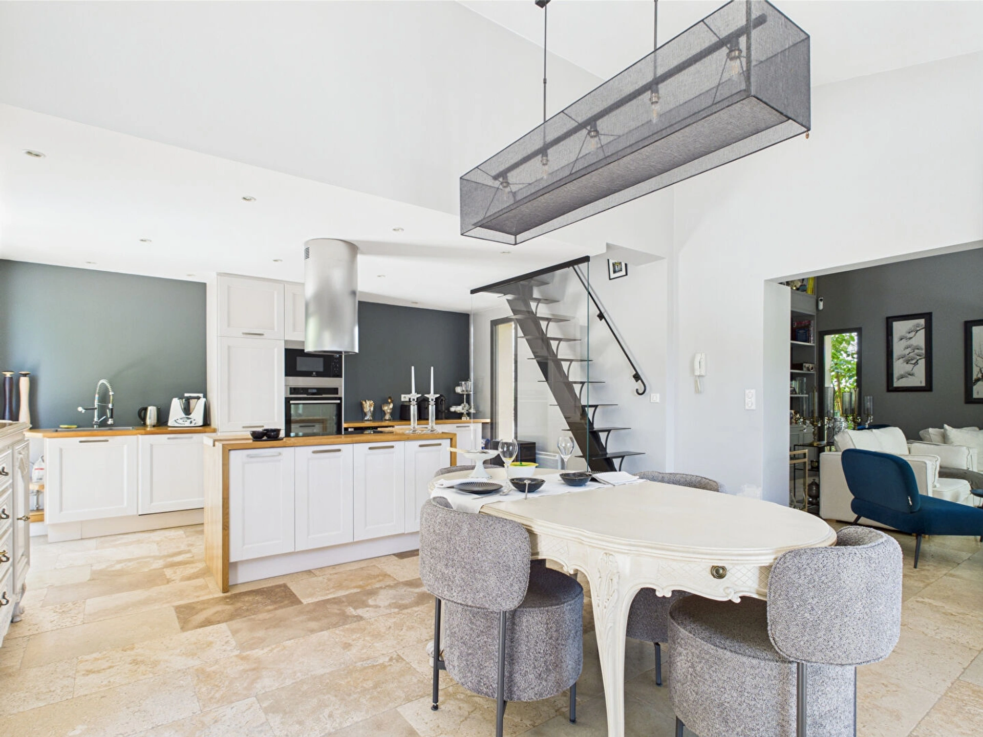 L'intérieur de la maison se distingue par sa clarté, son agencement fluide et sa décoration élégante, mêlant matériaux nobles et touches contemporaines. Elle comprend : Une entrée accueillante ouvrant sur un espace de vie chaleureux et convivial, une cuisine ouverte entièrement équipée, idéale pour cuisiner en famille ou entre amis,
