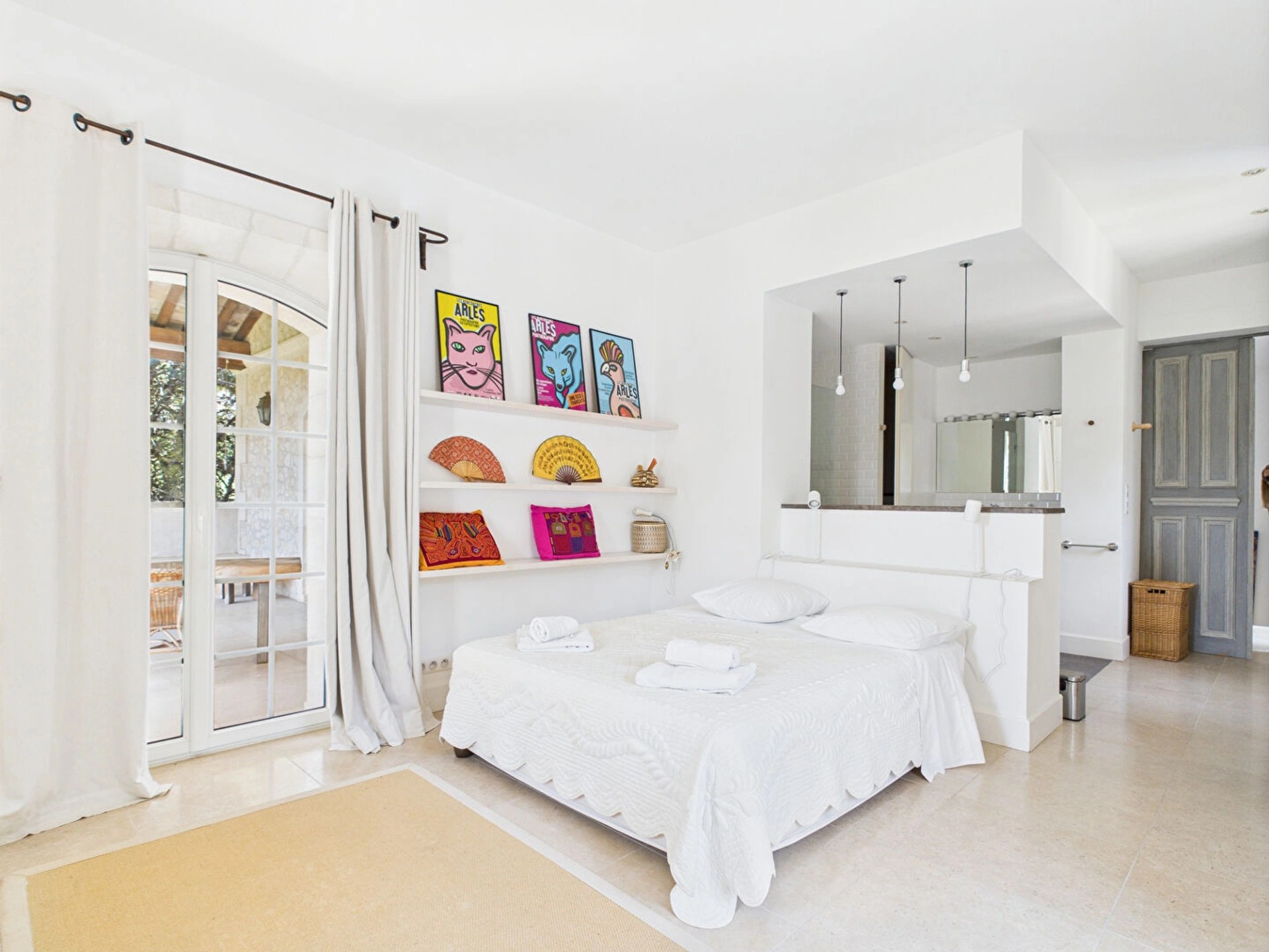 My Home Connexion vous propose à la location saisonnière ce magnifique mas, niché au coeur d'un domaine confidentiel, entouré d'une nature préservée au sein des Alpilles. Implantée sur un terrain de 1,5 hectare, cette propriété d'exception se compose de trois maisons indépendantes, pouvant accueillir jusqu'à 14 personnes.