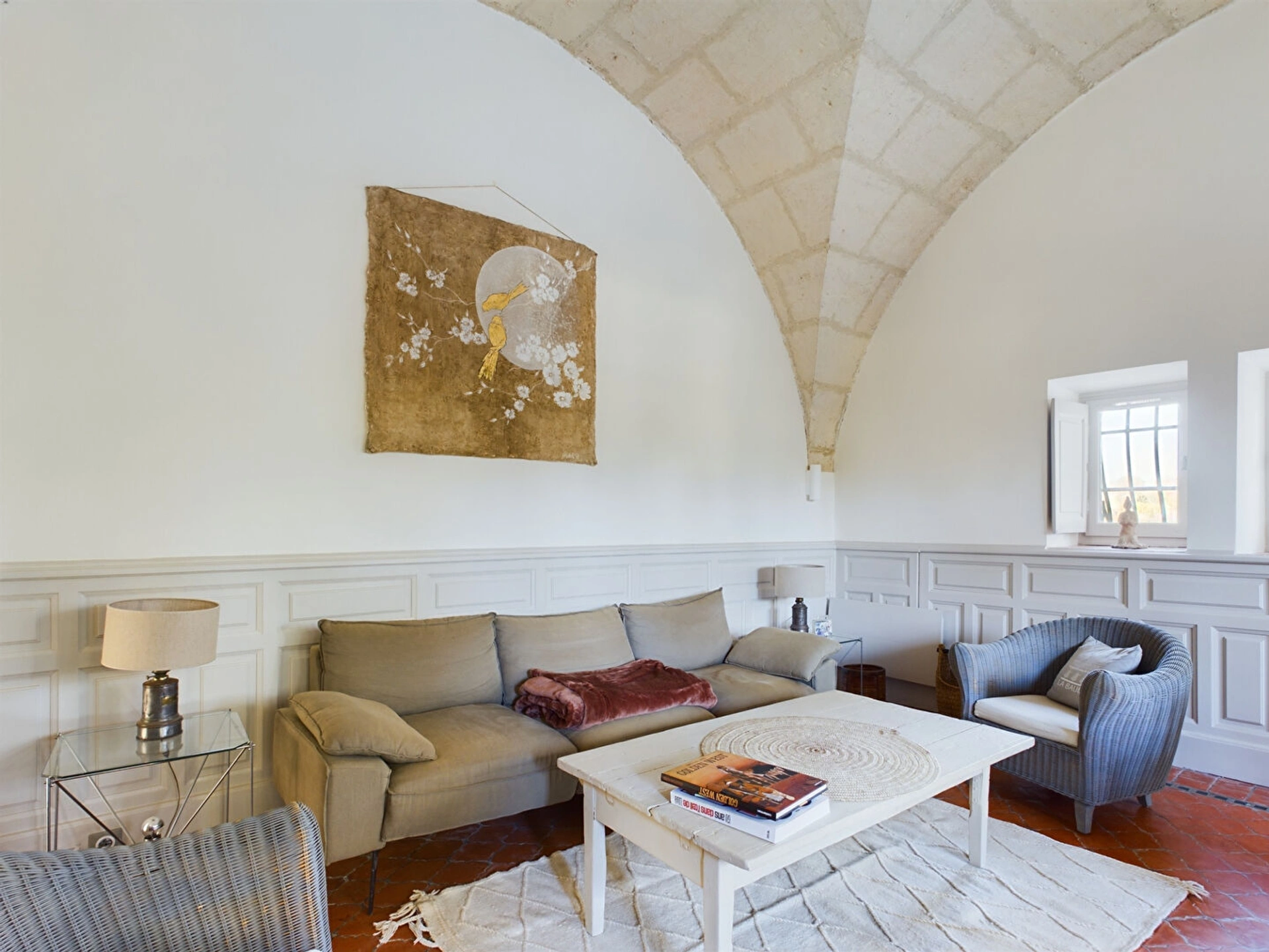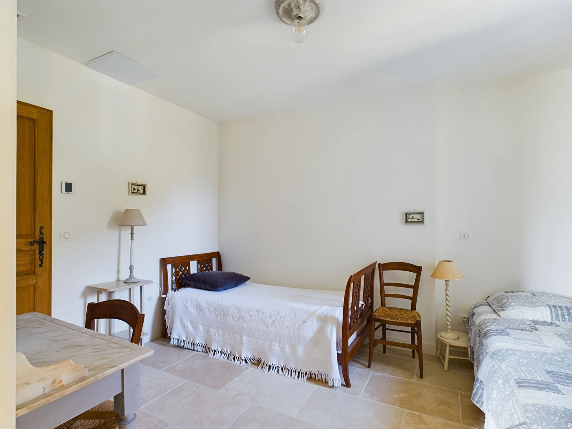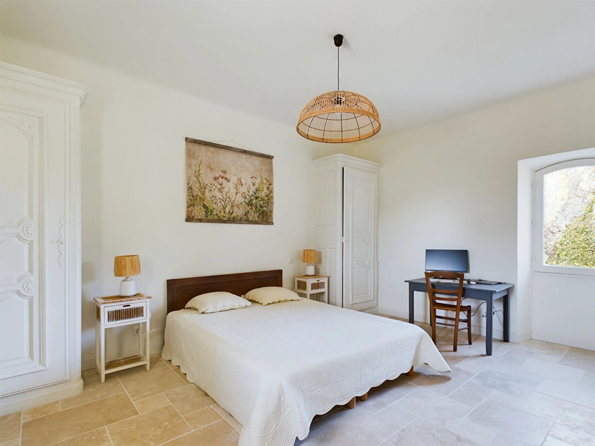 Le mas principal comprend cinq chambres spacieuses, décorées avec soin : trois chambres disposent chacune de leur propre salle d'eau, tandis que deux chambres partagent une salle de bain. La cuisine entièrement équipée s'ouvre sur deux terrasses, tandis que la salle à manger voûtée crée une ambiance chaleureuse et authentique. Le salon est un véritable havre de convivialité et de détente.