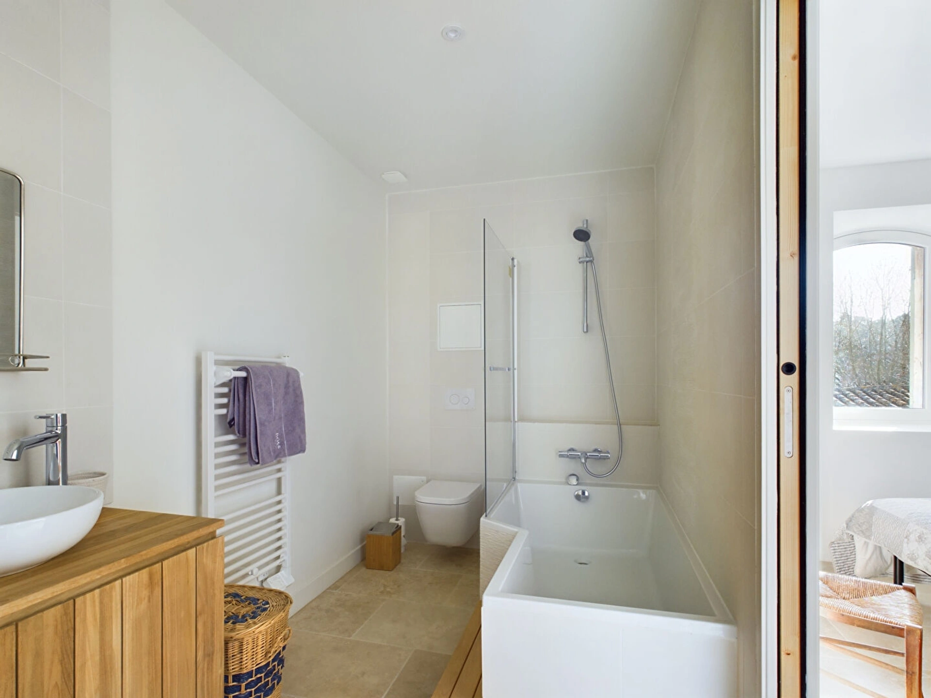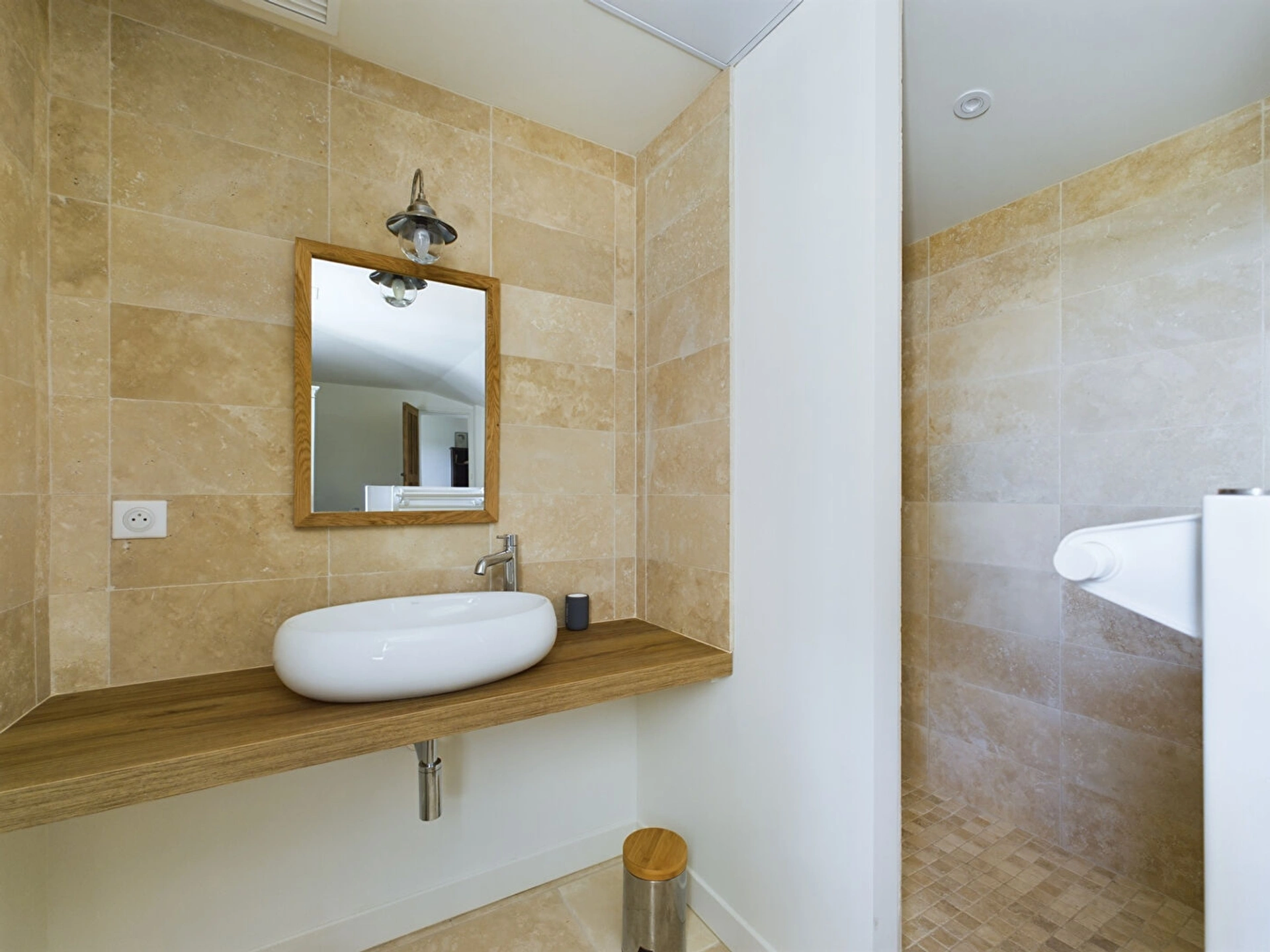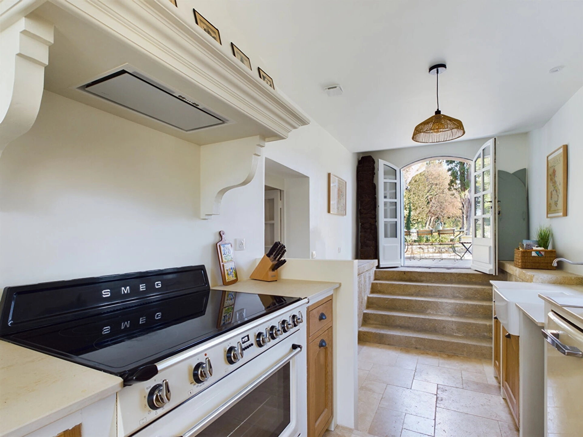 Le mas principal comprend cinq chambres spacieuses, décorées avec soin : trois chambres disposent chacune de leur propre salle d'eau, tandis que deux chambres partagent une salle de bain. La cuisine entièrement équipée s'ouvre sur deux terrasses, tandis que la salle à manger voûtée crée une ambiance chaleureuse et authentique. Le salon est un véritable havre de convivialité et de détente.