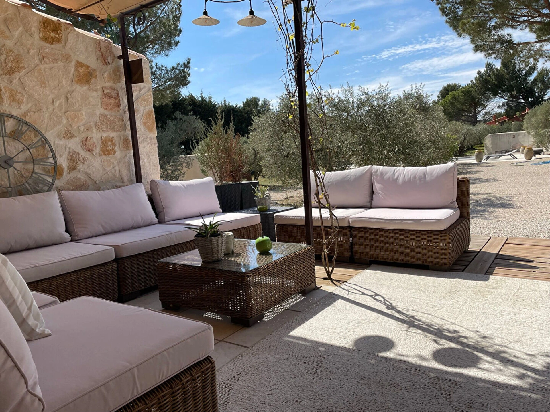 Les atouts extérieurs de cette propriété incluent une grande piscine de 13 x 5 mètres, entourée de transats et de verdure, parfaite pour se rafraîchir ou se détendre sous le soleil. Un pool house aménagé est l'endroit idéal pour savourer un cocktail, lire un livre ou simplement profiter de l'ombre et de la douceur de la Provence. Le mas est niché au coeur d'un environnement calme et verdoyant, offrant des vues magnifiques sur les oliviers et les paysages typiques de la région.