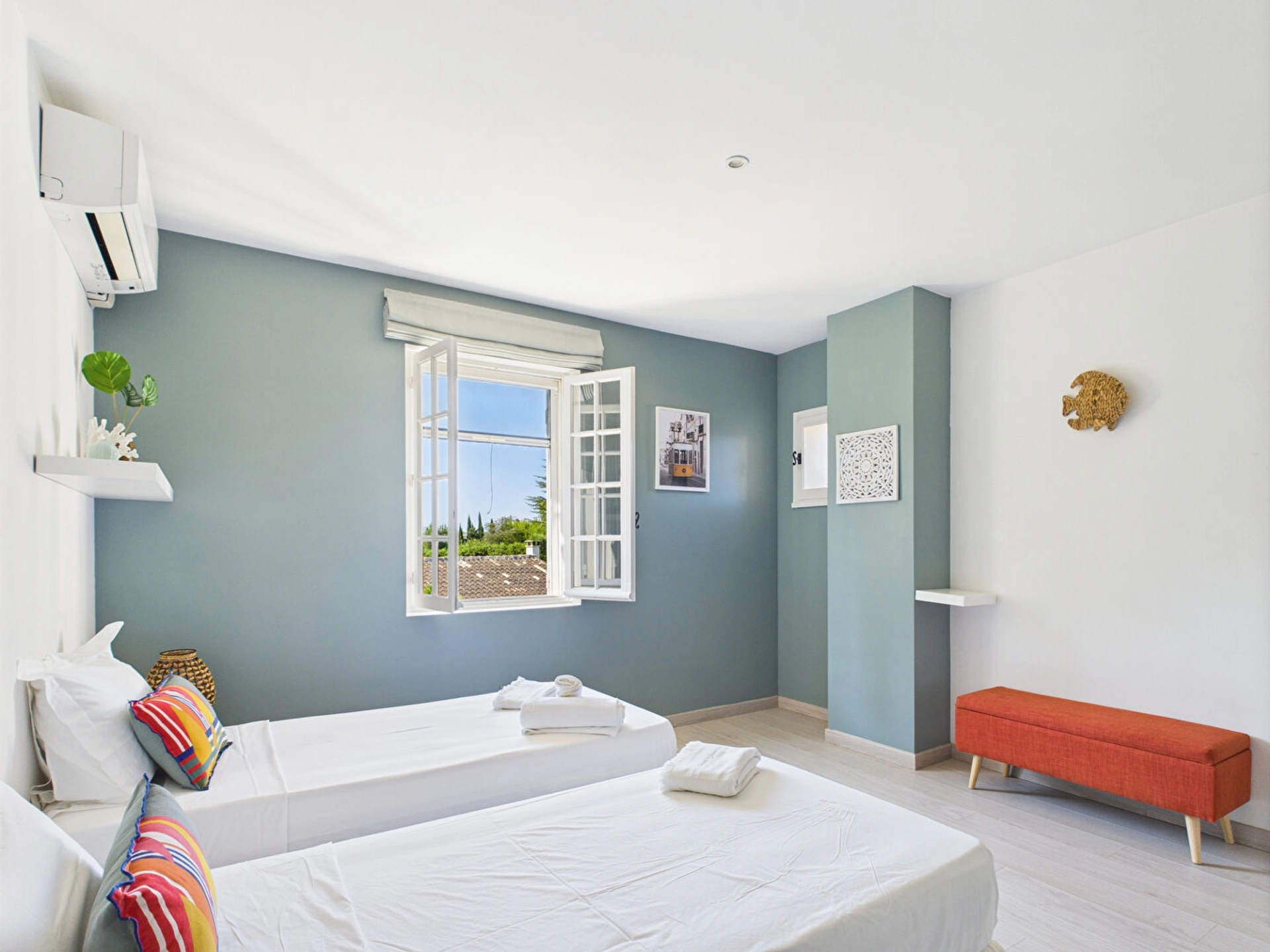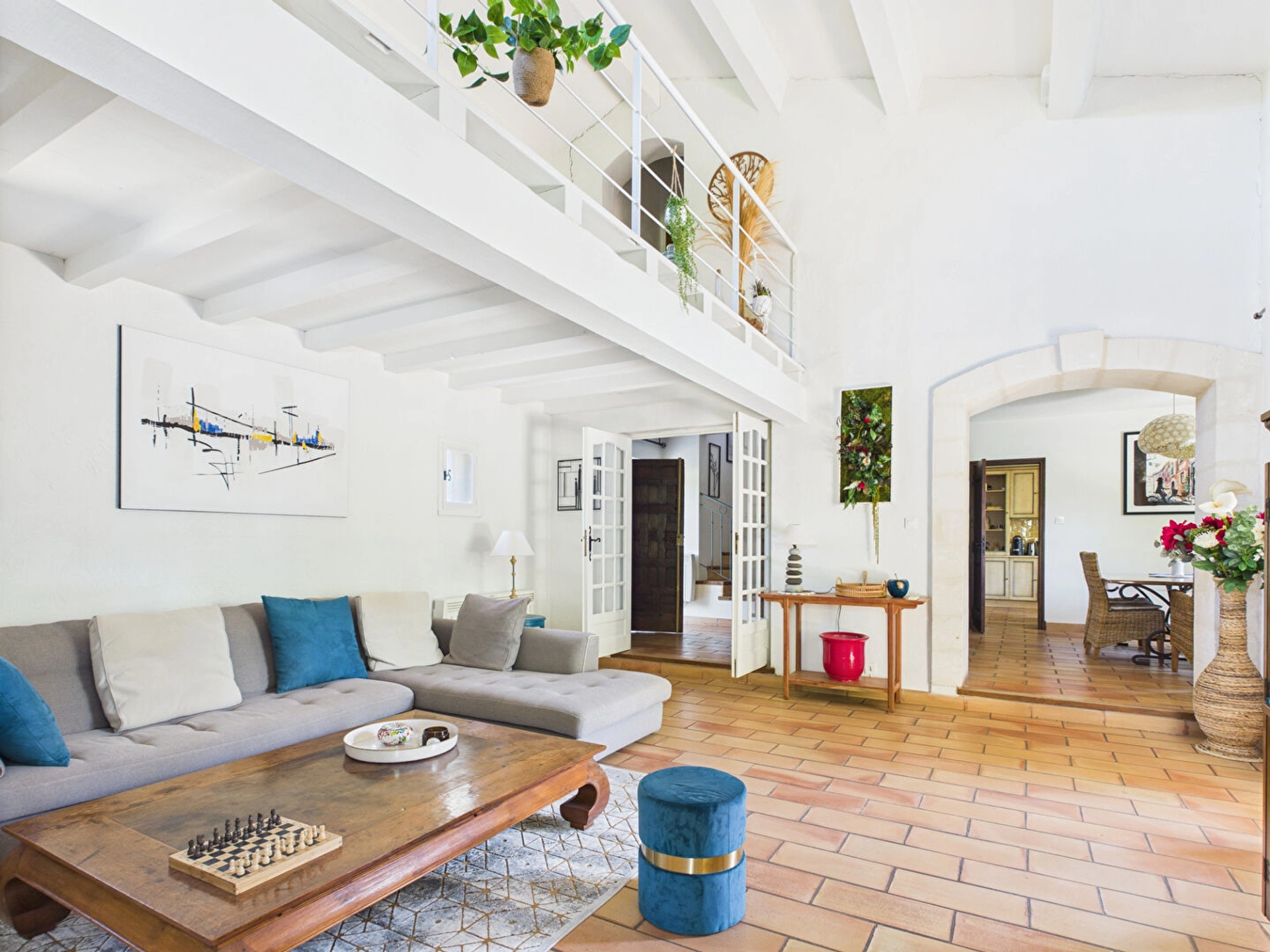 Ce mas de 220 m², réparti sur deux niveaux, offre au rez-de-chaussée un vaste salon, une cuisine fonctionnelle, une salle à manger conviviale et deux chambres, chacune disposant de sa propre salle d'eau. A l'étage, deux autres chambres se partagent une salle de bains. Toutes les chambres sont climatisées pour garantir un confort absolu en toute saison.