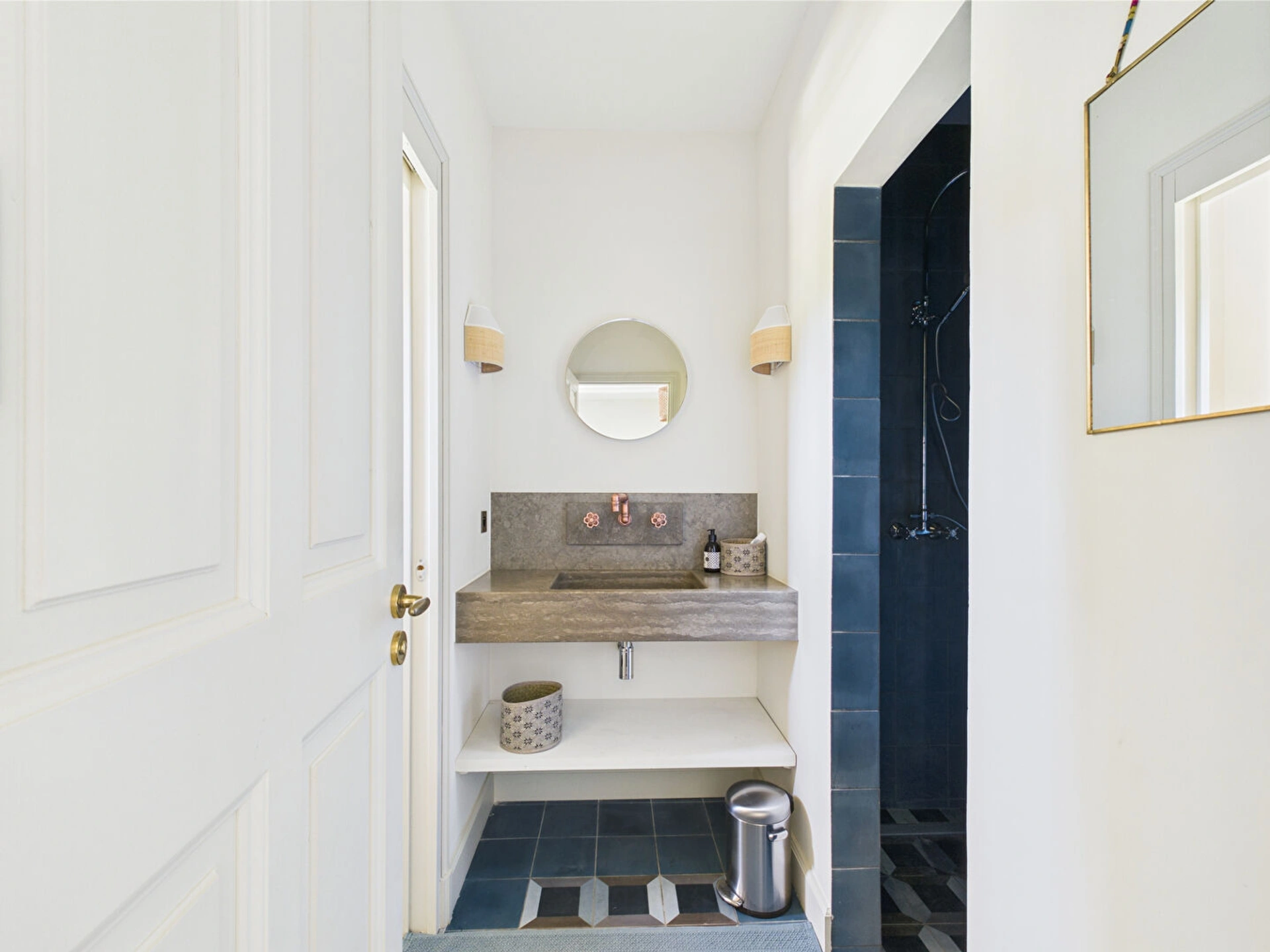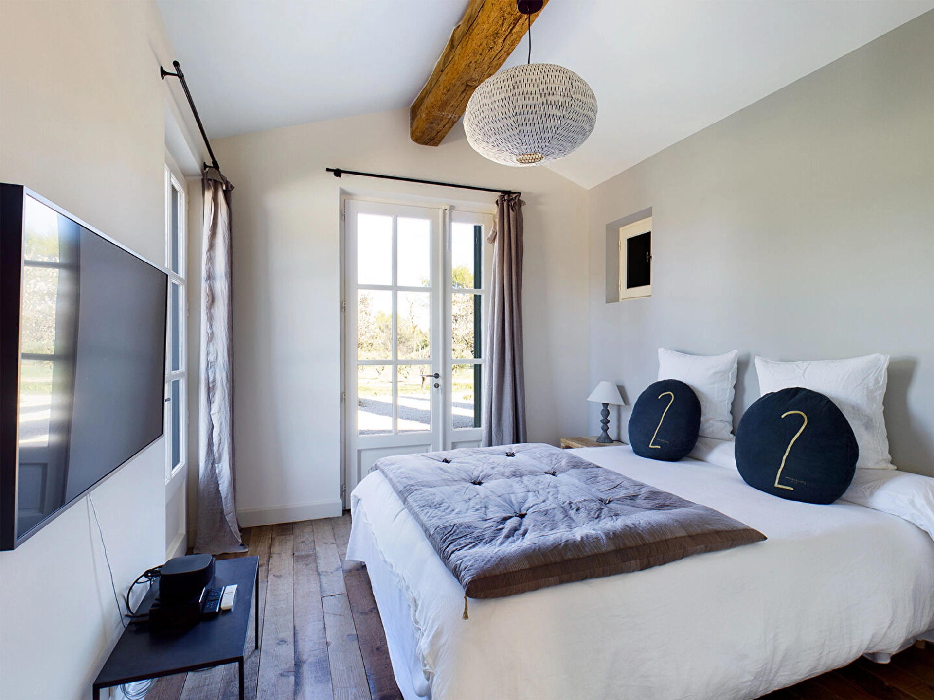 Au rez-de-chaussée, vous découvrirez un salon TV, un second salon, une cuisine ouverte donnant directement sur la terrasse et la piscine, ainsi qu'une chambre avec salle d'eau privative. A l'étage, se trouvent deux chambres partageant une salle de bain, une troisième chambre avec salle d'eau privée, et une splendide suite parentale avec sa propre salle de bains.