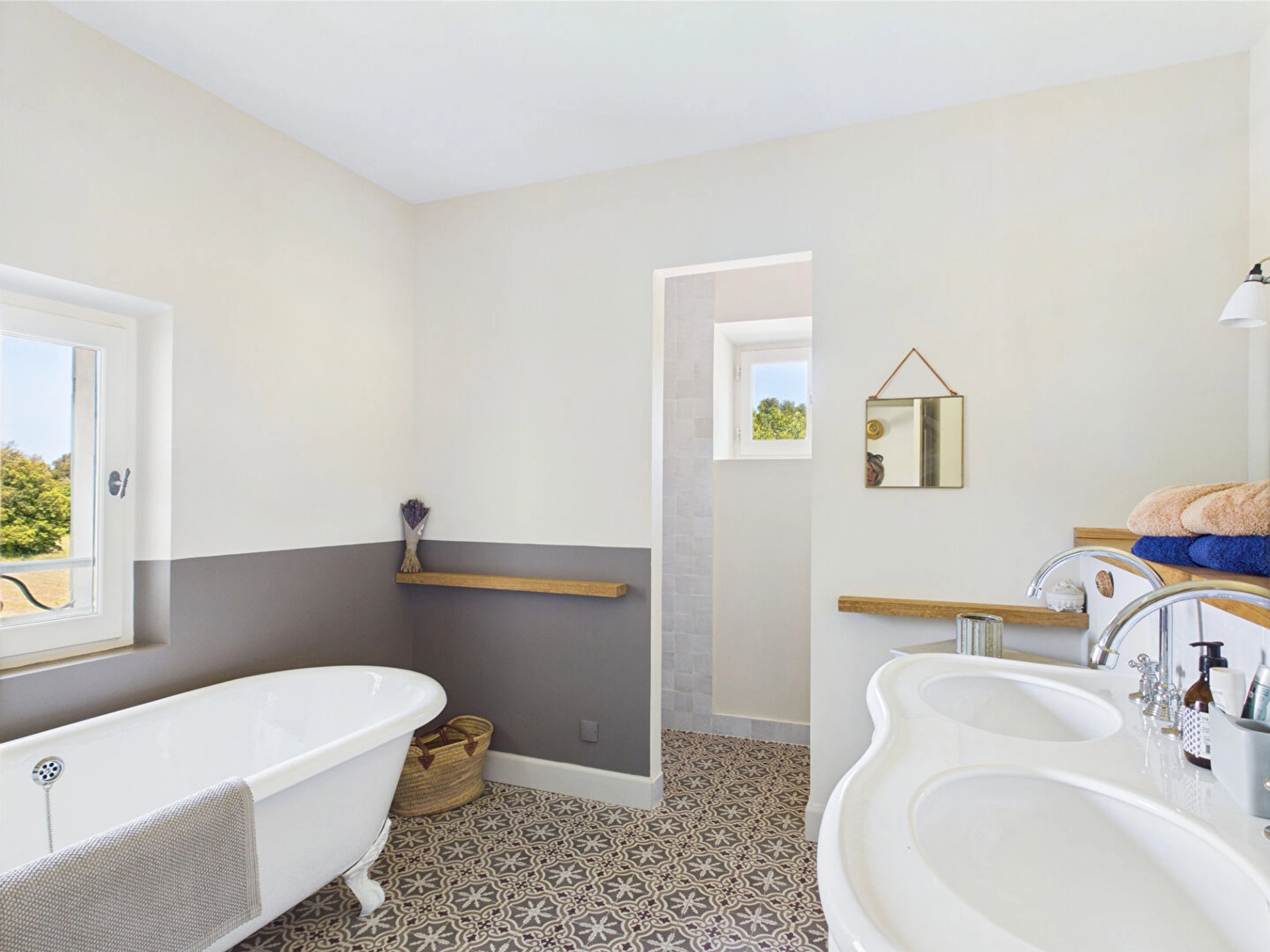 A l'extérieur, la vaste terrasse, accompagnée d'un pool house et d'une superbe piscine de 5,5 x 20 m, vous séduira et vous permettra de profiter pleinement de ce cadre enchanteur pour des vacances inoubliables.