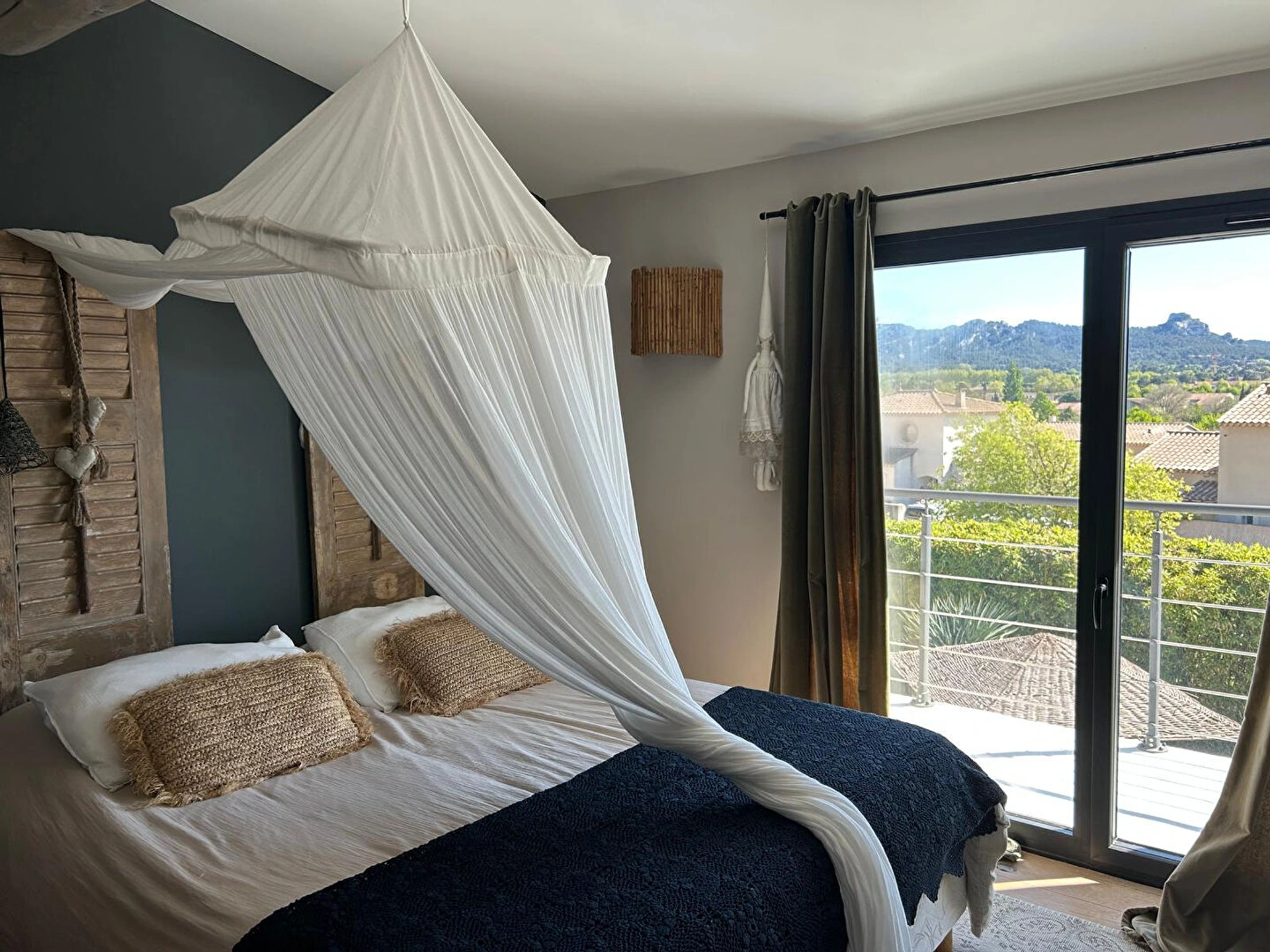 Depuis le séjour, les chambres ou la terrasse, le regard embrasse les contreforts sauvages des Alpilles, baignés de lumière tout au long de la journée. Le spectacle est permanent, avec des levers et couchers de soleil spectaculaires, dans une ambiance paisible et préservée.