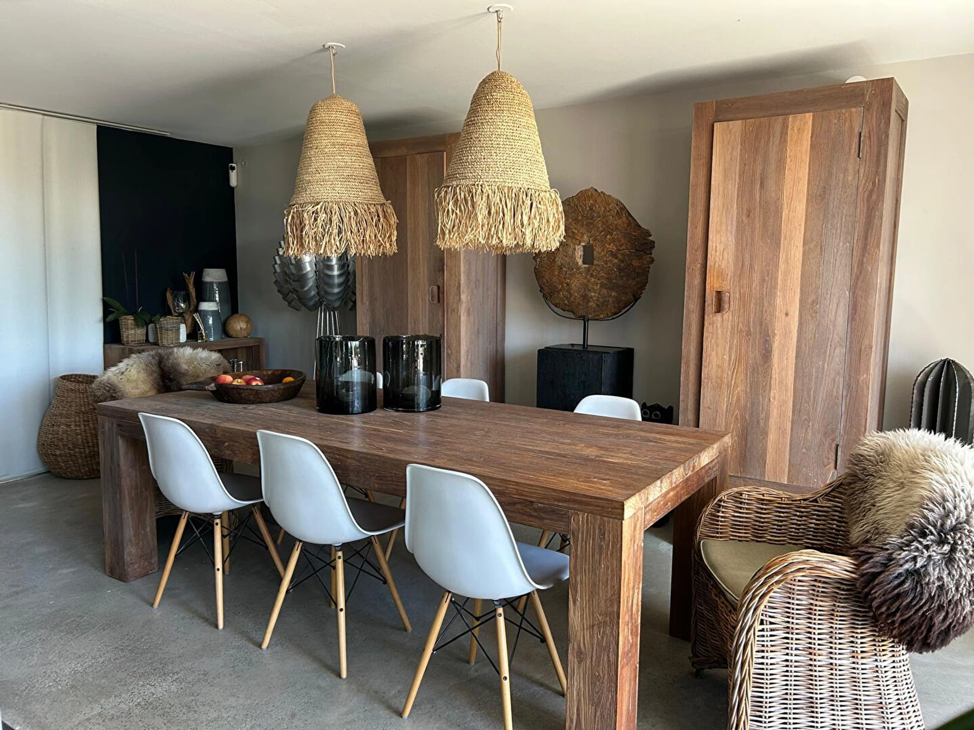 Cette maison résolument moderne, baignée de lumière, se distingue par ses volumes généreux, ses matériaux de qualité et son atmosphère minimaliste mais chaleureuse. Les espaces sont ouverts, fluides, pensés pour créer une harmonie entre l'intérieur et l'extérieur. Les 4 chambres, à la décoration sobre et raffinée, offrent à la fois confort et intimité. Grandes baies vitrées, mobilier design, détails soignés : chaque pièce invite à la détente dans un cadre chic et apaisant.
