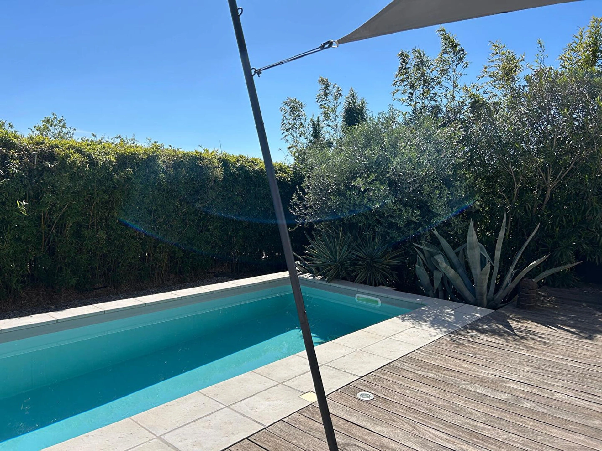 L'extérieur est à l'image de la maison : contemporain, soigné, et parfaitement intégré à l'environnement. La piscine de 2,5 x 7 mètres, entourée de bois et de pierre, devient le coeur de vos journées d'été. Bains de soleil, mobilier outdoor design, coin repas ombragé... tout est pensé pour profiter de la douceur provençale dans un cadre élégant.