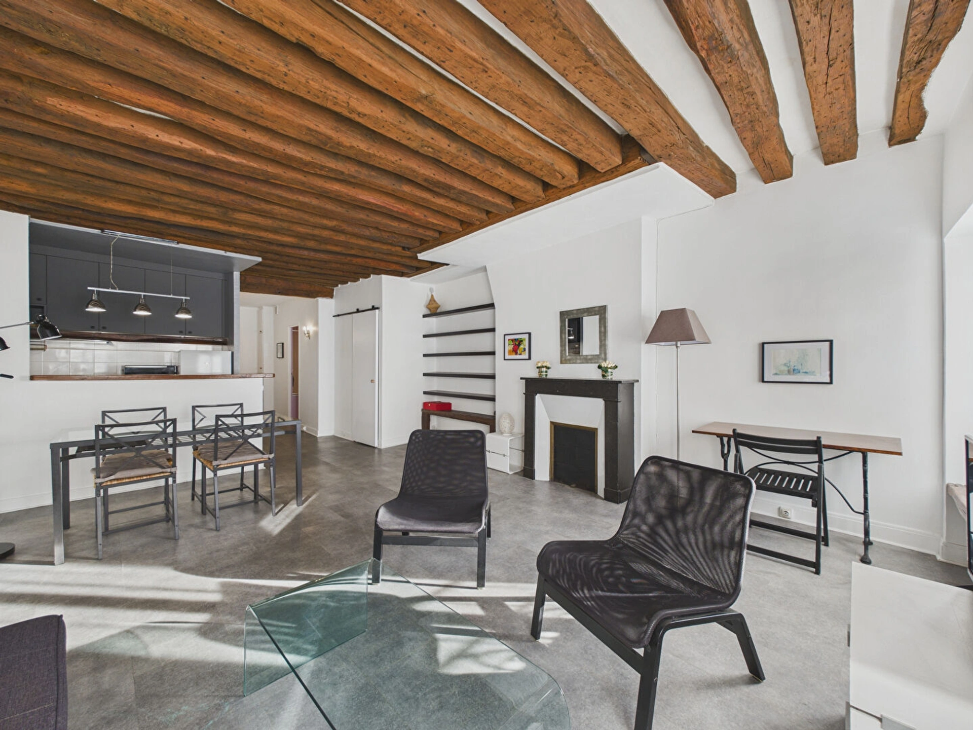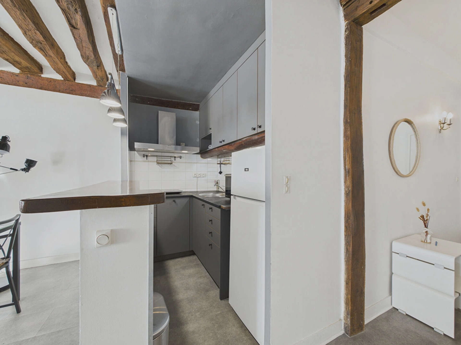 L'appartement se compose d'un séjour spacieux et modulable, d'une chambre séparée offrant intimité et tranquillité, d'une cuisine ouverte moderne et équipée, d'une salle de bains rénovée et WC.