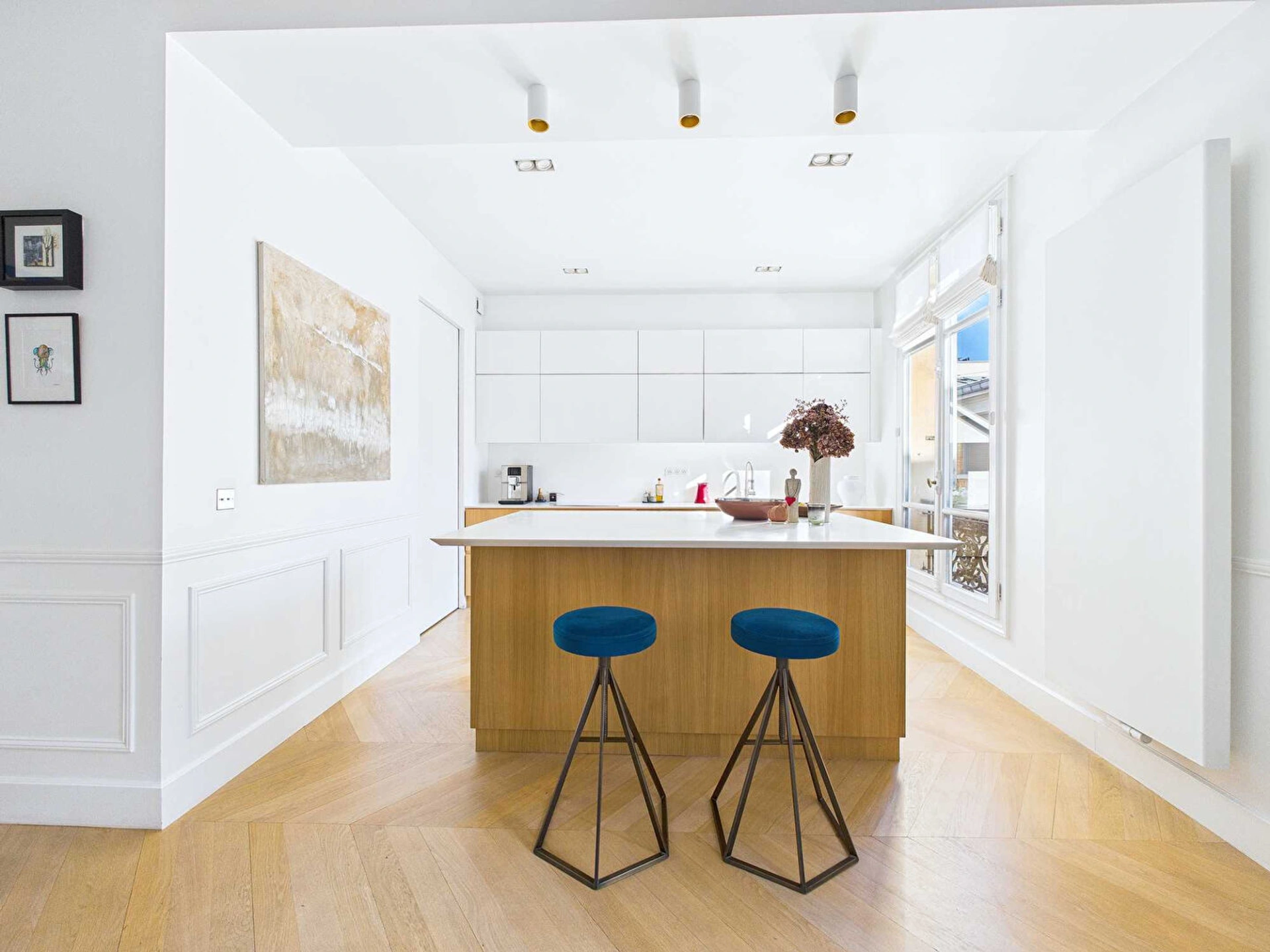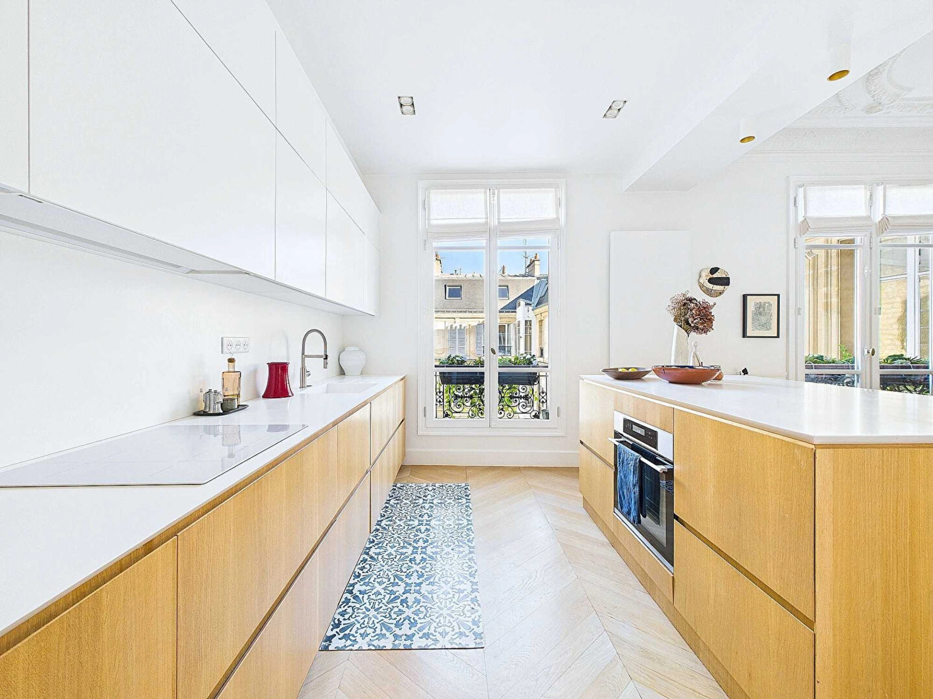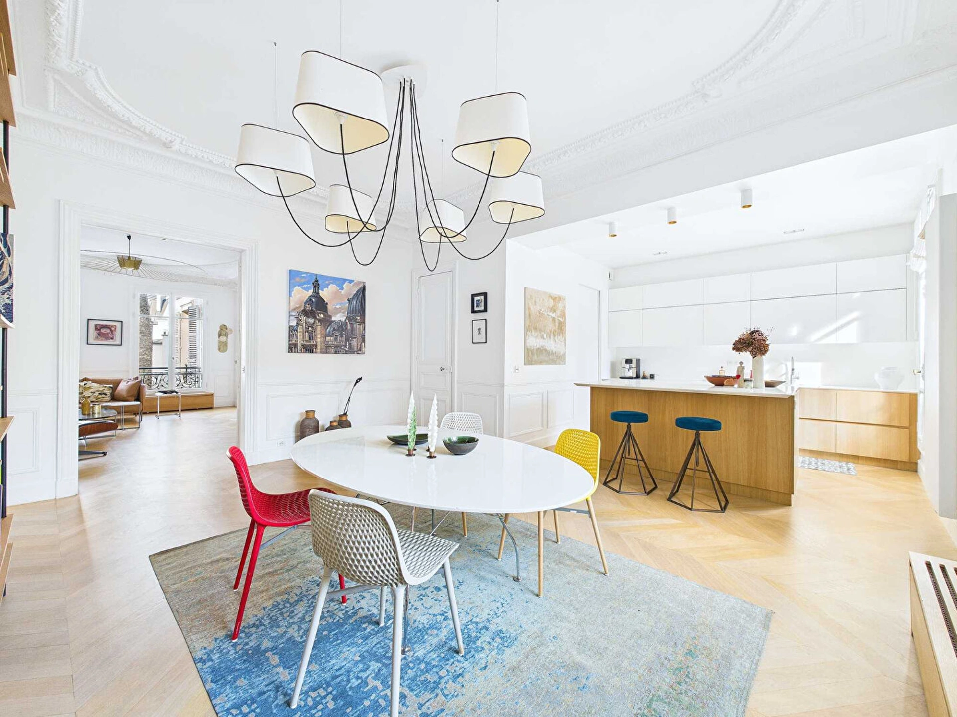Entièrement rénové en 2016 avec des matériaux de grande qualité, cet appartement allie le charme haussmannien à un style moderne et raffiné. Ses belles hauteurs sous plafond de plus de 3,20 mètres et son plan idéal en font un lieu de vie exceptionnel, idéal pour une résidence principale ou un pied-à-terre de standing. L'appartement se compose d'une entrée accueillante, d'un vaste espace de réception de 65 m² comprenant un salon, une salle à manger et une cuisine américaine entièrement équipée, accompagnée d'un office. Il dispose également de deux suites indépendantes, dont une parentale de plus de 40 m² avec une chambre sans vis-à-vis, un grand dressing, une salle de bains équipée d'une douche, d'une baignoire et de toilettes. La seconde suite, polyvalente, peut servir de chambre ou de bureau, avec sa propre salle d'eau et WC. Une buanderie-shoesing, de nombreux rangements et une grande cave en sous-sol complètent ce bien d'exception. De plus, il est possible d'acquérir un emplacement de parking dans la cour, ajoutant une commodité supplémentaire à ce cadre de vie privilégié. Cet appartement rare sur le marché offre des volumes généreux, des proportions harmonieuses et une distribution idéale. Son emplacement recherché et son état remarquable en font un bien d'exception