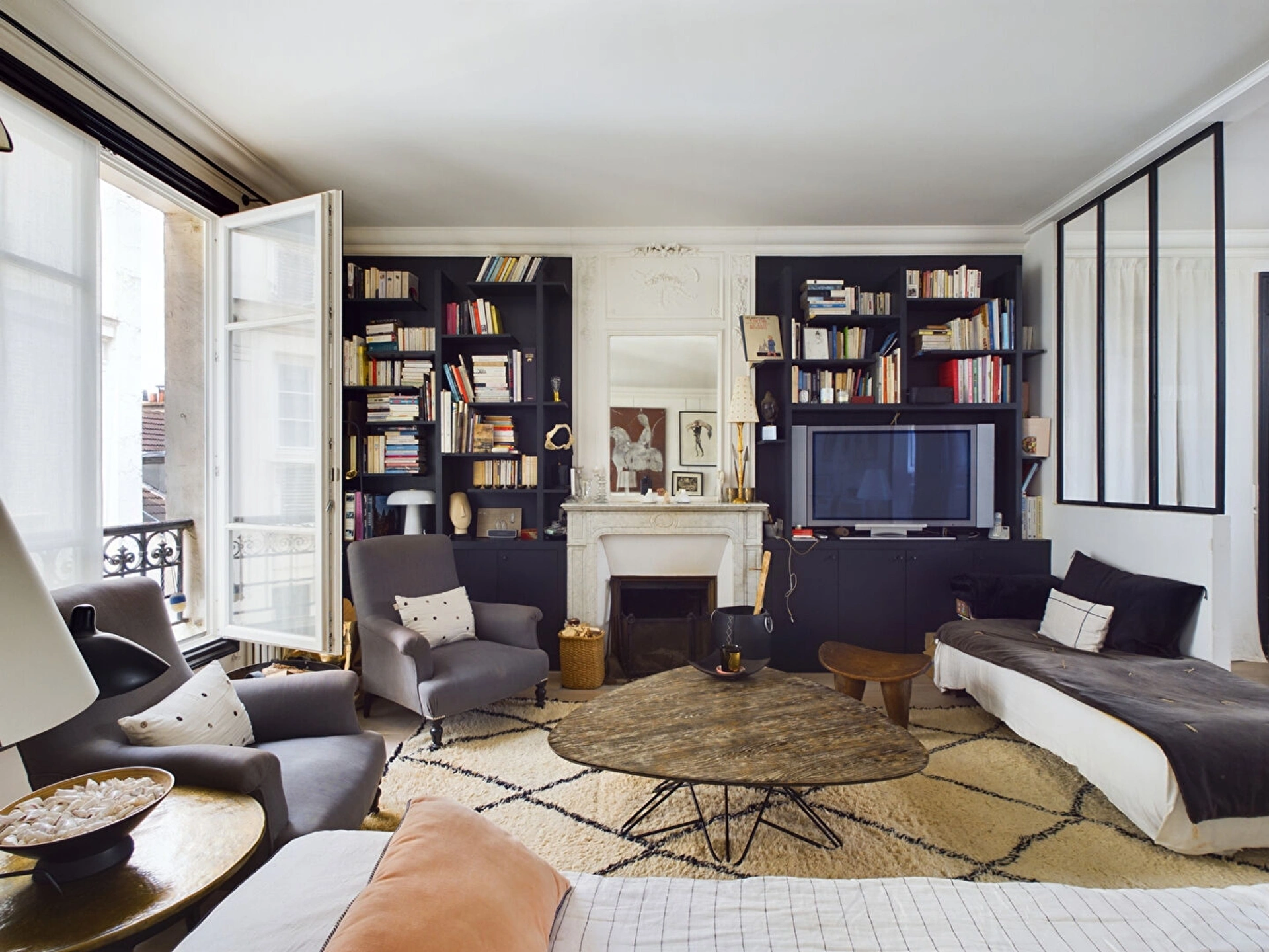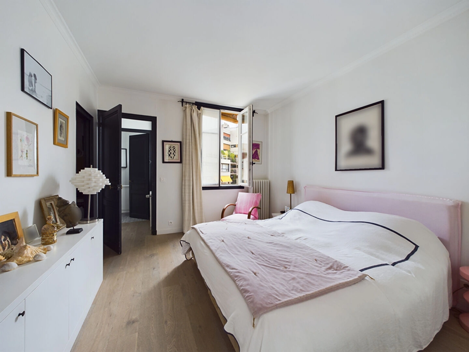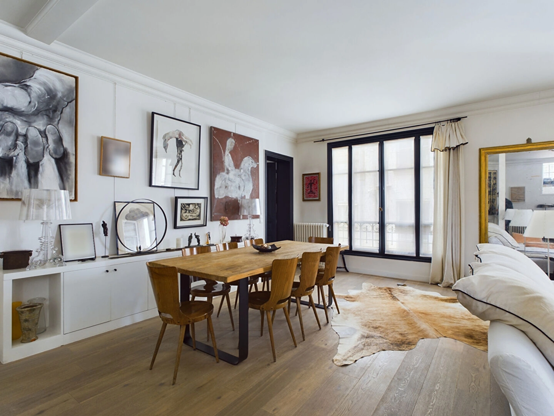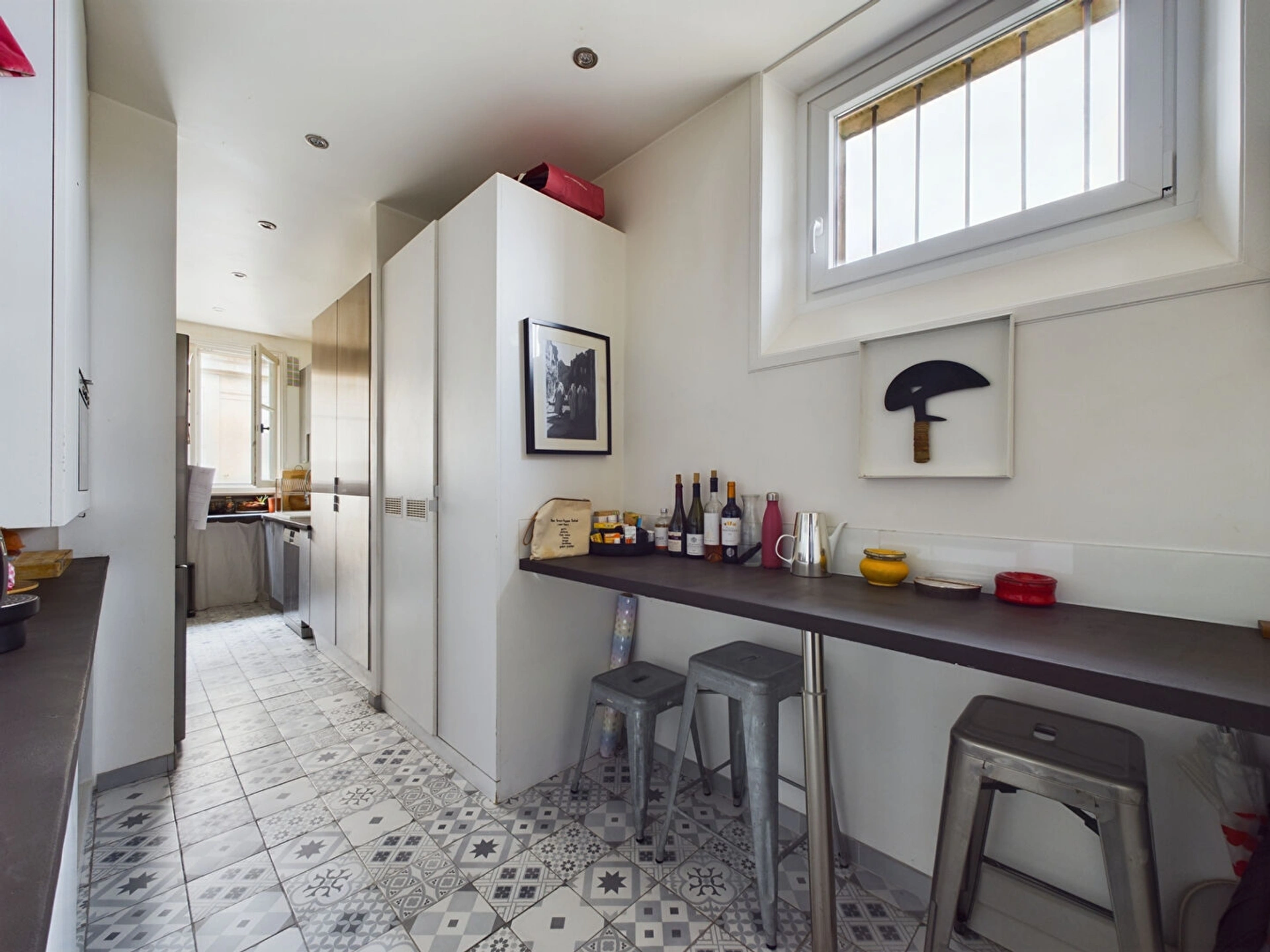 Situé au 4ème étage par escalier, cet appartement dispose d'un plan sans perte d'espace, avec une proportion importante dédiée aux espaces de vie, idéal pour recevoir : le salon/salle à manger de 52,31 m², les volumes et la cheminée lui donnent un véritable charme, prolongée par une belle cuisine indépendante et dînatoire à proximité.