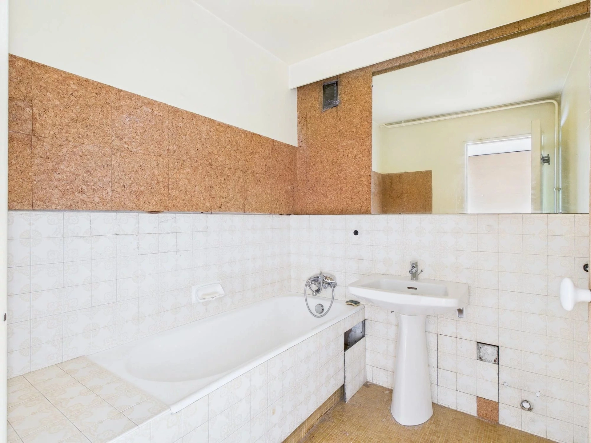 Entrée avec placards, un séjour spacieux exposé Sud-Ouest, une cuisine indépendante à aménager, une chambre avec de grandes fenêtres et sa salle de bains attenante, ainsi que des WC indépendants.