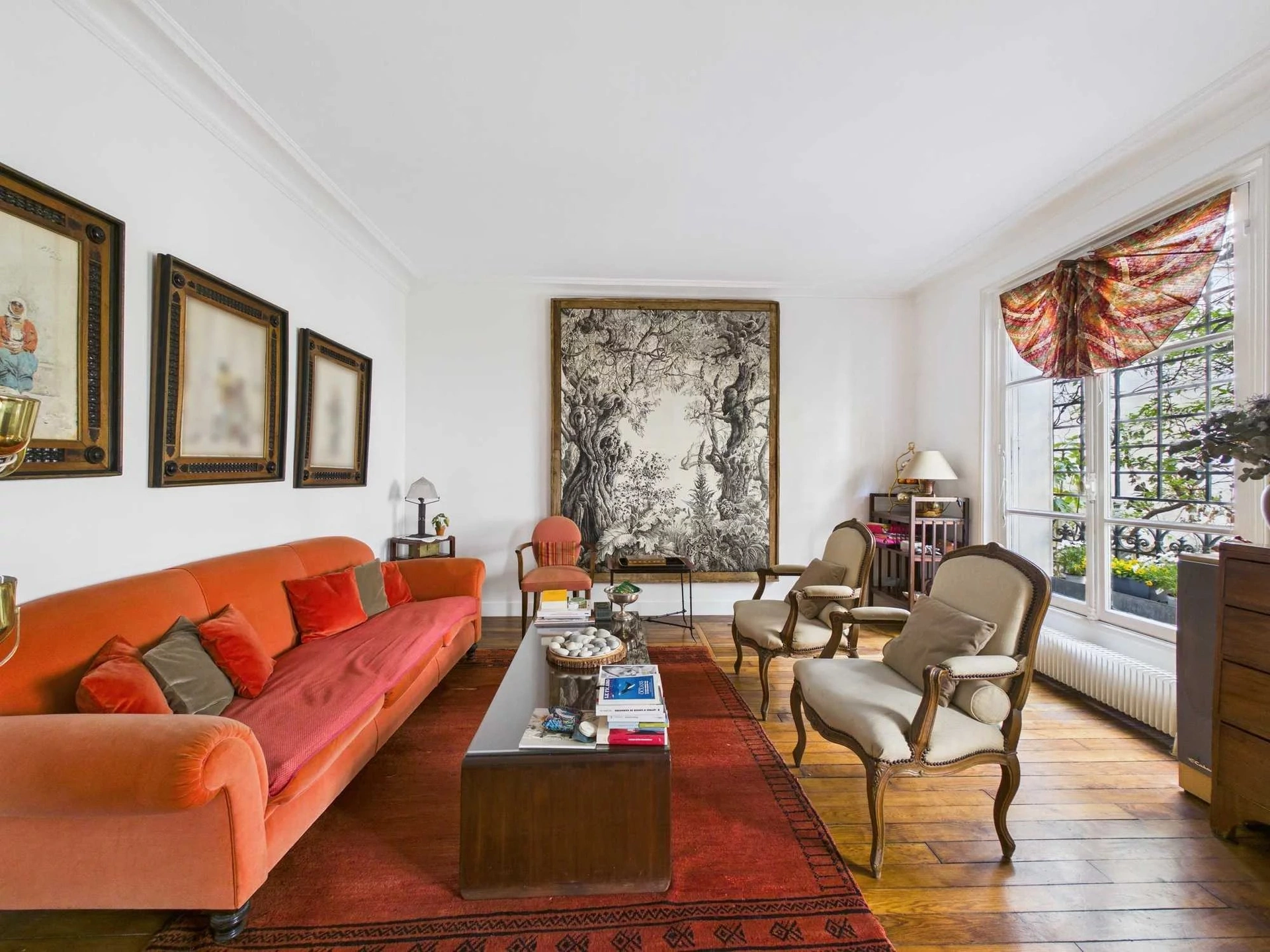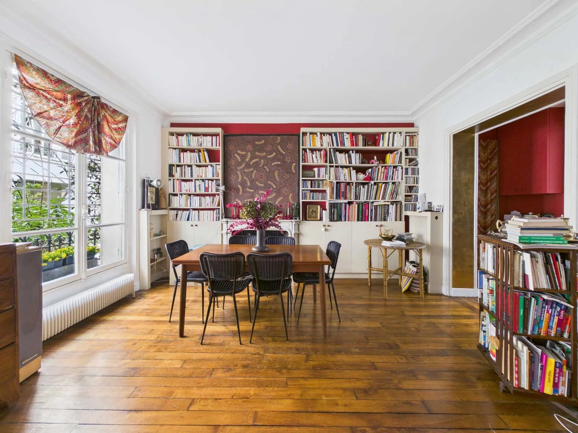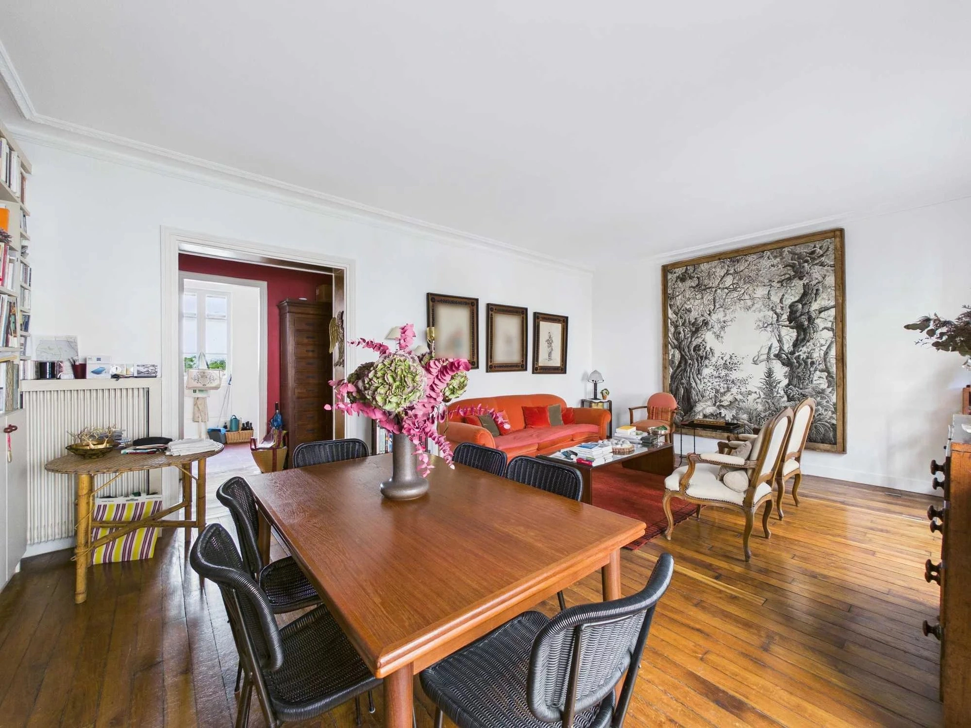 Situé en second corps de bâtiment, donnant sur une jolie cour arborée et bien tenue, cet appartement profite d'un calme absolu, totalement protégé des nuisances de la rue.
