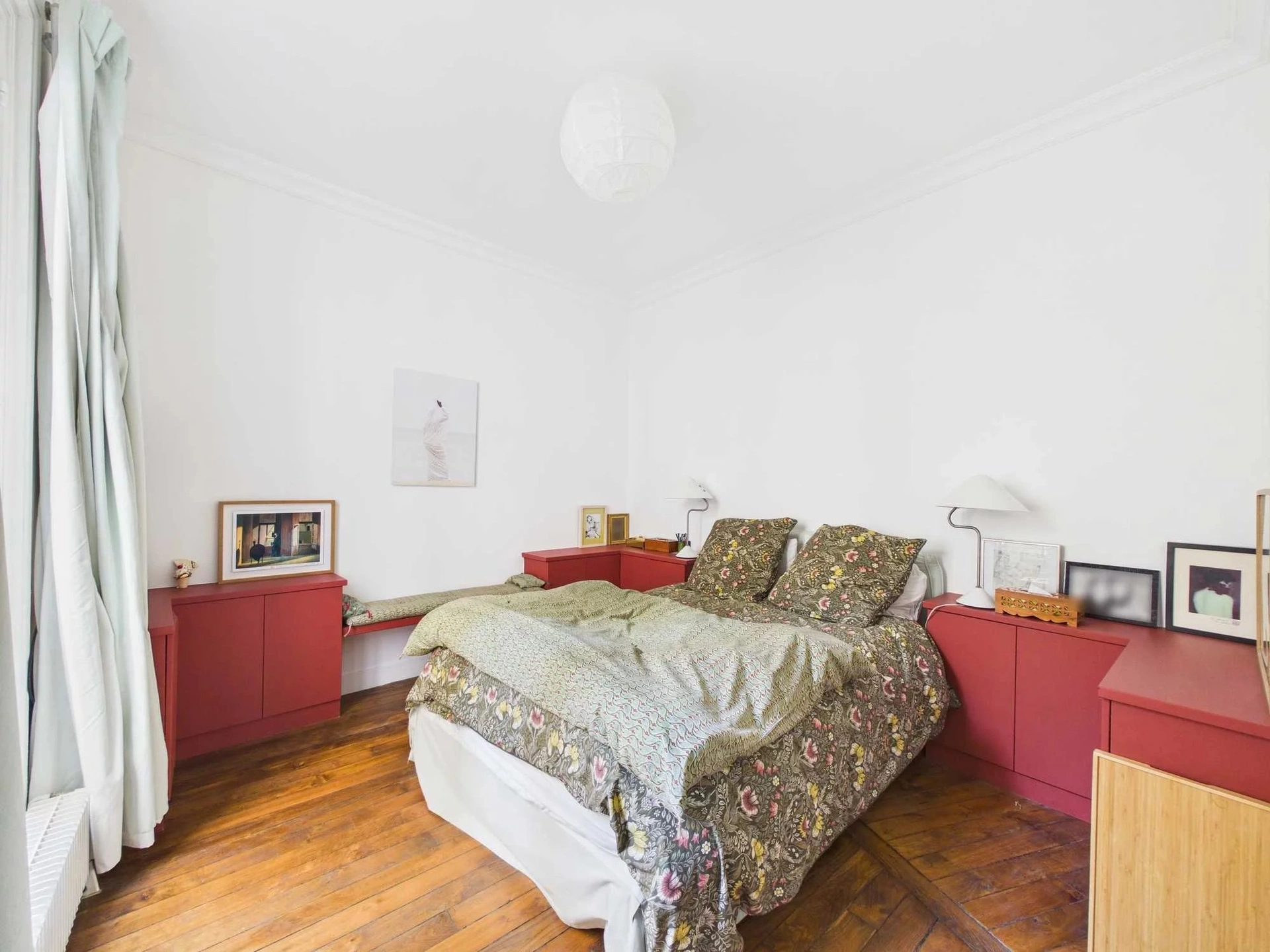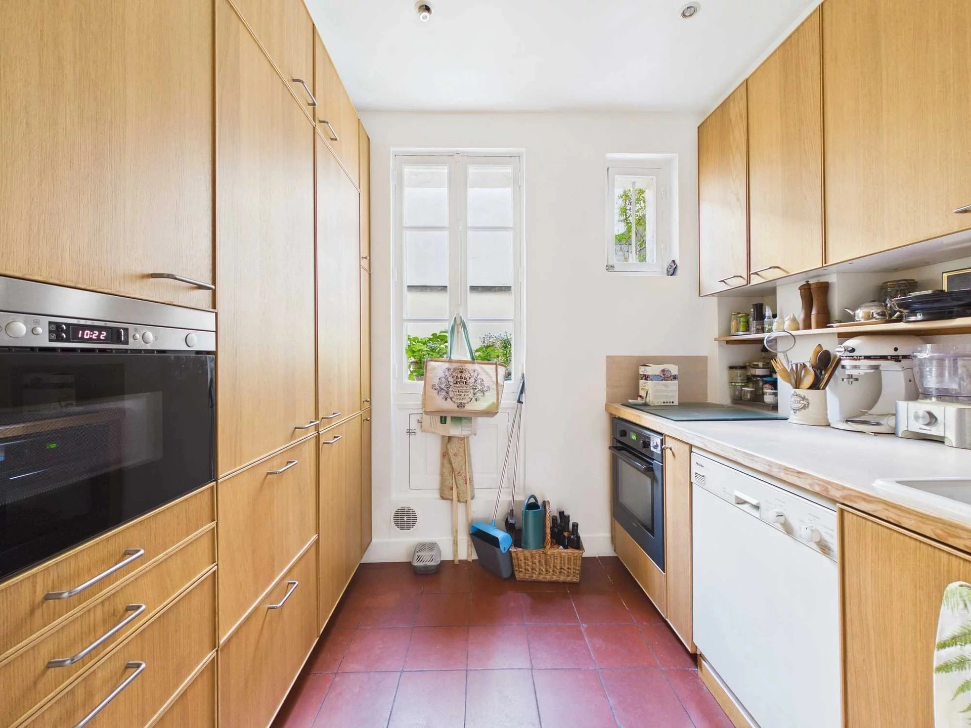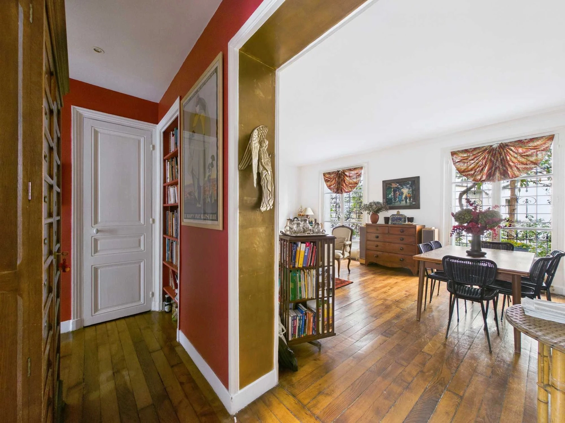 Situé en second corps de bâtiment, donnant sur une jolie cour arborée et bien tenue, cet appartement profite d'un calme absolu, totalement protégé des nuisances de la rue.