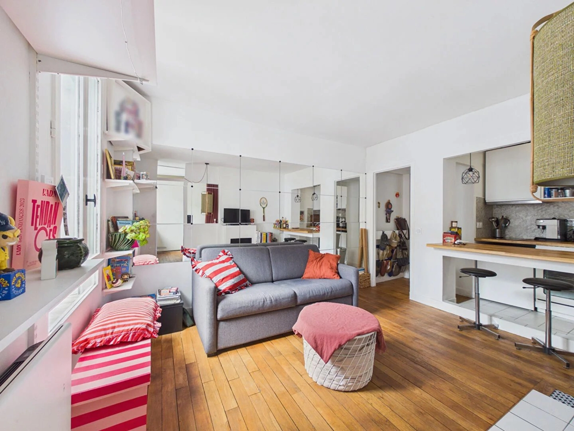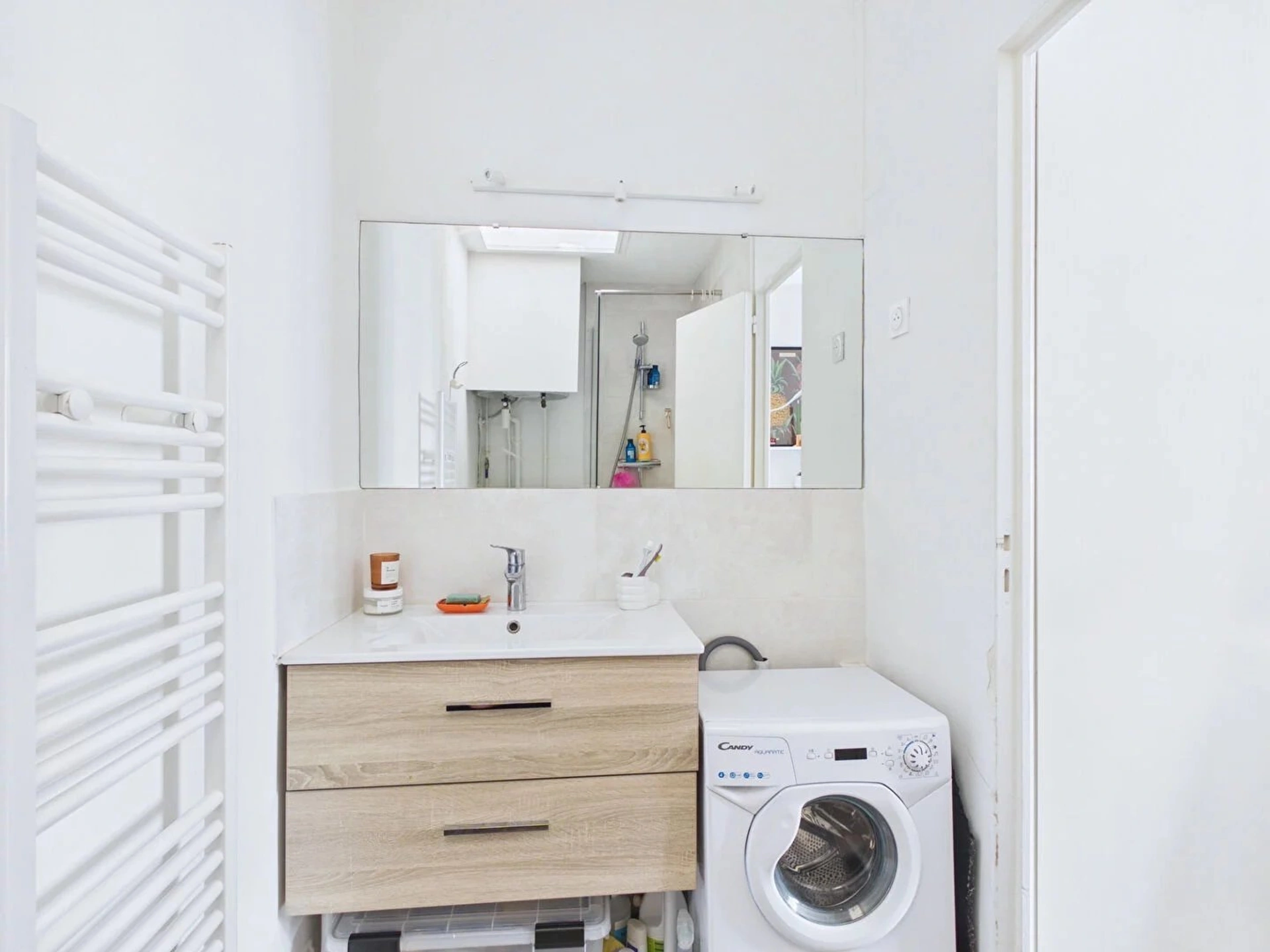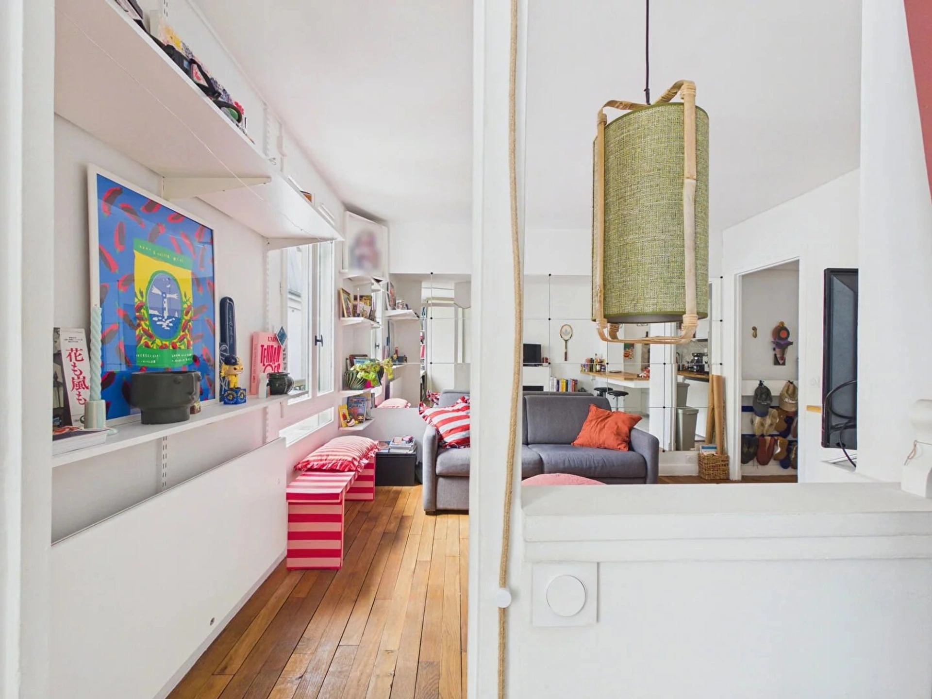 L'appartement de 30.52 m² , au calme absolu, baigné de lumière grâce à son exposition plein sud et sans vis-à-vis grâce à un dégagement, détient toujours son cachet d'origine. Des volumes que l'ont ressent, vraiment, grâce à un plan sans aucune perte d'espace et au mur décoré de nombreux miroirs.