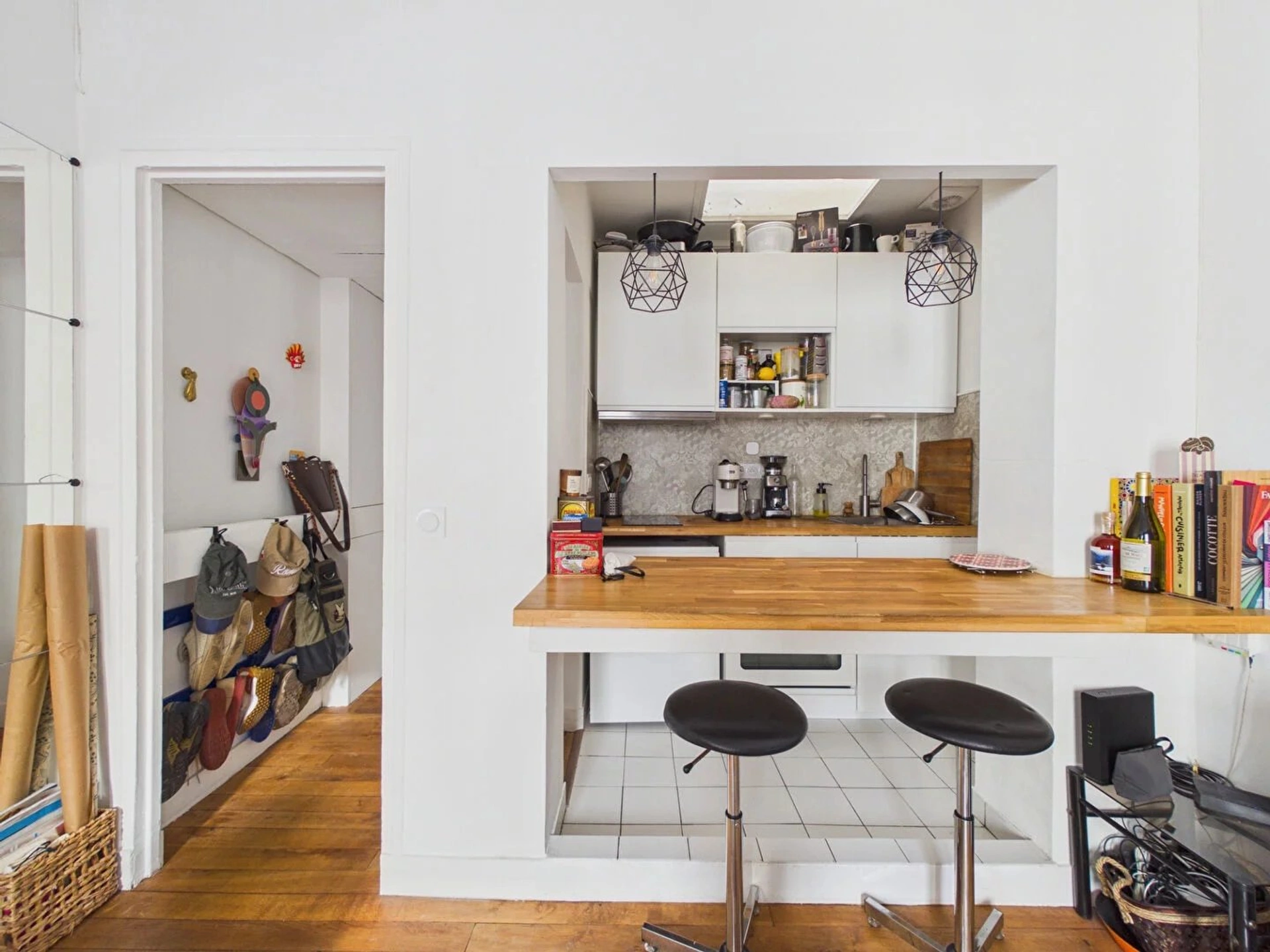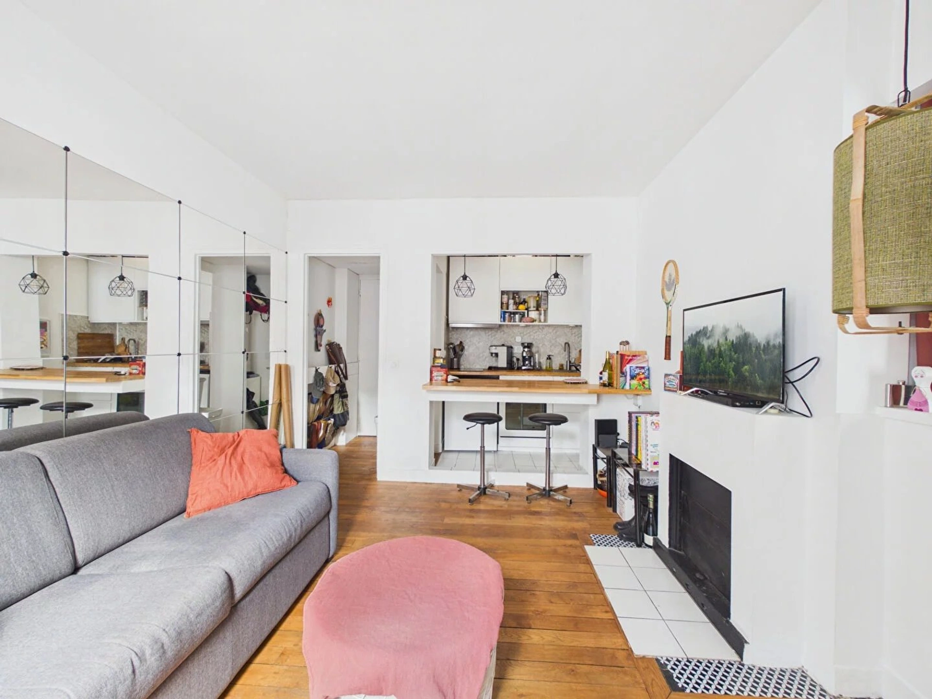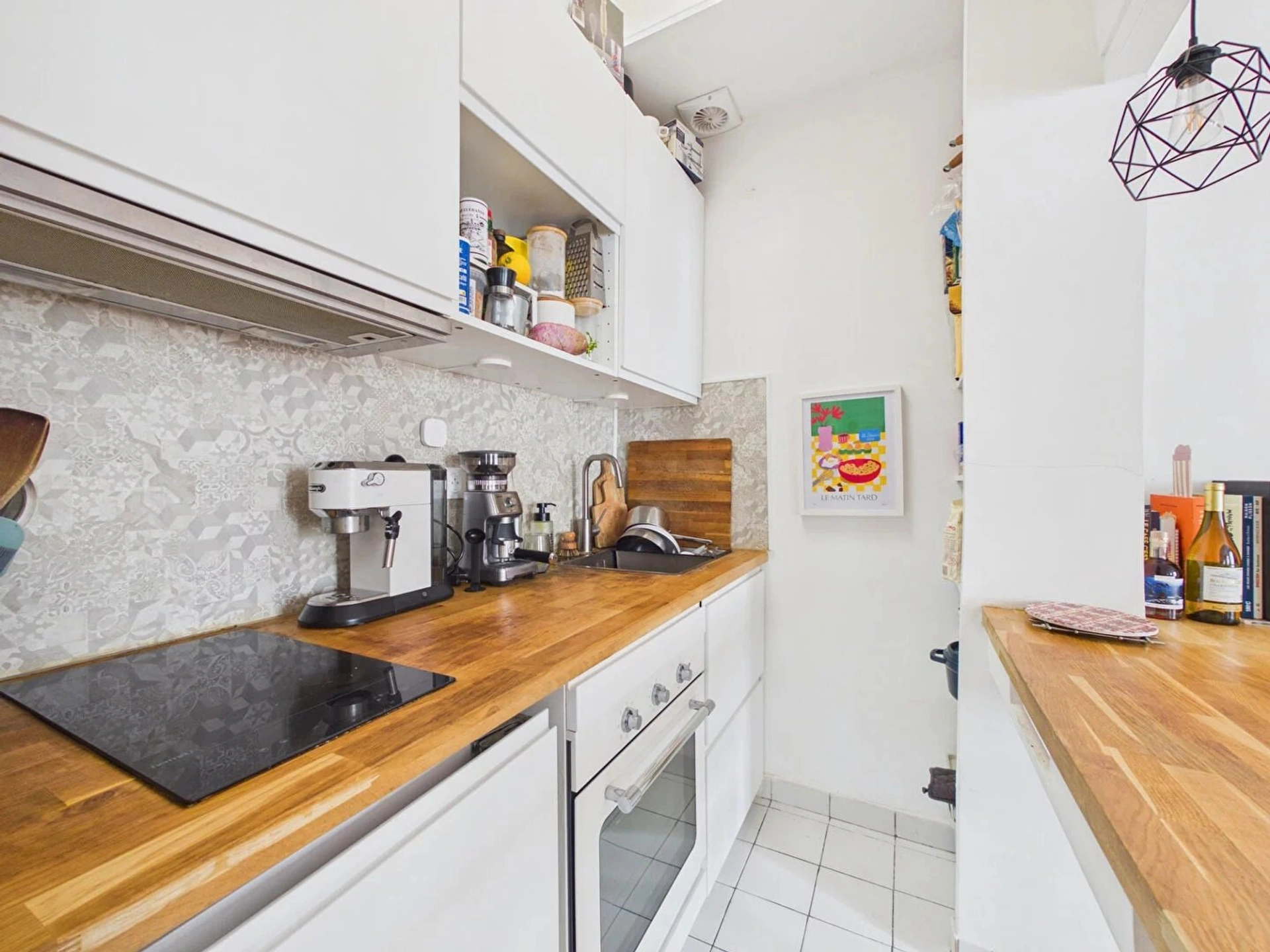 L'appartement de 30.52 m² , au calme absolu, baigné de lumière grâce à son exposition plein sud et sans vis-à-vis grâce à un dégagement, détient toujours son cachet d'origine. Des volumes que l'ont ressent, vraiment, grâce à un plan sans aucune perte d'espace et au mur décoré de nombreux miroirs.