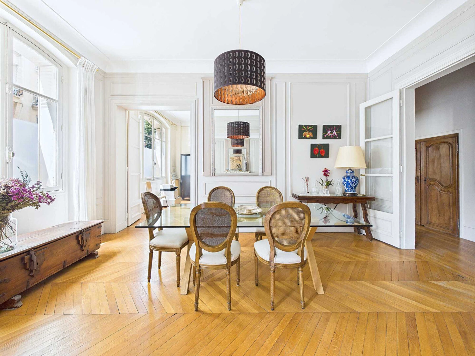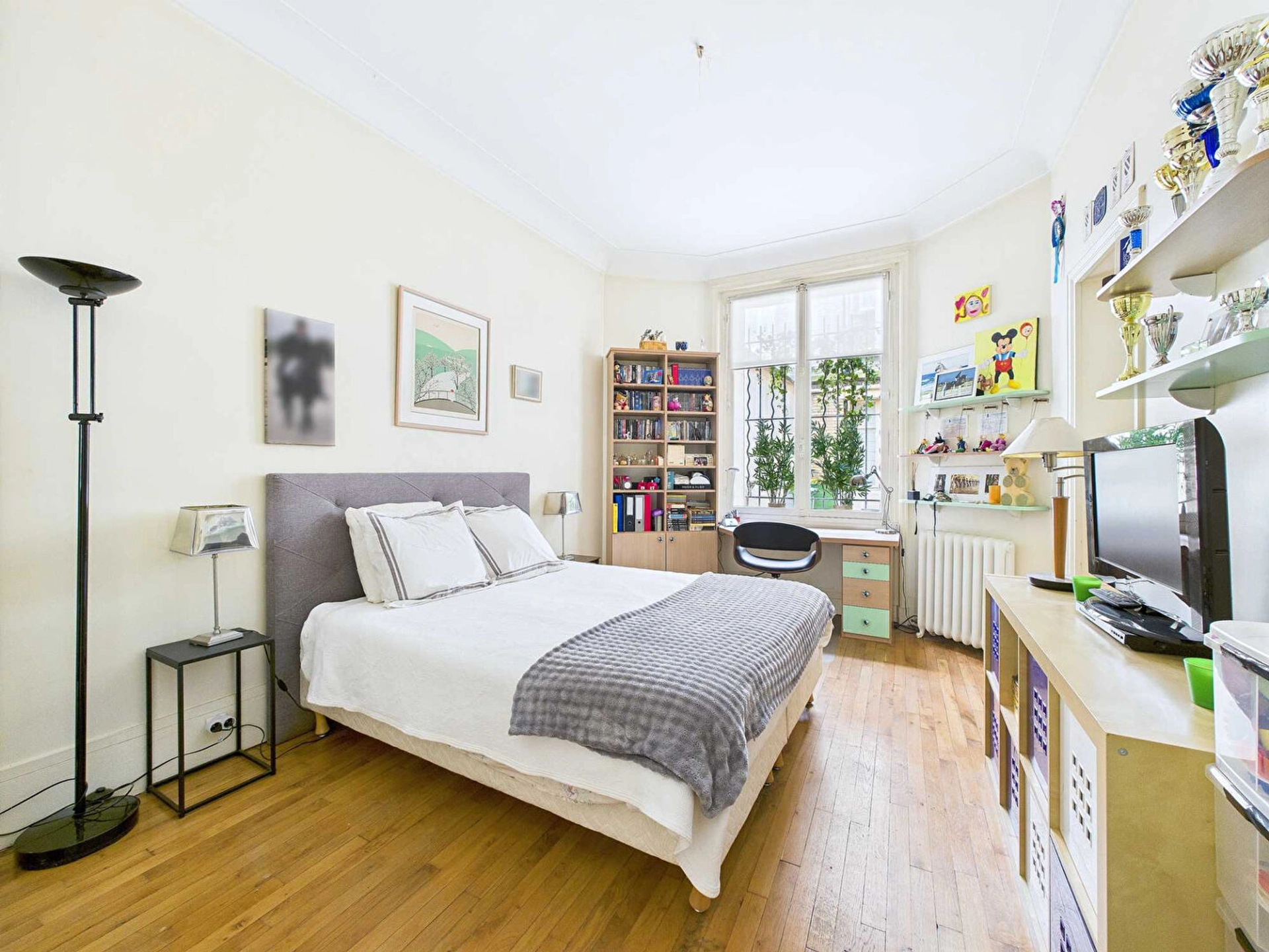 Au rez-de-chaussée d'un très bel immeuble en pierre de taille de 1926 en parfait état, ce bel appartement familial comprend une entrée avec rangement, un vaste double séjour calme et lumineux (exposé Sud/Ouest) et une très belle hauteur sous plafond, une cuisine indépendante aménagée et équipée avec un espace dinatoire, un grand bureau qui jouxte les espaces de vie, trois belles chambres qui bénéficient chacune de leur salle d'eau (dont une avec WC), un dégagement avec placard ainsi qu'un WC indépendant.