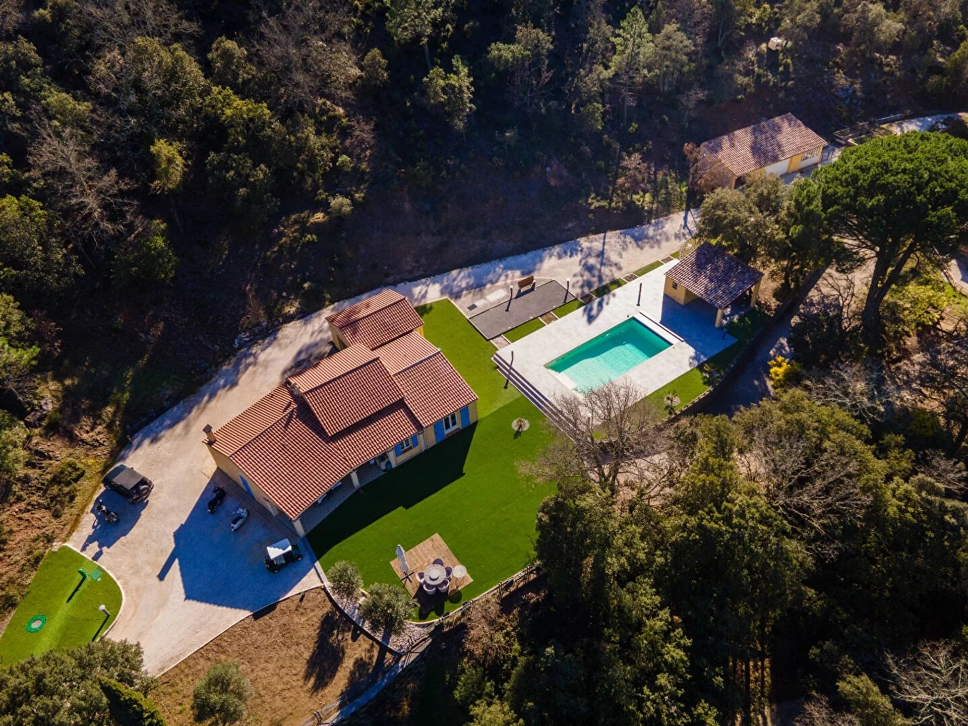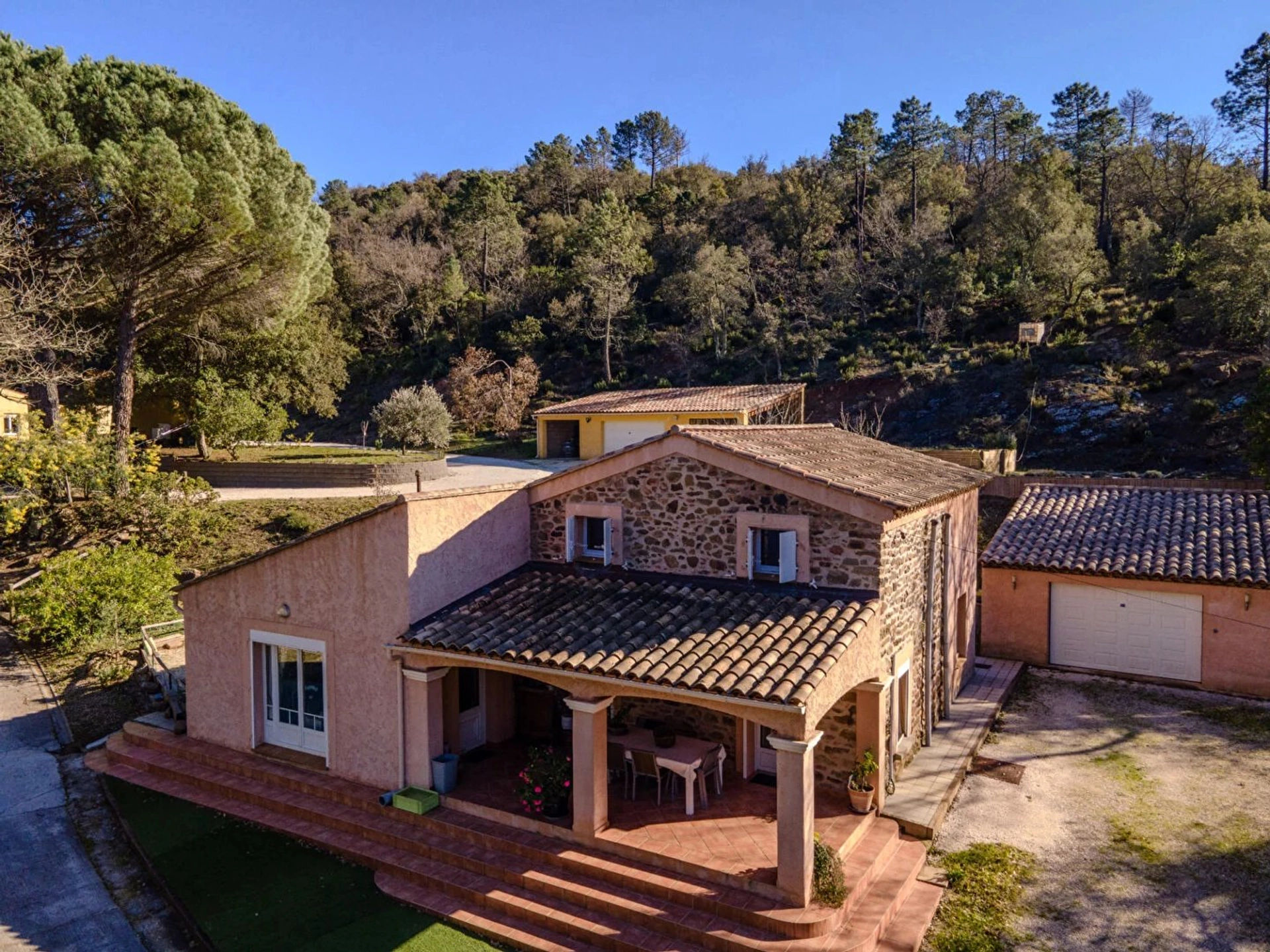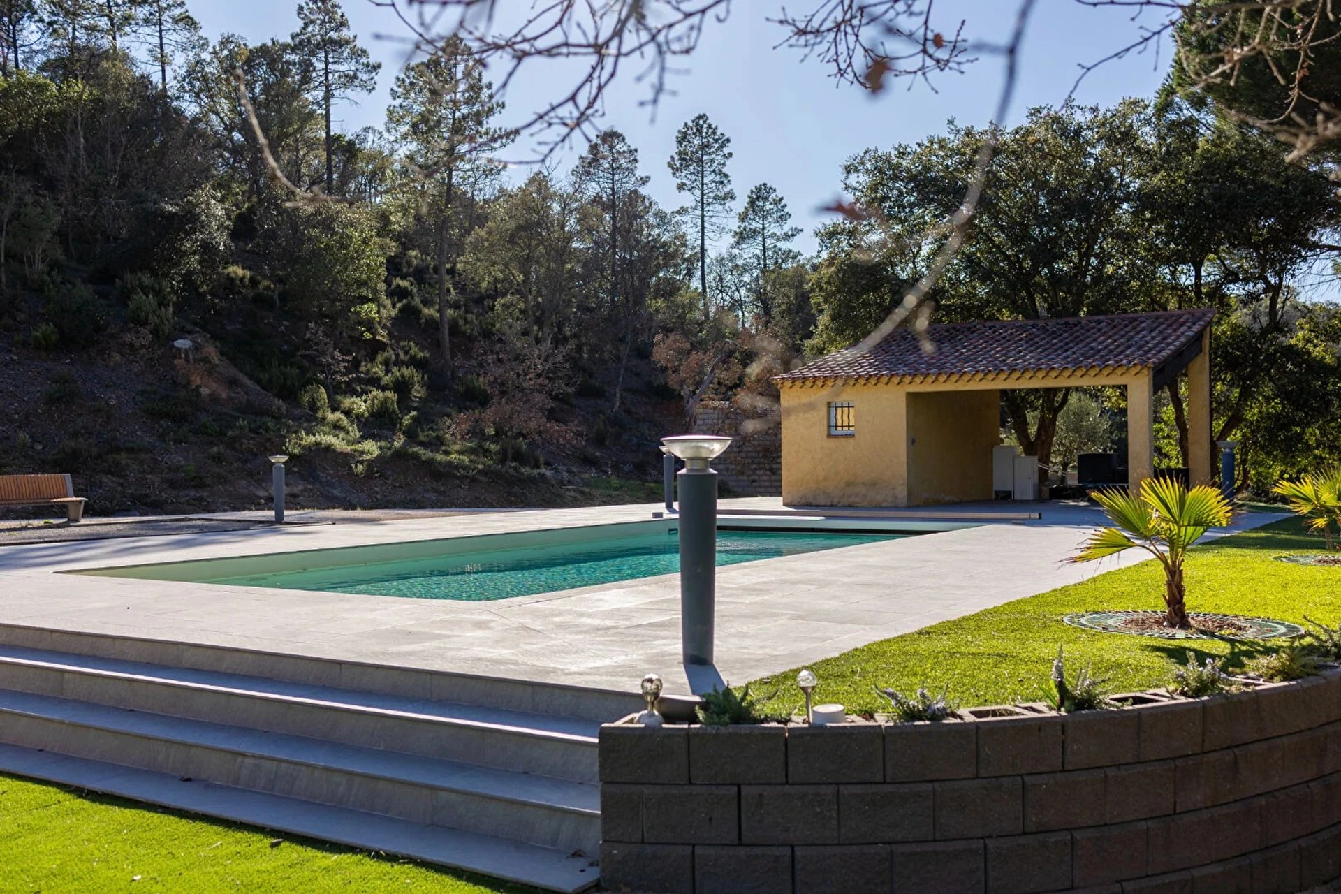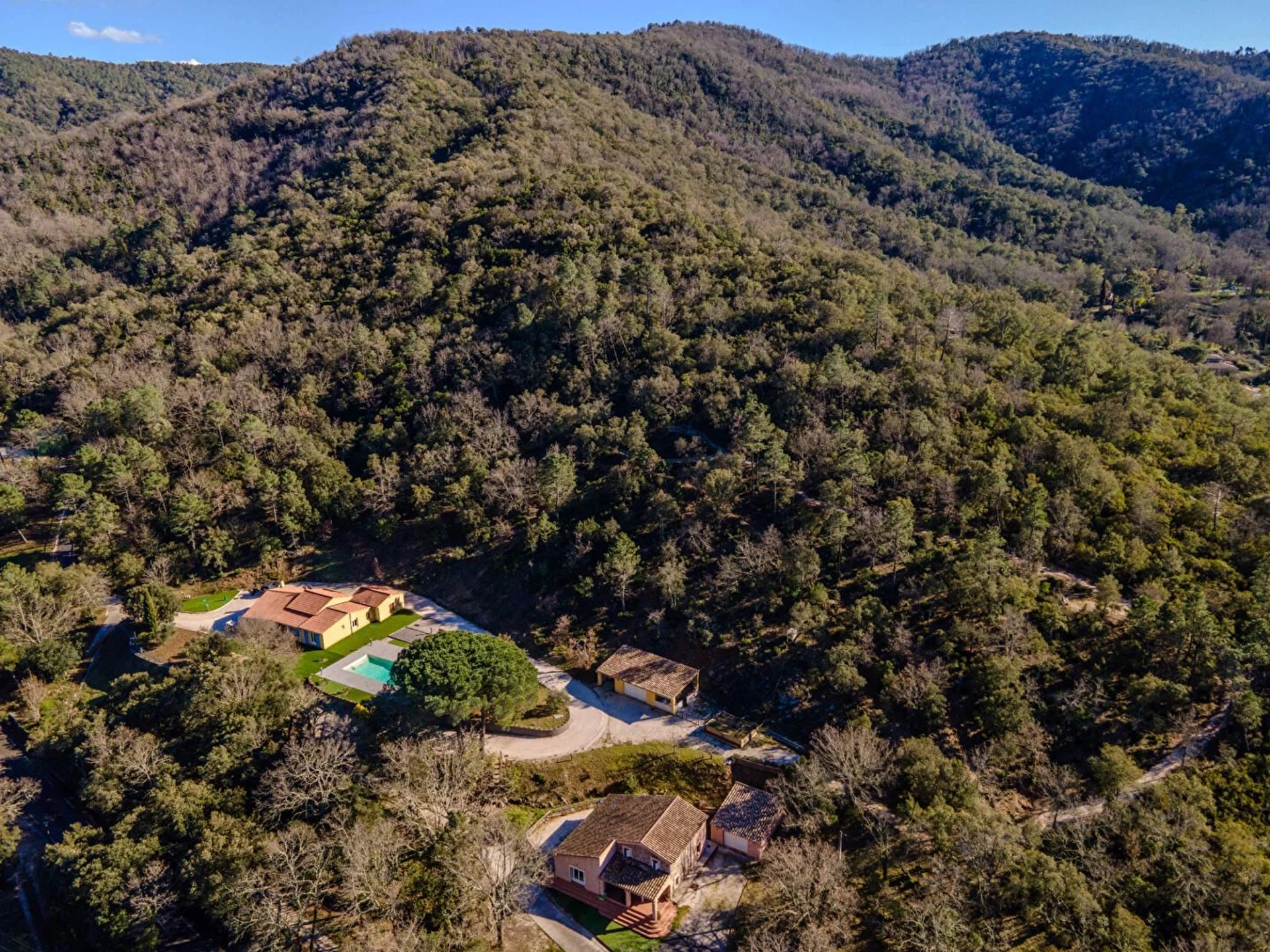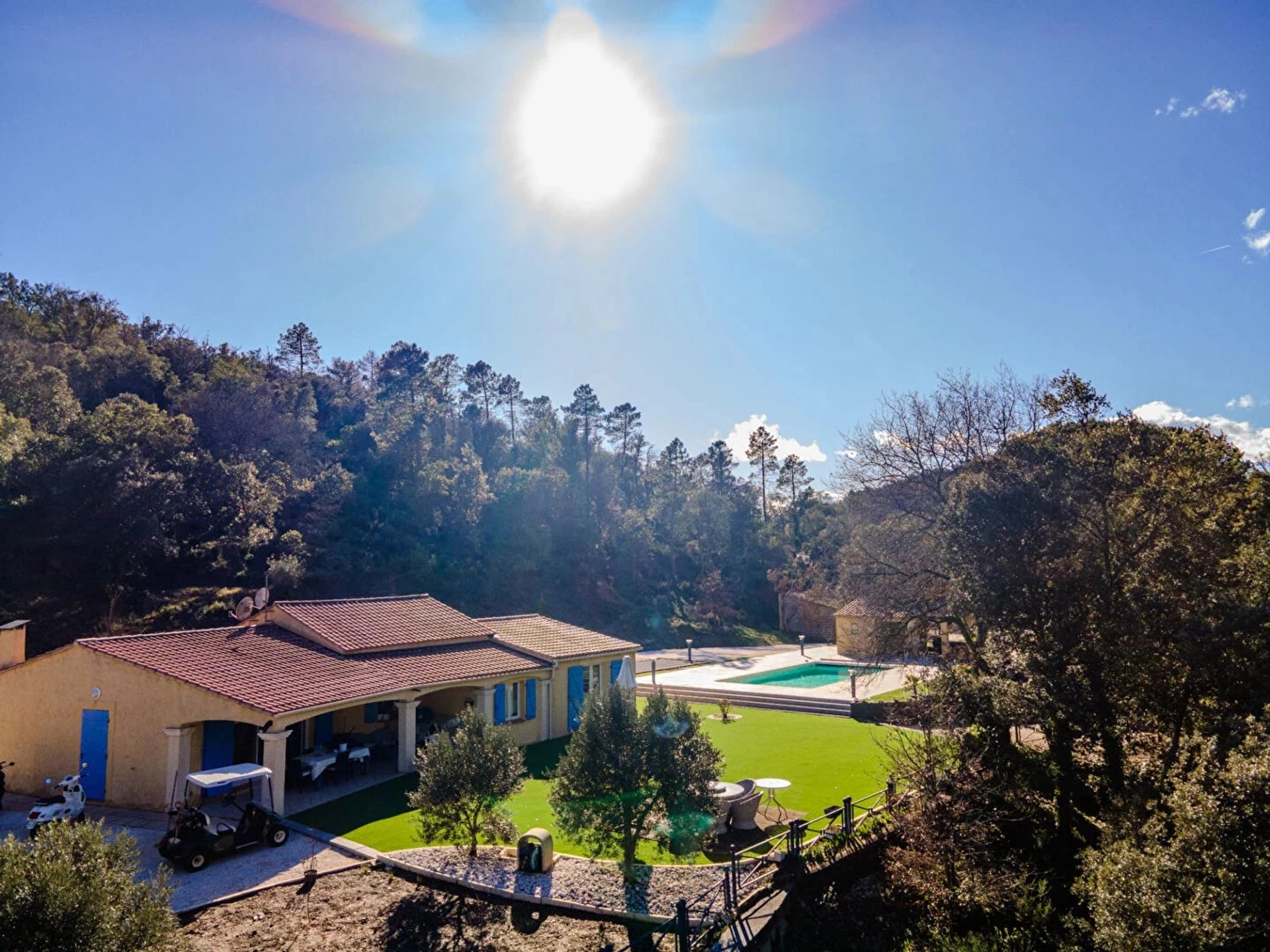 My Home Connexion vous propose cette magnifique propriété à Collobrières (83610), véritable havre de paix. Composée de deux maisons, d'une piscine et de diverses dépendances, elle s'étend sur plus de 5 hectares. Voici les détails de ces deux maisons : Première maison (142 m², plain-pied) : Salon/séjour spacieux avec cheminée, ouvert sur une cuisine équipée. Quatre chambres pour accueillir la famille ou les invités. Deux salles de bain pour plus de confort. Garage de 25 m² pour abriter vos véhicules. Seconde maison (environ 130 m²) : Rez-de-chaussée : Grand salon/séjour avec cheminée, ouvert sur une cuisine équipée. Deux chambres, dont une suite parentale. Pièce d'eau. Terrasse de 25 m² pour profiter des beaux jours. Étage : Mezzanine aménagée en bureau. Deux chambres supplémentaires. Salle de douche et WC séparé. Garage de 36 m² pour vos besoins de stockage. En plus de ces caractéristiques, la propriété dispose d'un puits avec forage et d'un grand garage de 72 m² aménagé en salle de sport. Mais le joyau de cet ensemble est sans aucun doute la magnifique piscine d'eau salée (6 mètres par 12 mètres, système intelligent BlueControl Ospa commande et surveille de façon entièrement automatique et avec précision toutes les fonctions de votre piscine. Qu'il s'agisse de la qualité de l'eau, de la température de l'eau, des conditions ambiantes, de l'installation ...) avec son espace détente et son boulodrome. Le cadre est exceptionnel, entouré de verdure et avec une vue imprenable sur le Massif des Maures. Située au coeur du massif des Maures, à 35 km de Saint Tropez, 35 km de Sainte Maxime, 30 km d'Hyères, 24 km de Grimaud et 25 km du Lavandou, cette propriété vous séduira par son environnement paisible et boisé. Vous pouvez ainsi accéder à chacune des deux habitations par leur entrée respective indépendante. Si vous recherchez la tranquillité, le charme champêtre et la proximité de la nature, cette propriété est à voir absolument ! Dossier sur demande. Les informations sur les risques auxquels ce bien est exposé sont disponibles sur le site Géorisques http://www.georisques.gouv.fr/