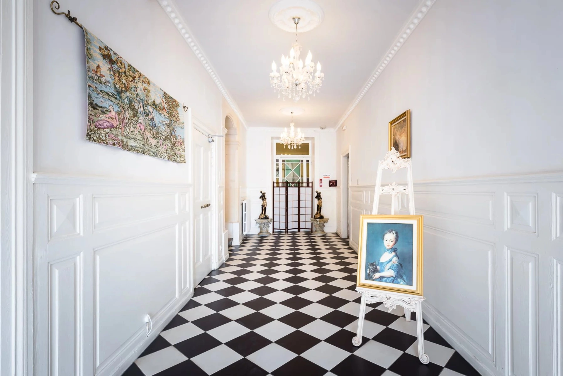 Le bâtiment principal développe aujourd’hui de beaux volumes répartis sur plusieurs niveaux. Le rez-de-chaussée accueille de vastes salles de réception d’environ 279 m², idéales pour recevoir ou imaginer des espaces de vie et de convivialité. Les étages supérieurs offrent de nombreux salons, chambres et salles de bains, laissant entrevoir de multiples possibilités d’aménagement. Les caves représentent environ 244 m².