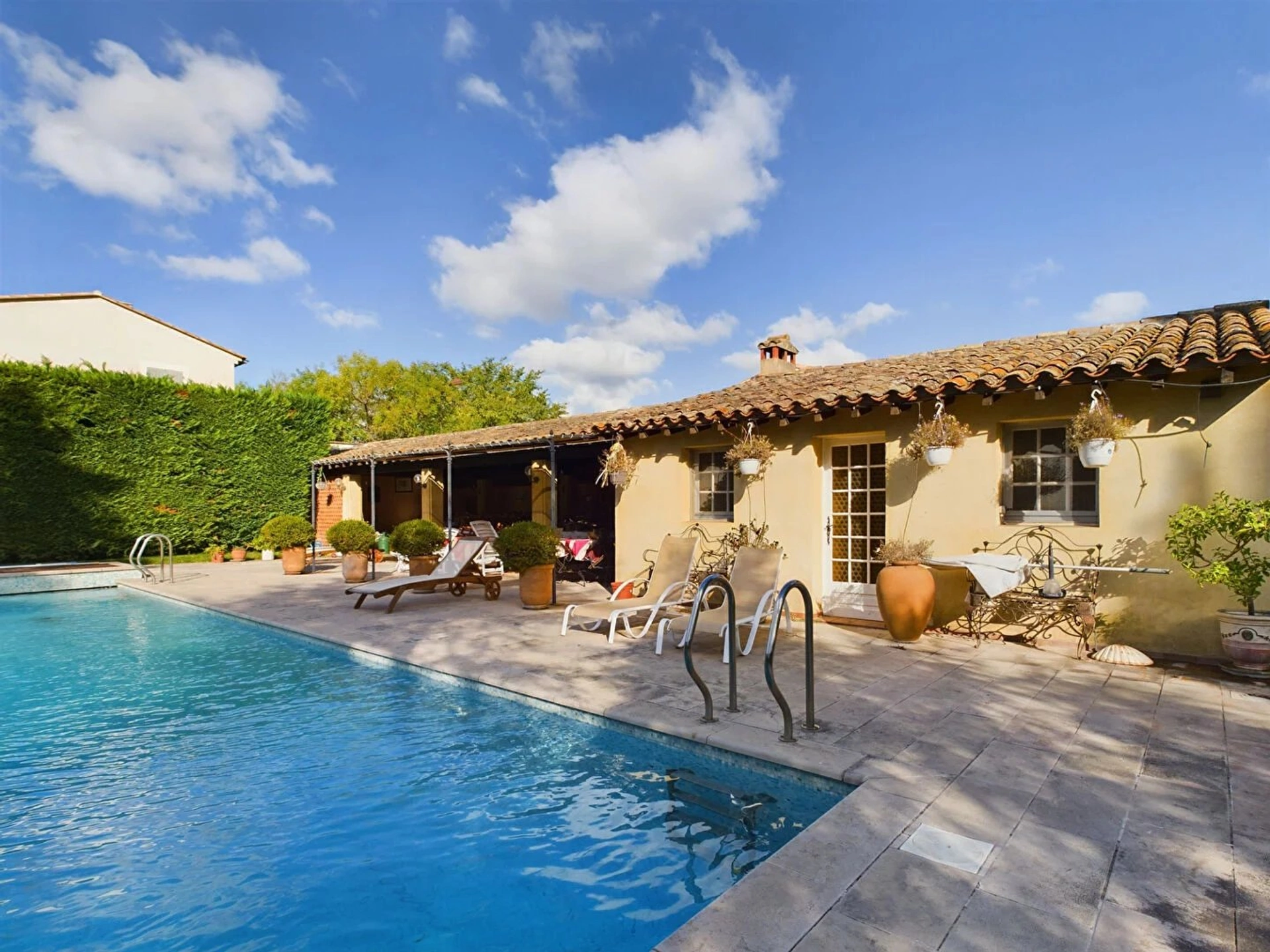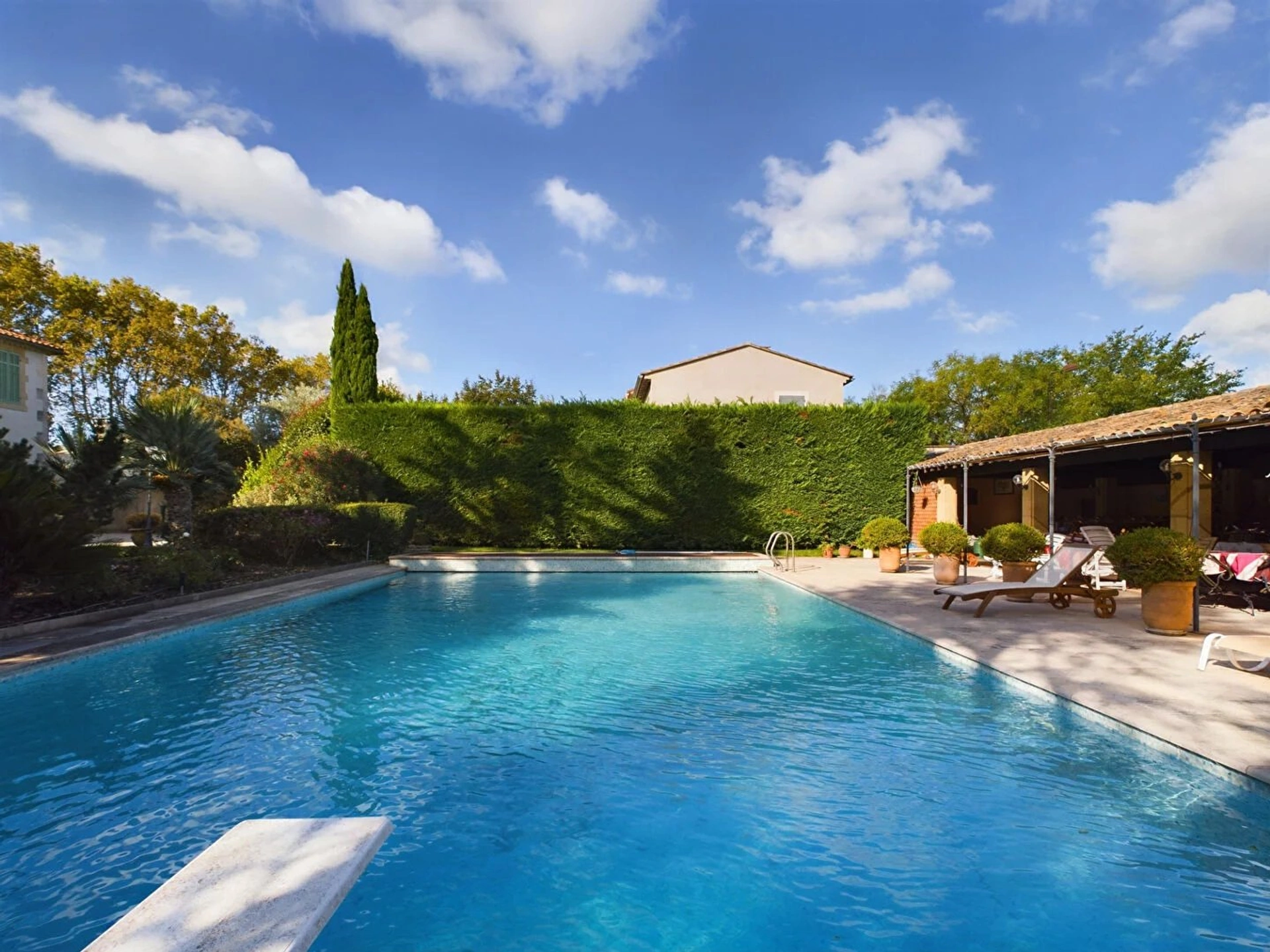 Grand parc arboré, piscine chauffée de 15 x 12, avec pool house, cuisine d'été, four à pizza et 1 suite avec salle d'eau, wc indépendant et espace de rangement.