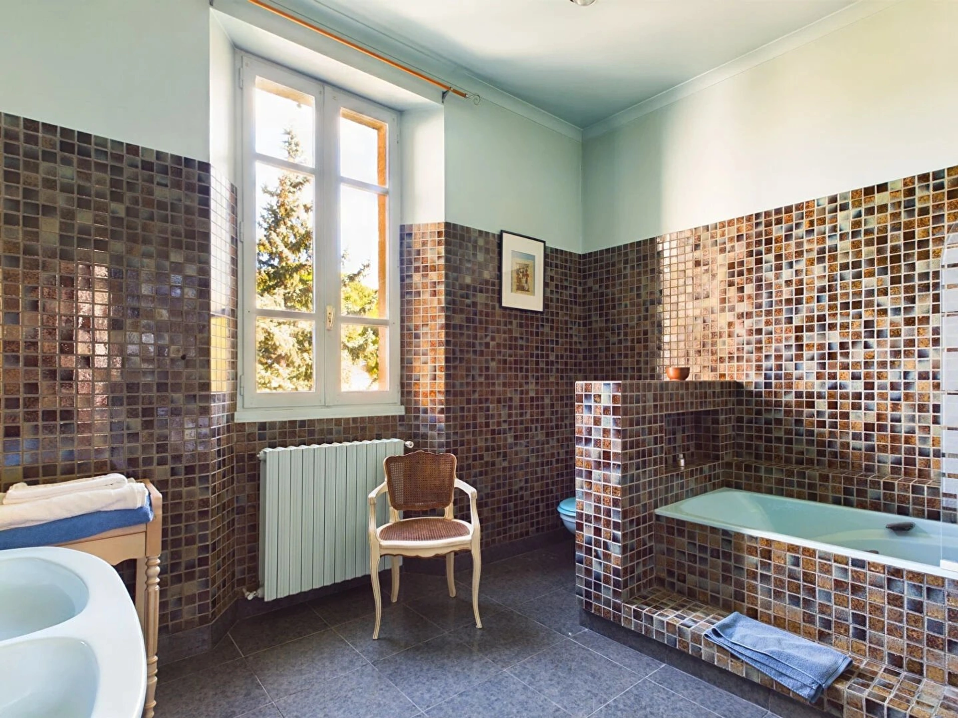 A l'étage; 4 suites avec chacune salle de bains, wc et 1 somptueuse chambre parentale, avec salle de bains, wc et dressing. 1 autre suite se trouve dans la tour.