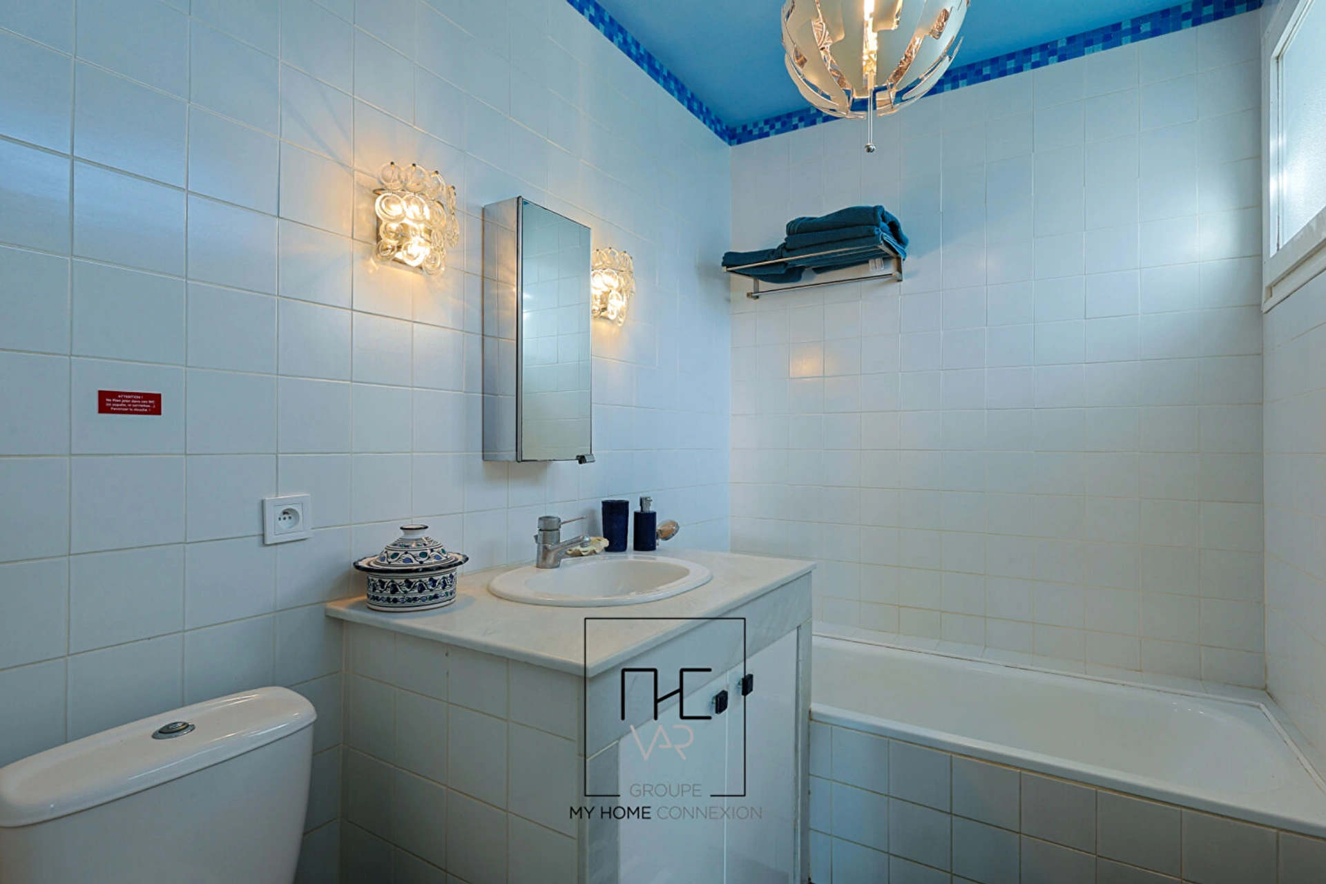 La villa comprend également trois salles d'eau, une salle de bain et quatre WC, offrant un haut niveau de confort et d'aménagement possible.