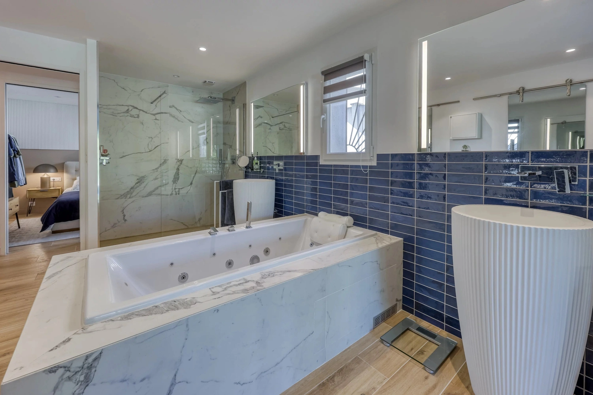 · 1 salle de bain comprenant baignoire balnéo et douche à l’italienne