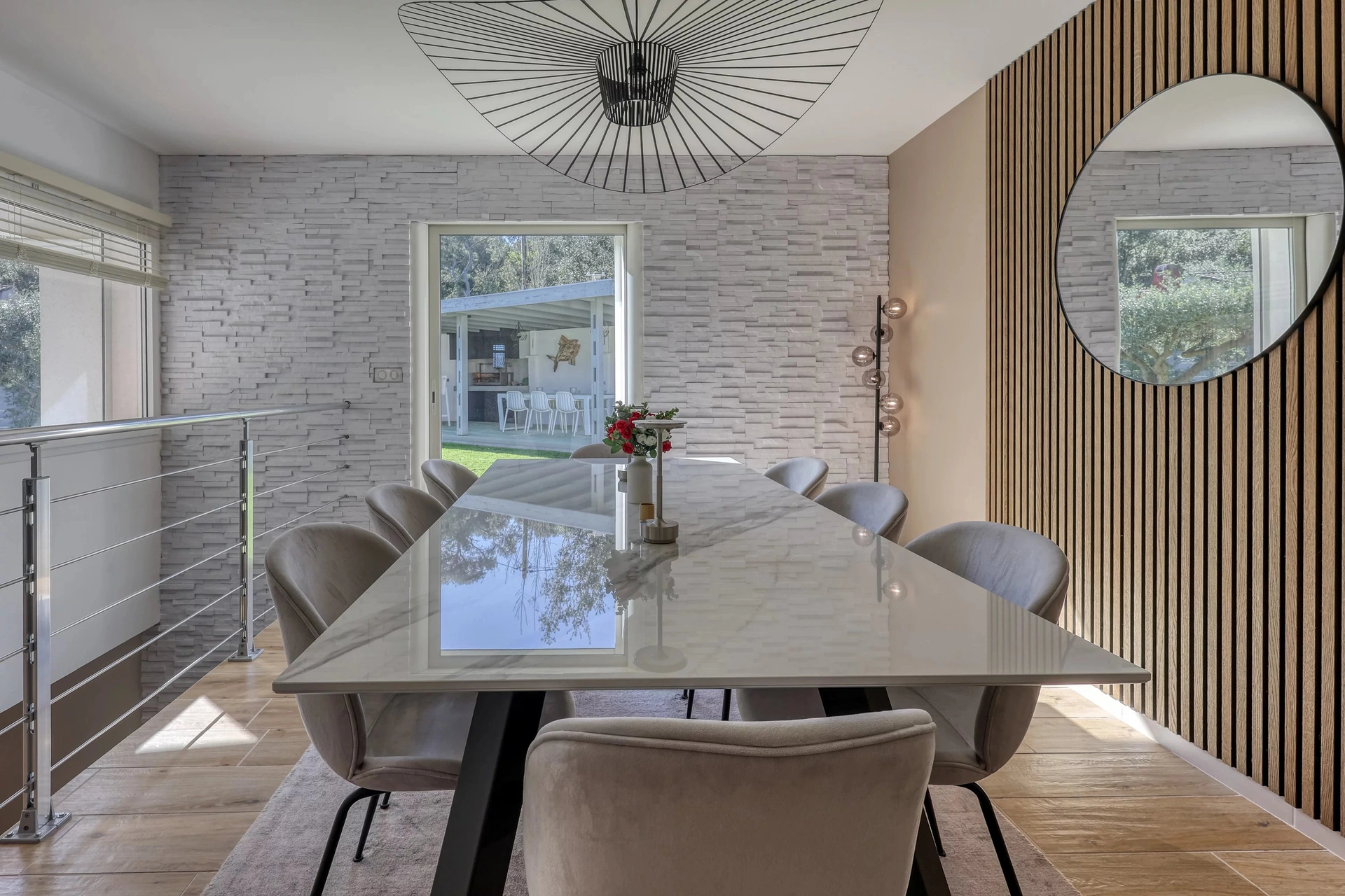 Entièrement rénovée en 2023, la maison a été conçue, agencée et décorée par une architecte d'intérieur, avec une attention particulière portée à la circulation des volumes, à la lumière et à la cohérence des matériaux.