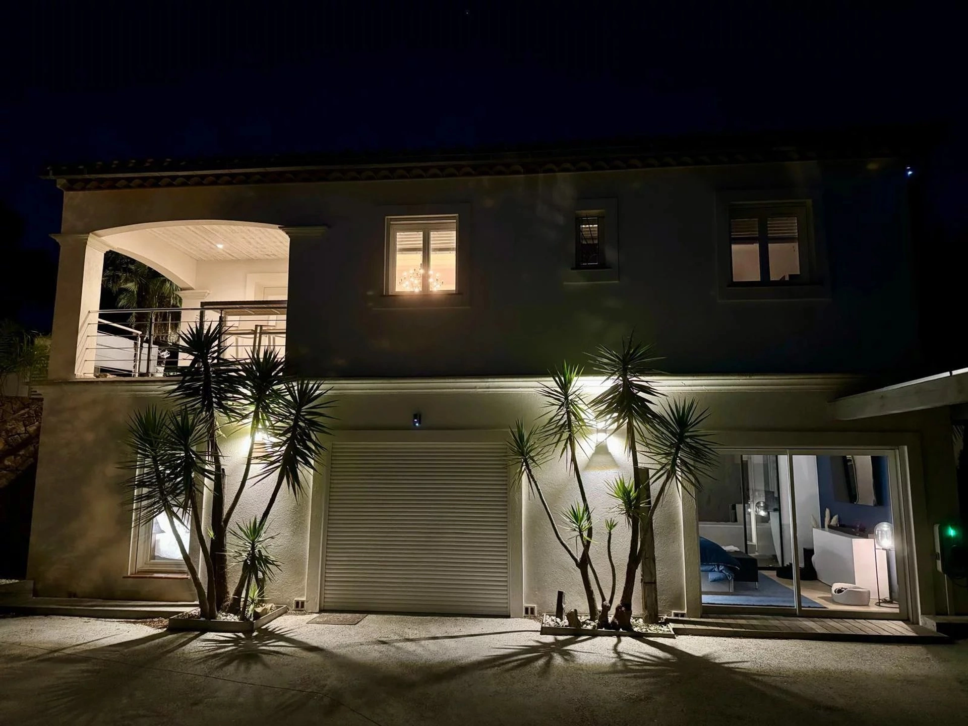 La maison fonctionne aussi bien de jour que de nuit, avec une mise en lumière travaillée.