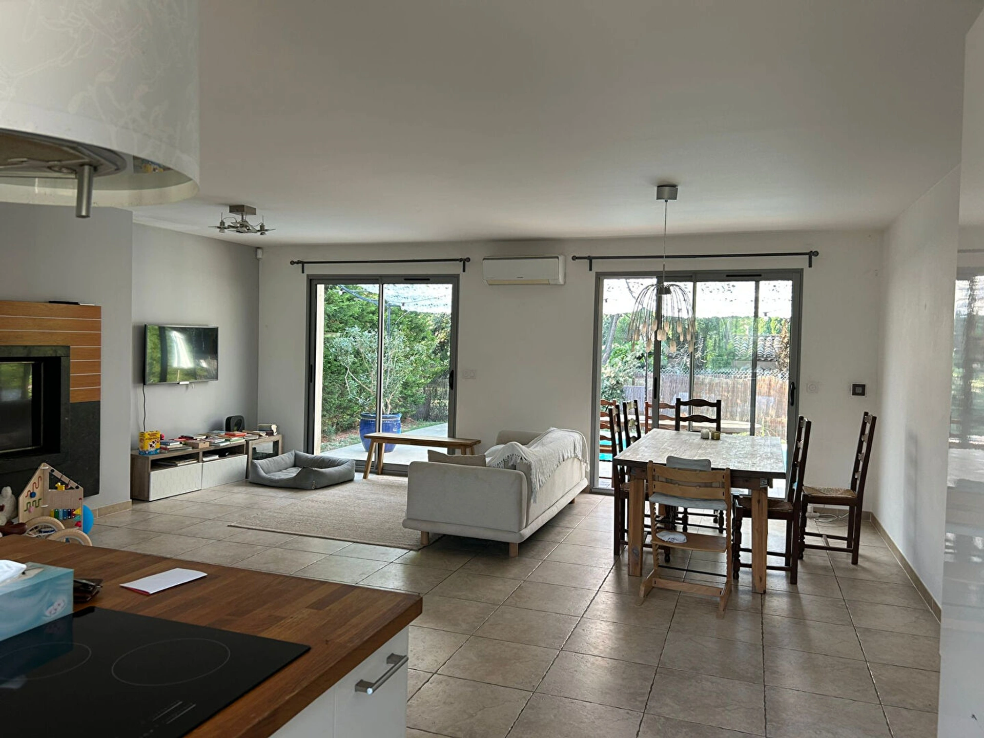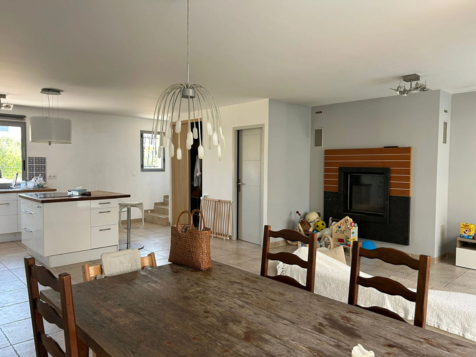 Dès l'entrée, vous trouverez le salon ouvert sur la terrasse et la piscine, parfait pour profiter des beaux jours . La cuisine moderne, ouverte sur l'espace de vie, offre un cadre chaleureux et pratique.