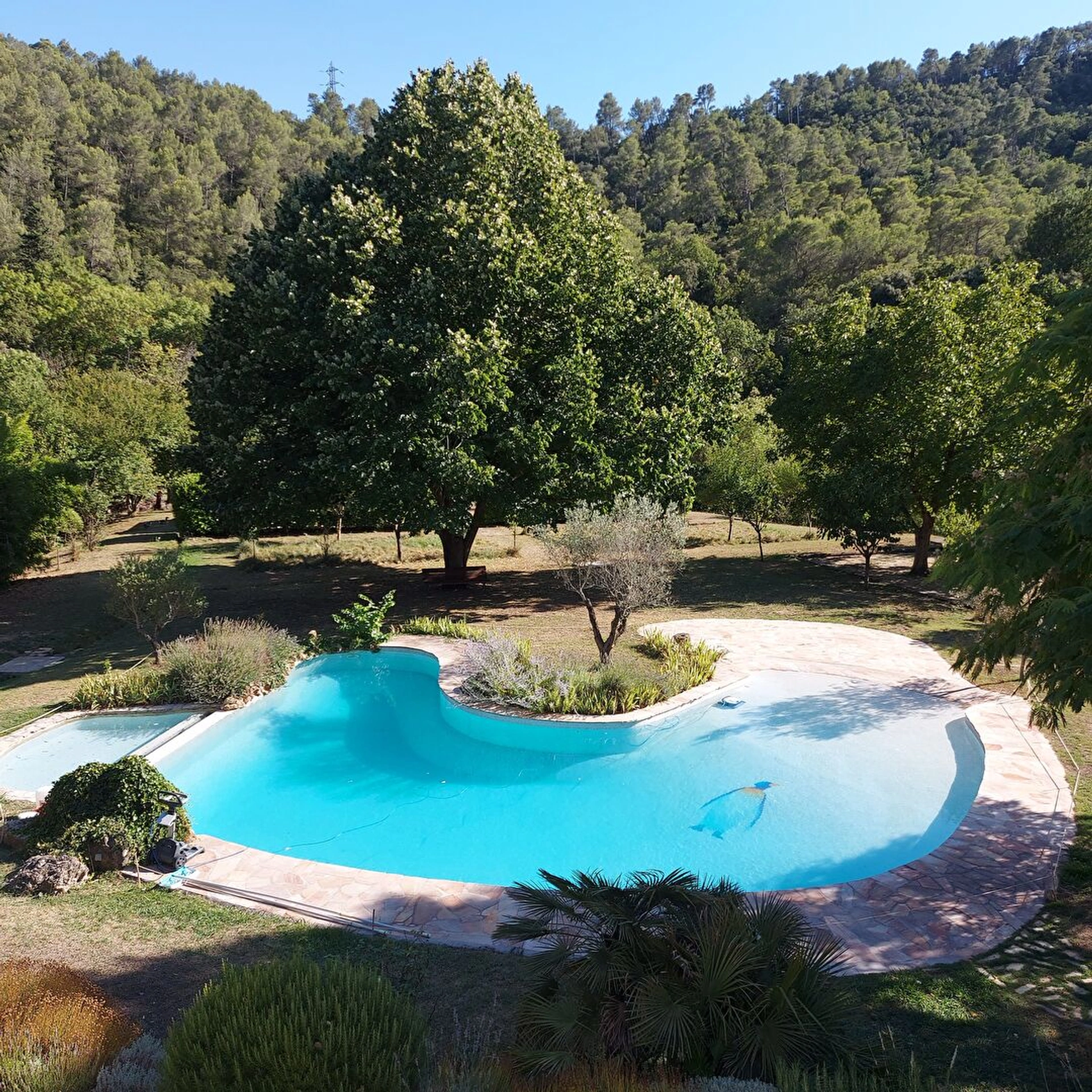 A l'extérieur, tout respire la quiétude : piscine, verger, terrain de boules, serre, bassin à nénuphars, et quatre garages couverts.