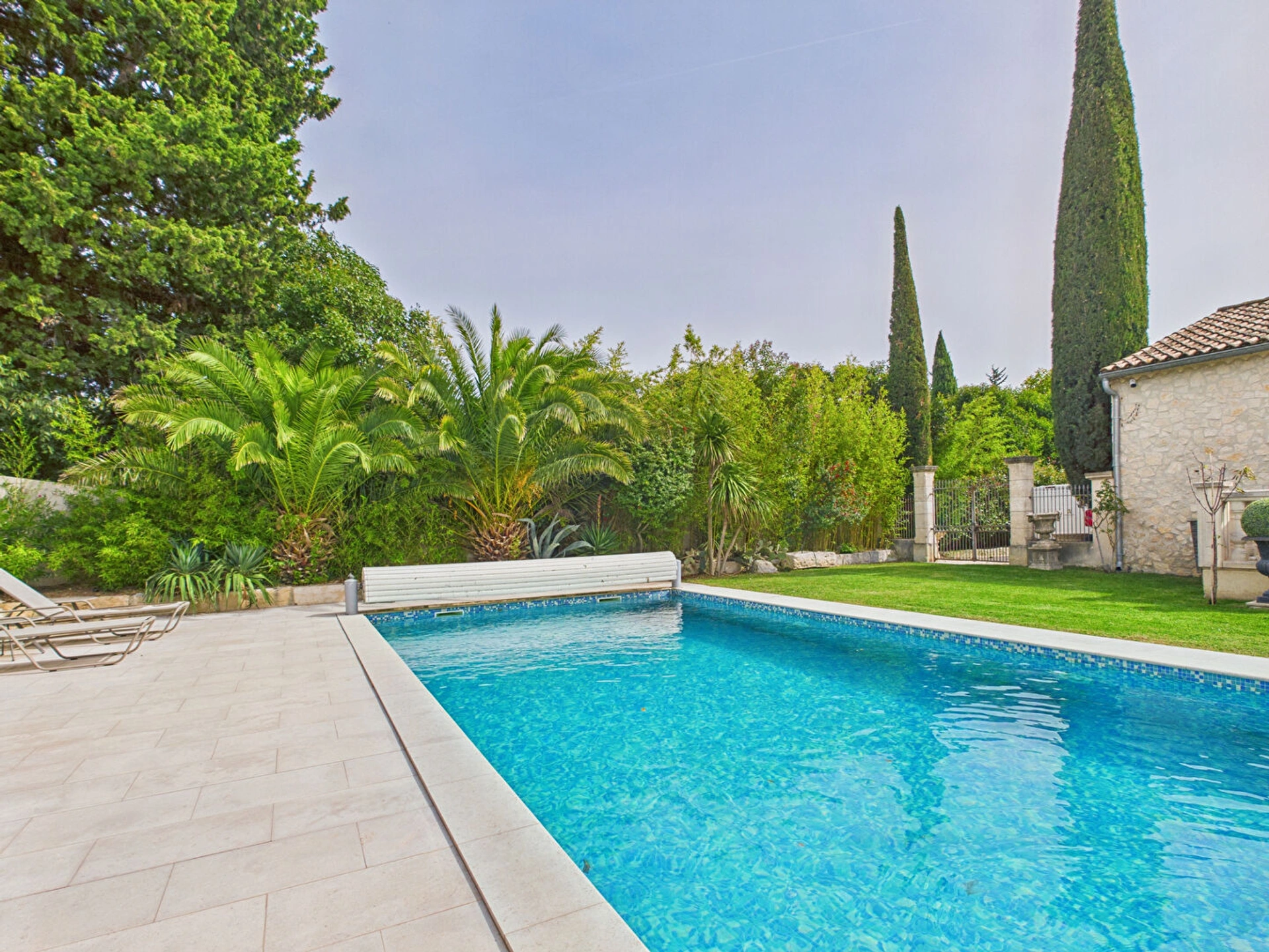 A l'extérieur, le jardin paysagé de plus de 2300 m² est un véritable havre de paix. La piscine chauffée, nichée dans un écrin de verdure, invite à la détente et à l'évasion, dans une ambiance où le temps semble suspendu.