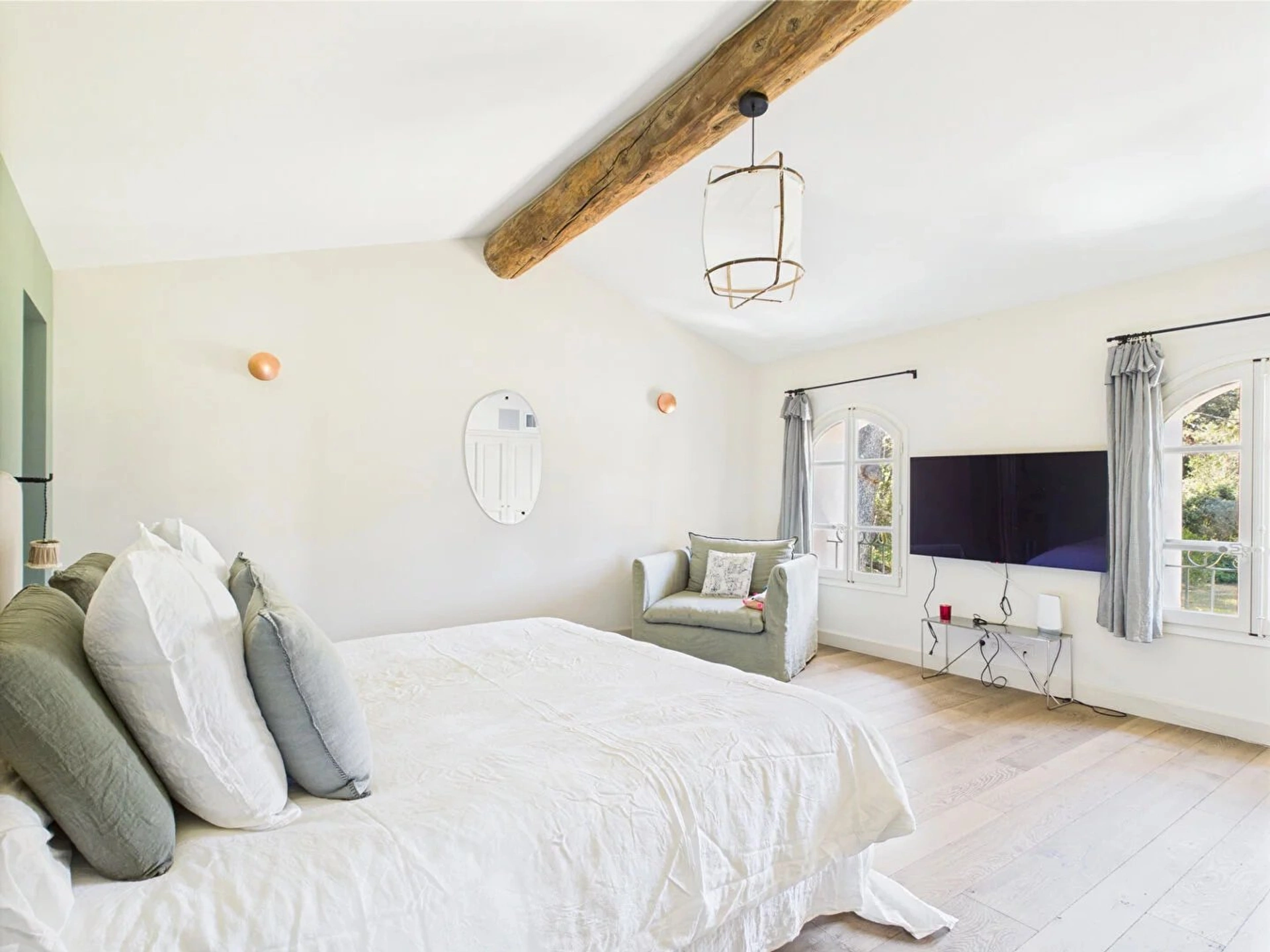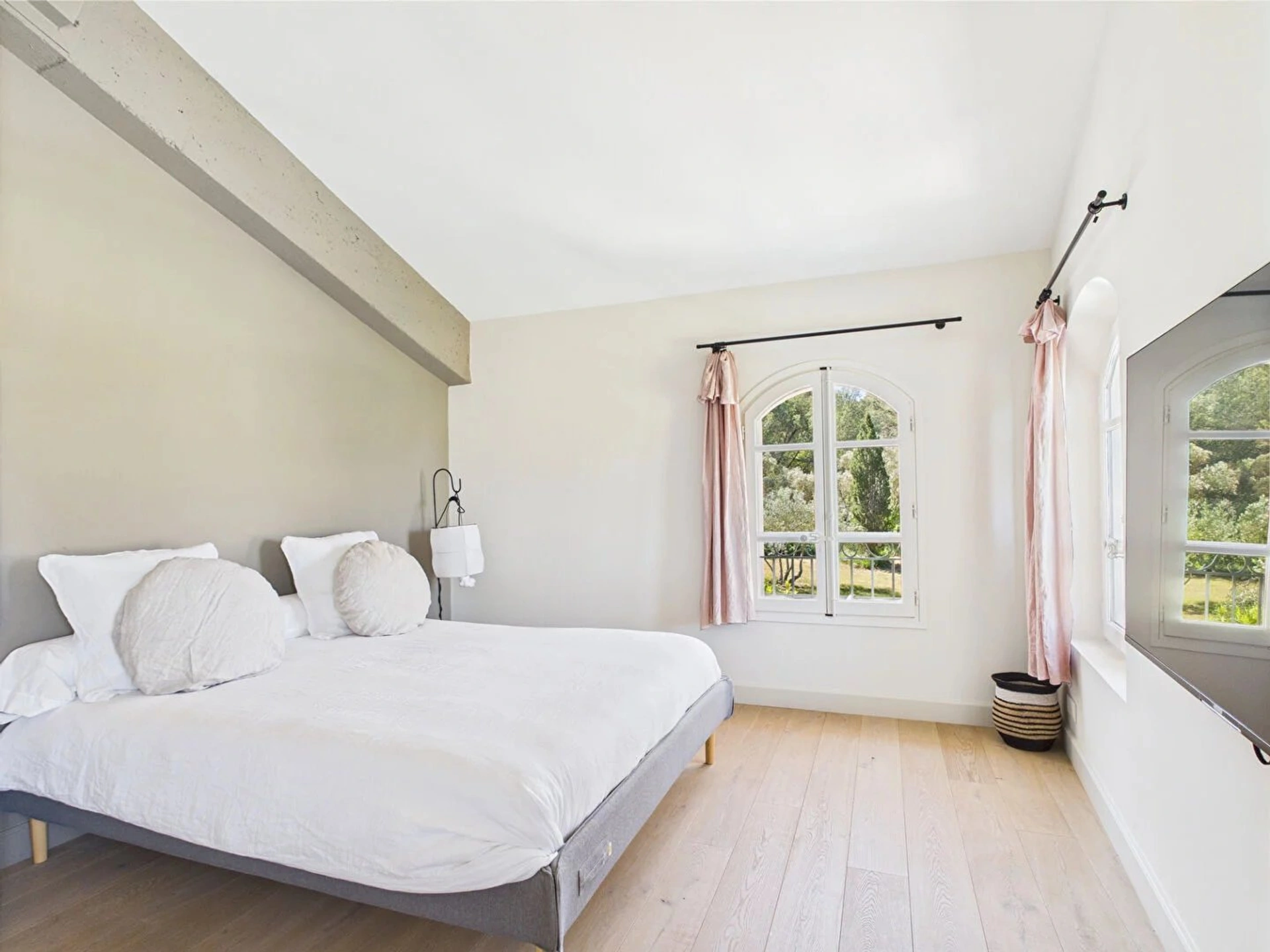 Le mas entièrement climatisé, est sur deux niveaux avec au rez-de-chaussée, un salon TV, un salon, une cuisine qui donne un accès direct à la piscine et à sa terrasse, ainsi qu'une chambre et sa salle d'eau.