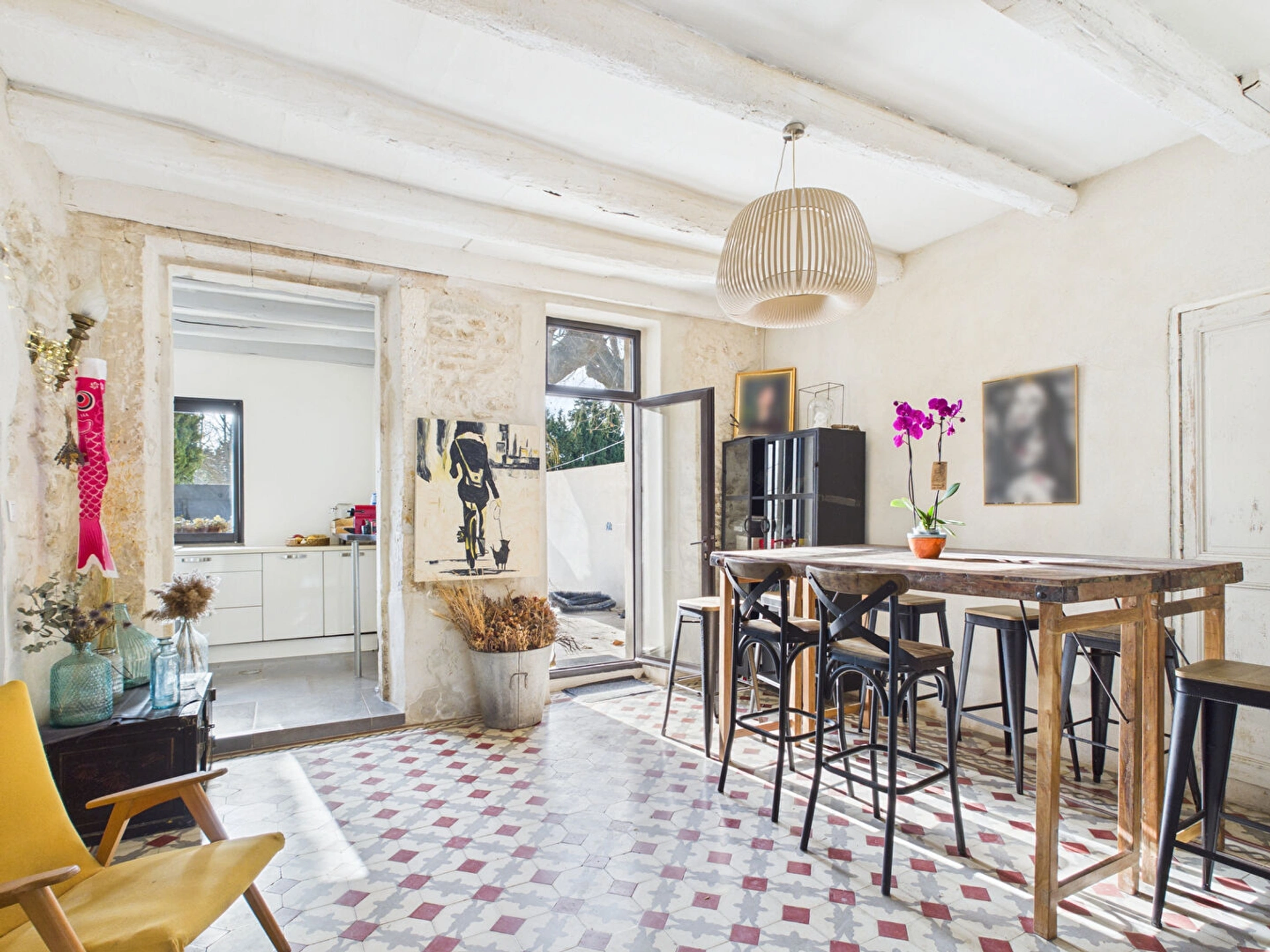 Situé au calme et proche du centre-ville, vous serez conquis par sa lumière naturelle, ses murs en pierre, ses carreaux de ciment et mosaïques au sol.
