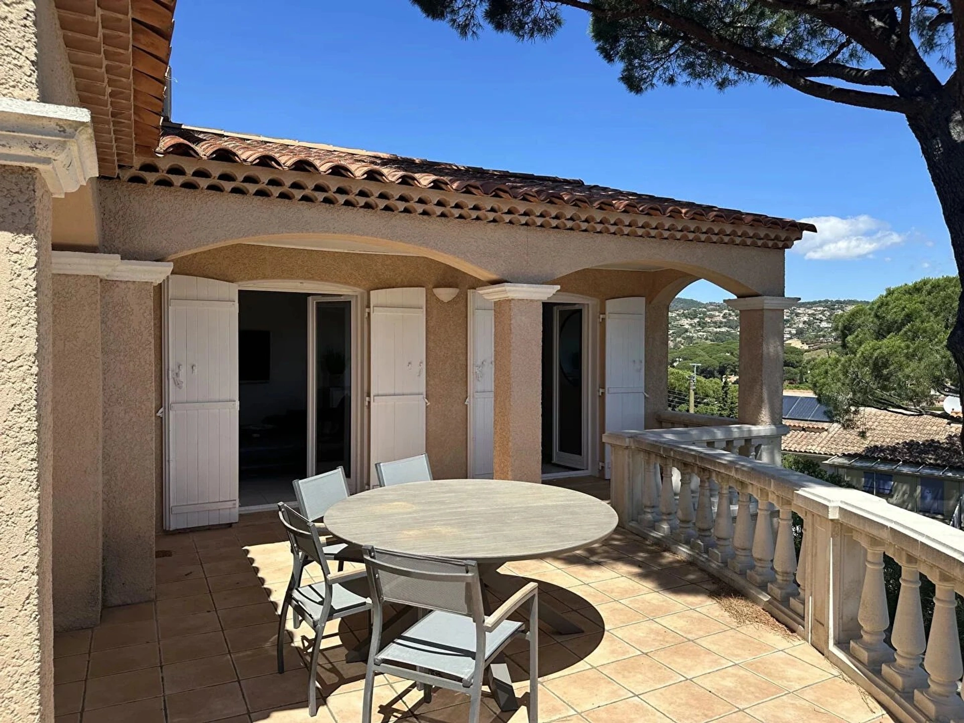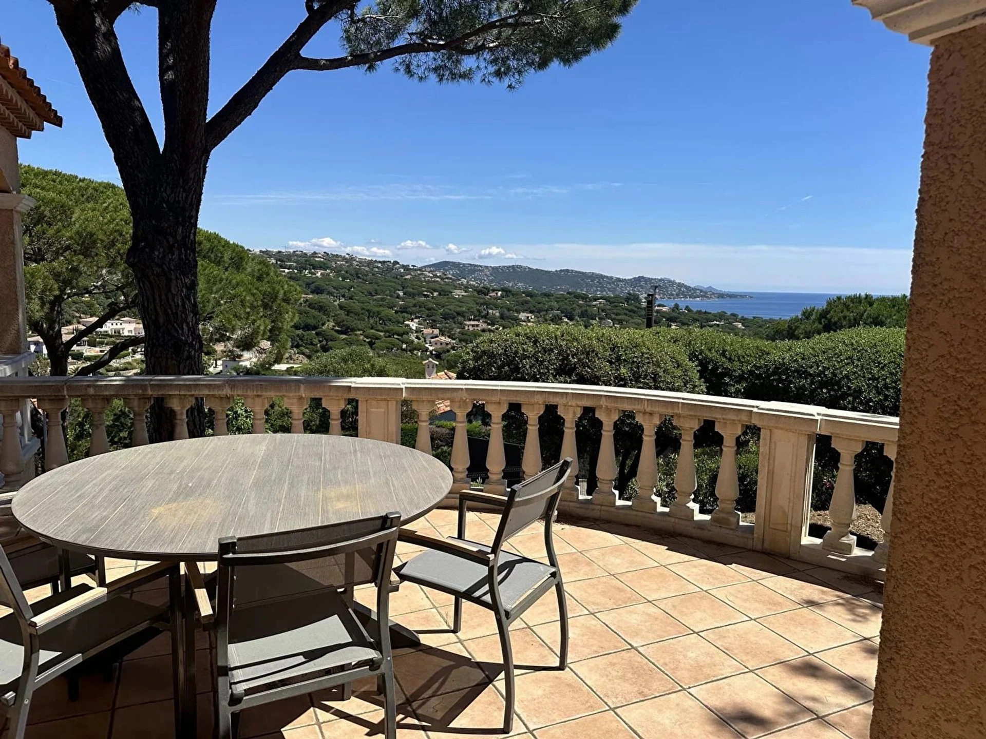 My Home Connexion vous propose à la vente cette villa provençale avec vue mer et proche des plages de la Nartelle avec une belle piscine exposée Sud. Cette villa de 130 m2, joliment décorée et avec des prestations de qualité, se situe sur un terrain d'environ 1000 m² paysagé. Au rez-de-chaussée, se trouvent un salon-salle à manger donnant sur une belle terrasse ombragée, une cuisine équipée et fonctionnelle avec un accès sur l'extérieur et la piscine, ainsi qu'une chambre de plain-pied avec sa salle de douche et toilettes séparées. A l'étage, 3 chambres, une salle de douche et toilettes séparées. Elle dispose également en rez-de-jardin d'un grand garage d'environ 40 m2 et des dépendances qui peuvent servir d'atelier ou autres activités. Un ascenseur permet de relier le garage et la pièce à vivre de la maison. Les plus : Climatisation réversible, Wifi, places de parking, arrosage automatique, éclairage extérieur. Villa vendue meublée. VILLA - MAISON - VUE MER - PROCHE PLAGE - SAINTE-MAXIME - PISCINE Les informations sur les risques auxquels ce bien est exposé sont disponibles sur le site Géorisques - http://www.georisques.gouv.fr/