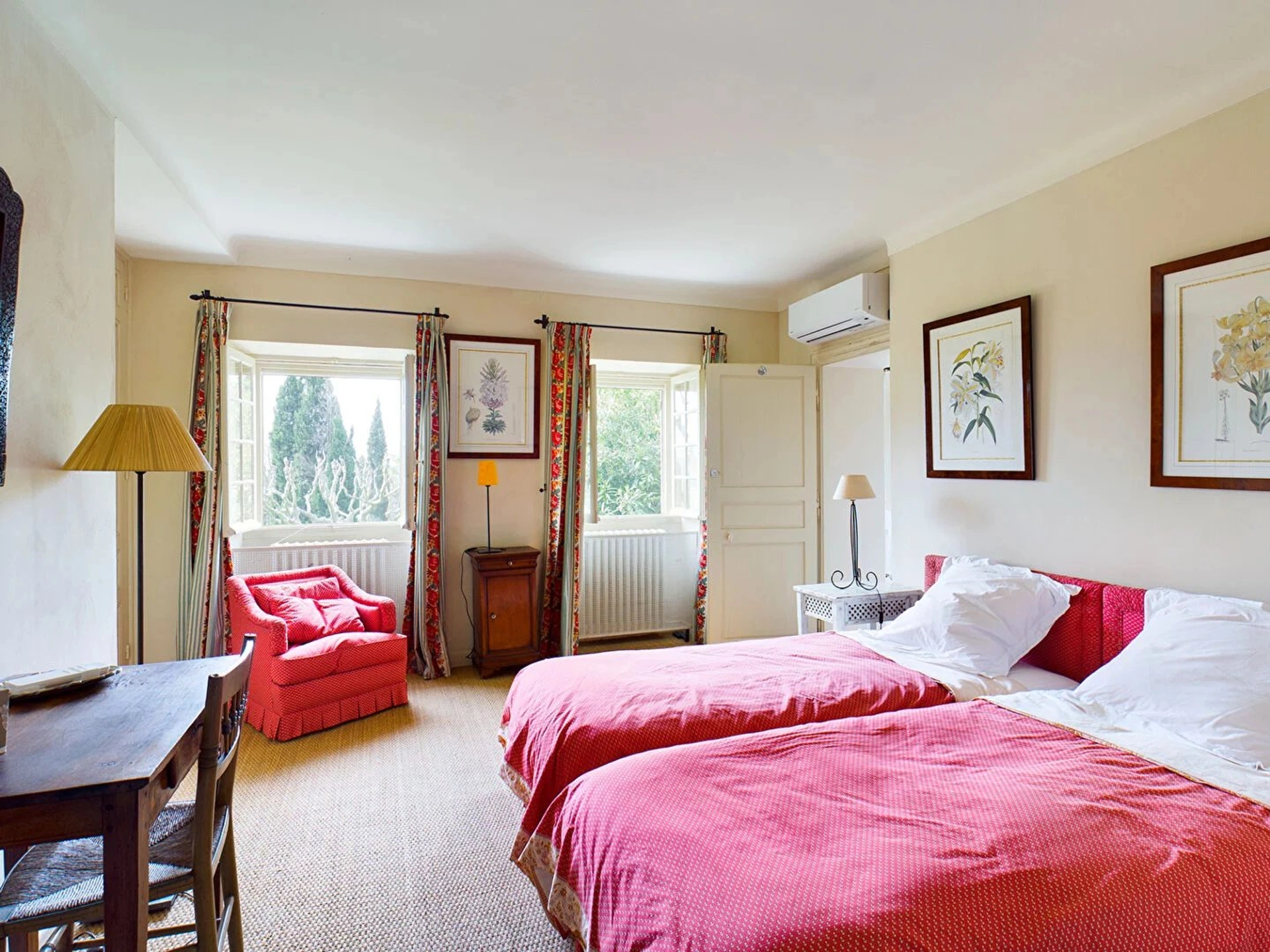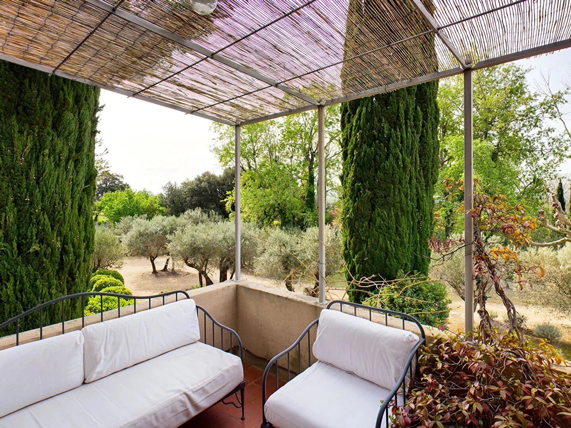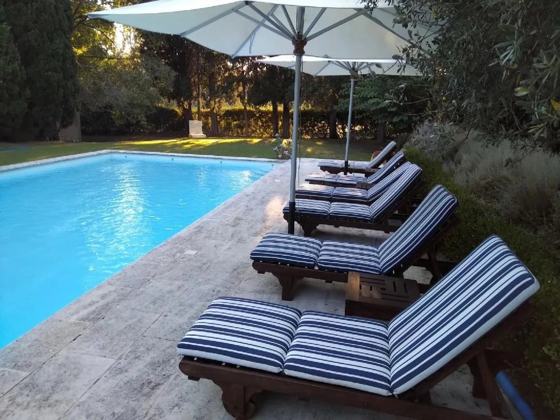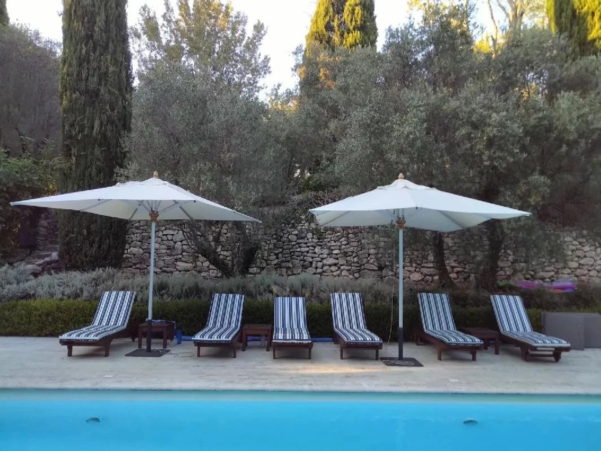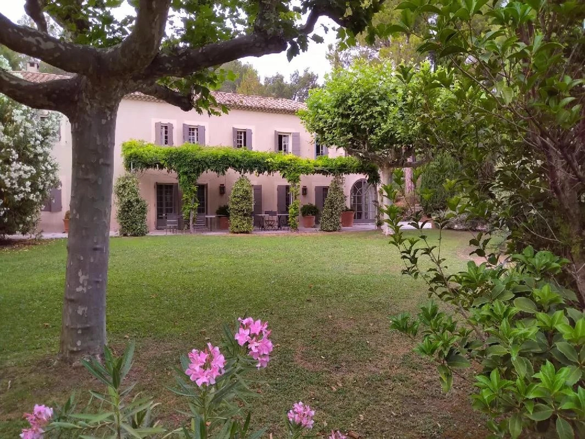 A l'extérieur dans le beau parc de 6 000m², vous trouverez une petite dépendance avec un salon, deux chambres, deux salles de bains et un coin cuisine, un peu plus loin un petit mazet avec une chambre, une salle d'eau et une kitchenette.