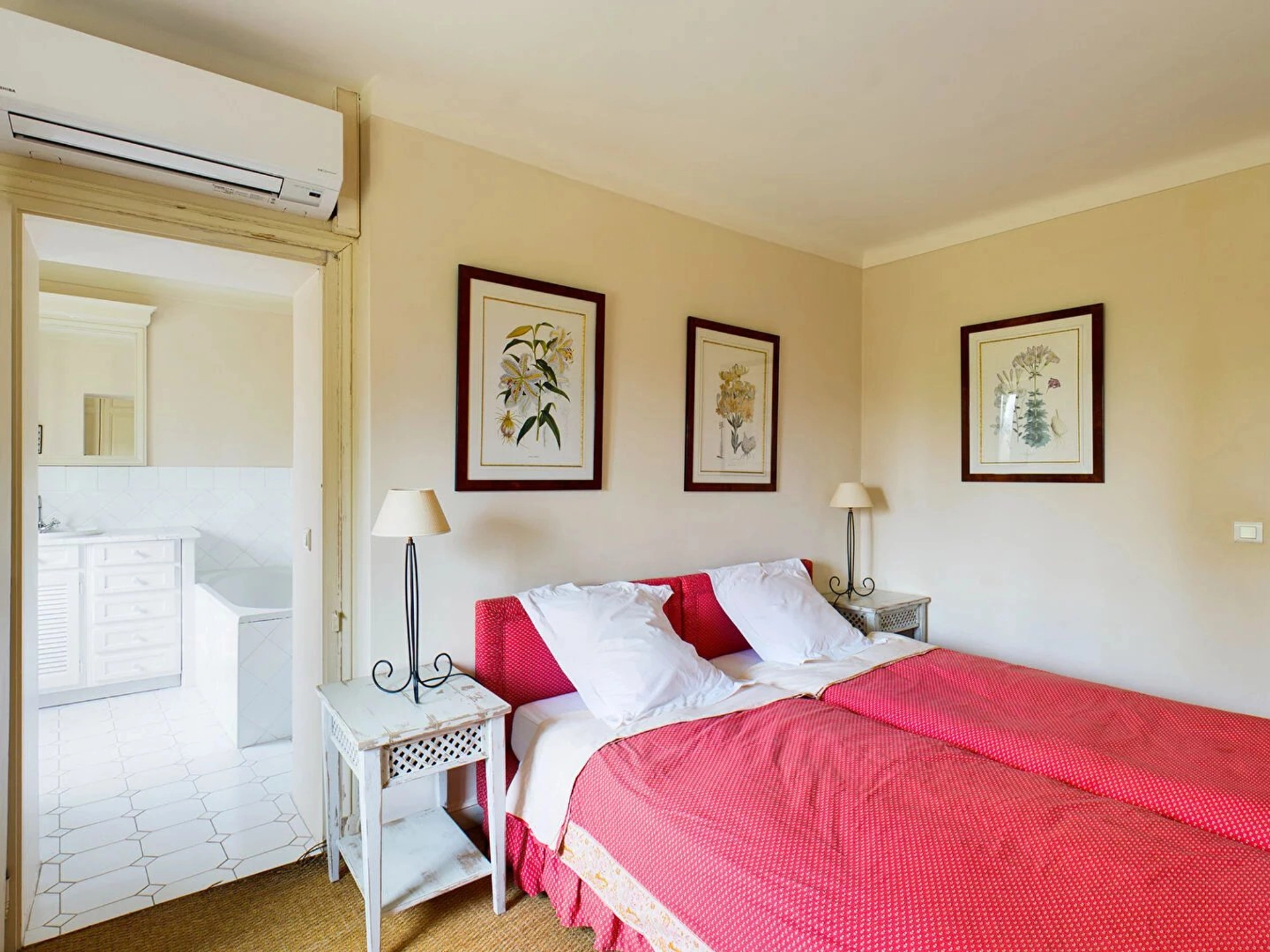 A l'étage 3 chambres avec chacune une salle de bain et des wc privatifs et 1 chambre avec une salle d'eau et wc.