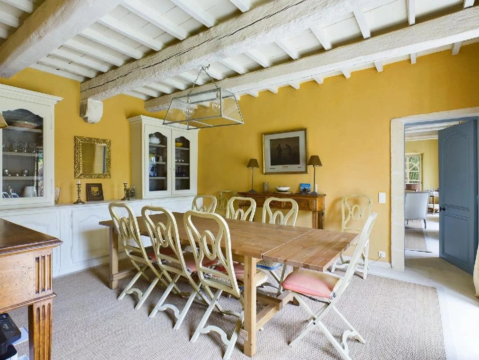 Le mas dispose au rez de chaussée d'un salon, une salle à manger, un bureau, une cuisine entièrement aménagée, une buanderie et des toilettes.