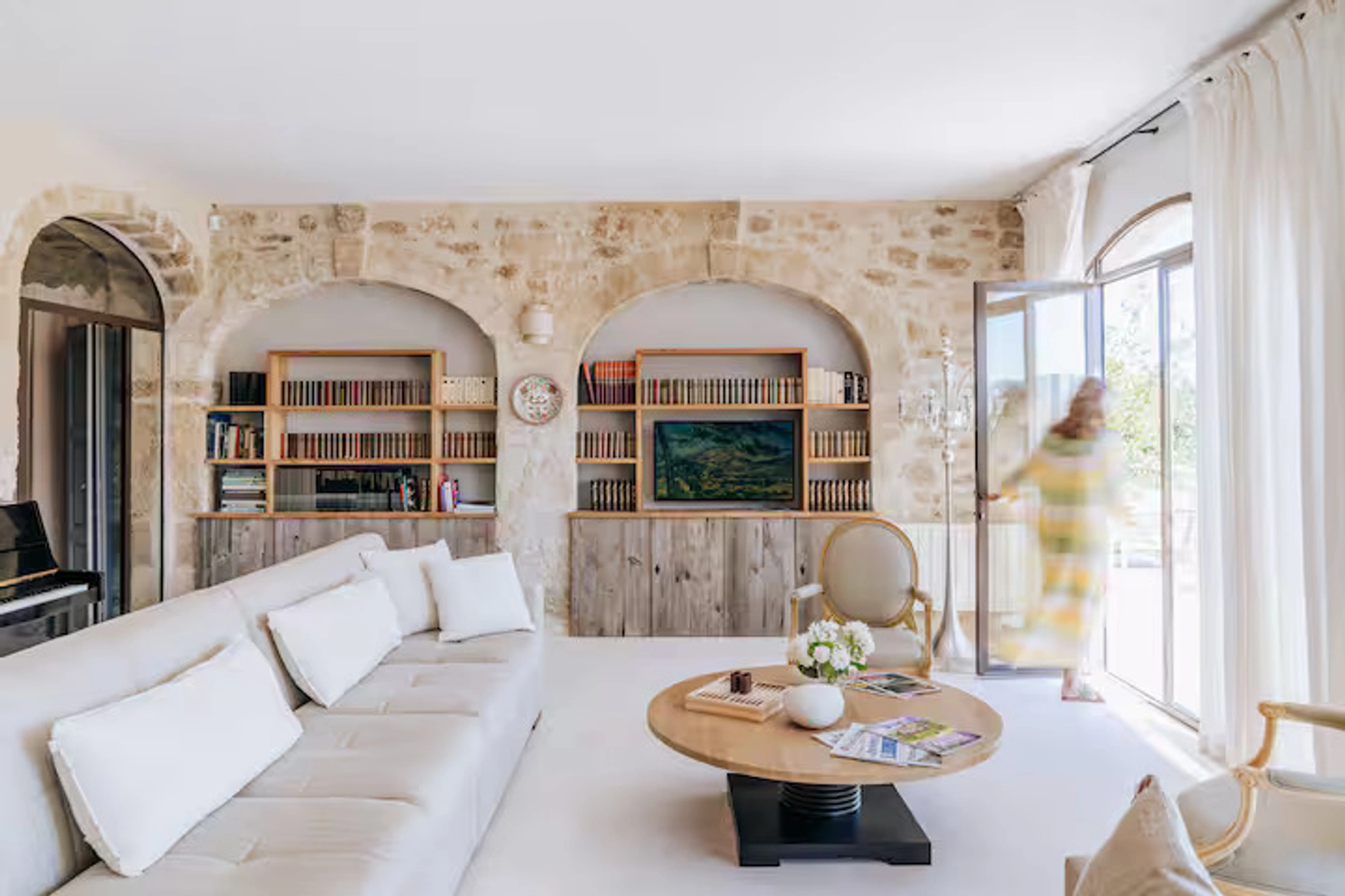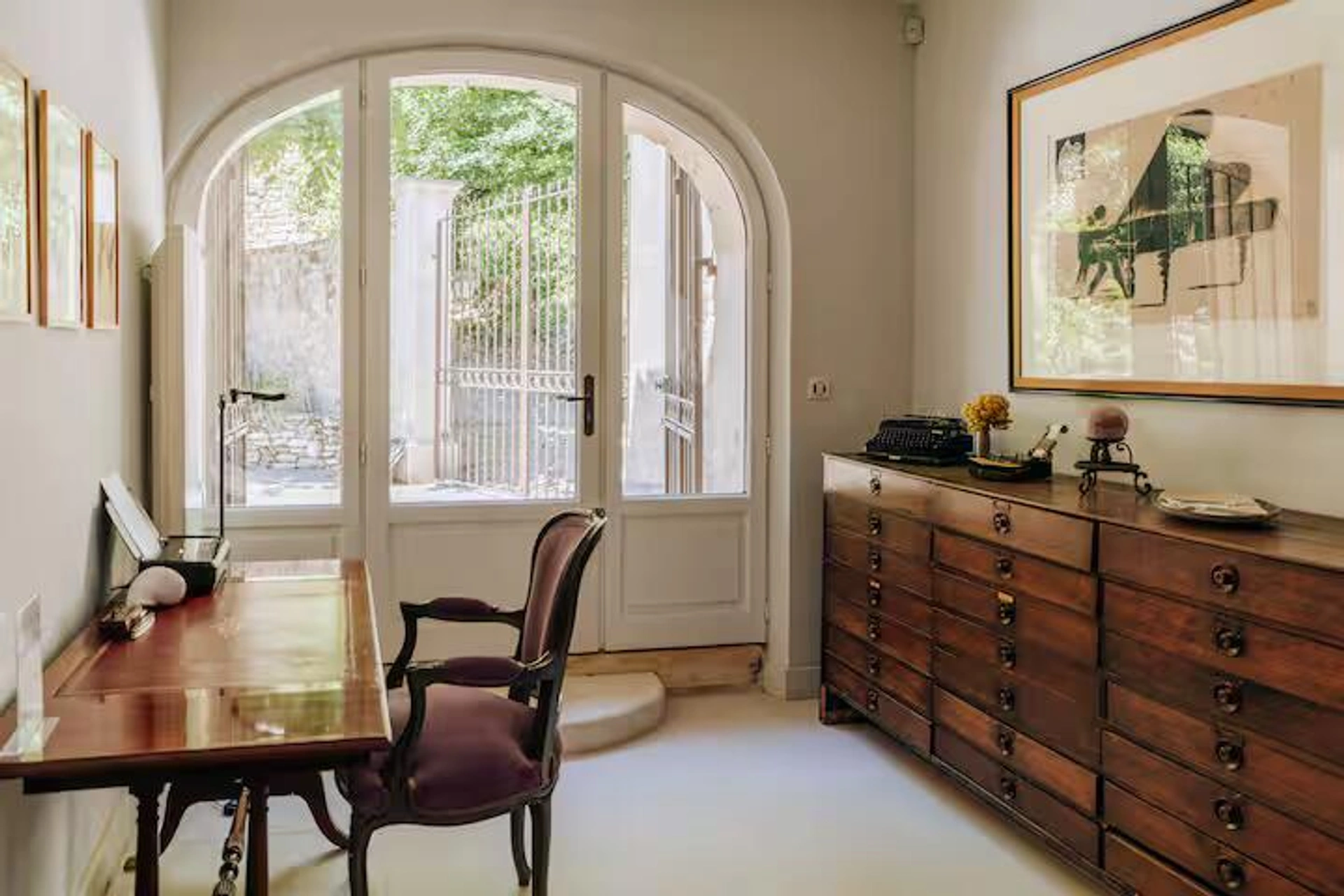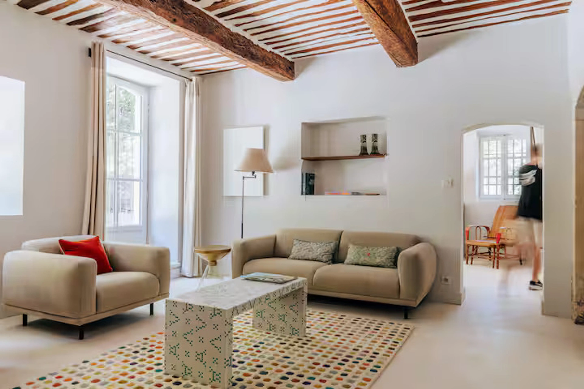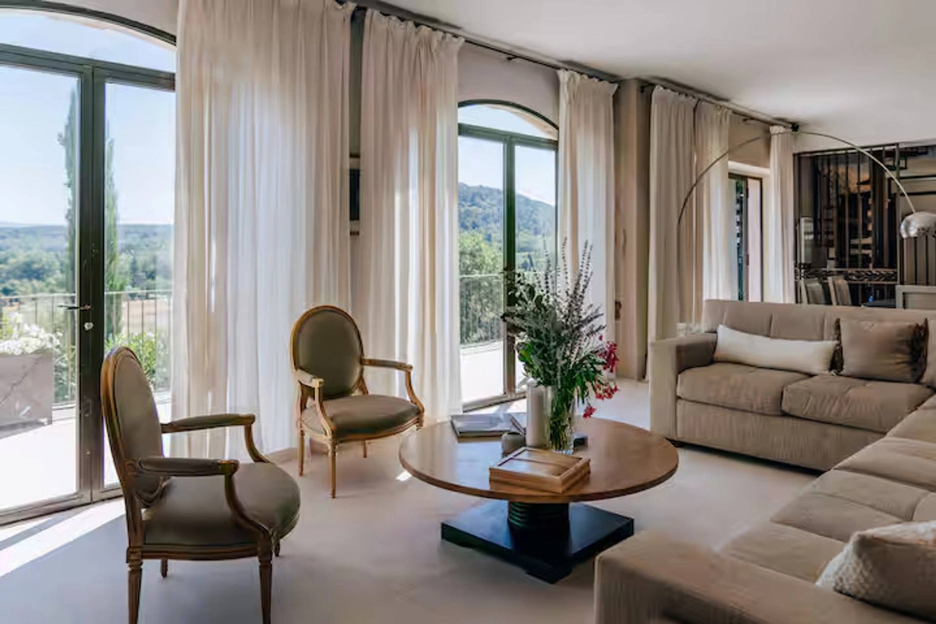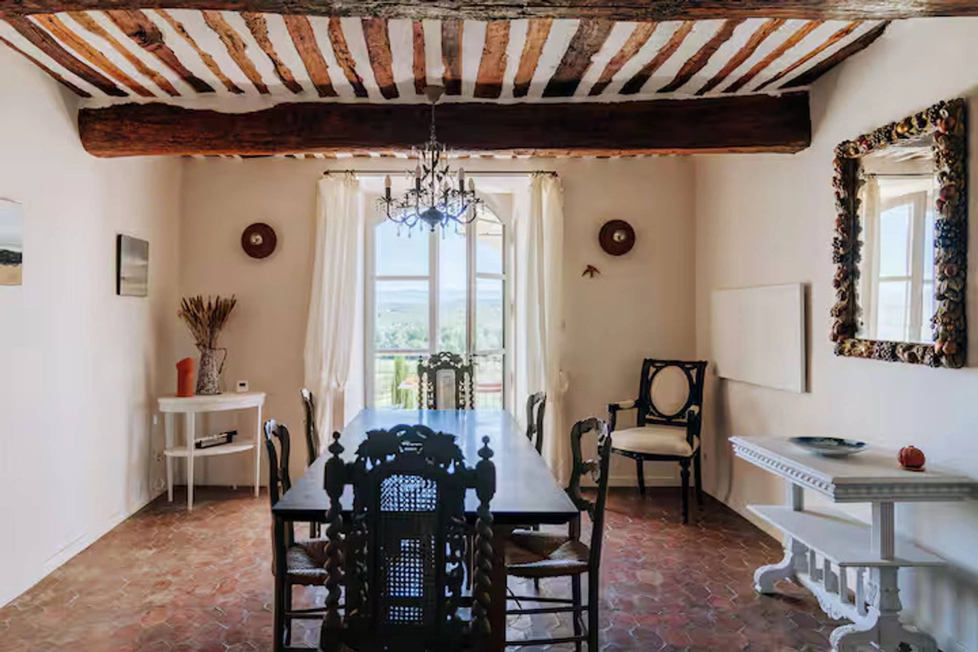 - Chambre "Gatsby" : Une grande chambre double avec vue sur le Mont Ventoux, murs en pierre et plafonds à l’ancienne.