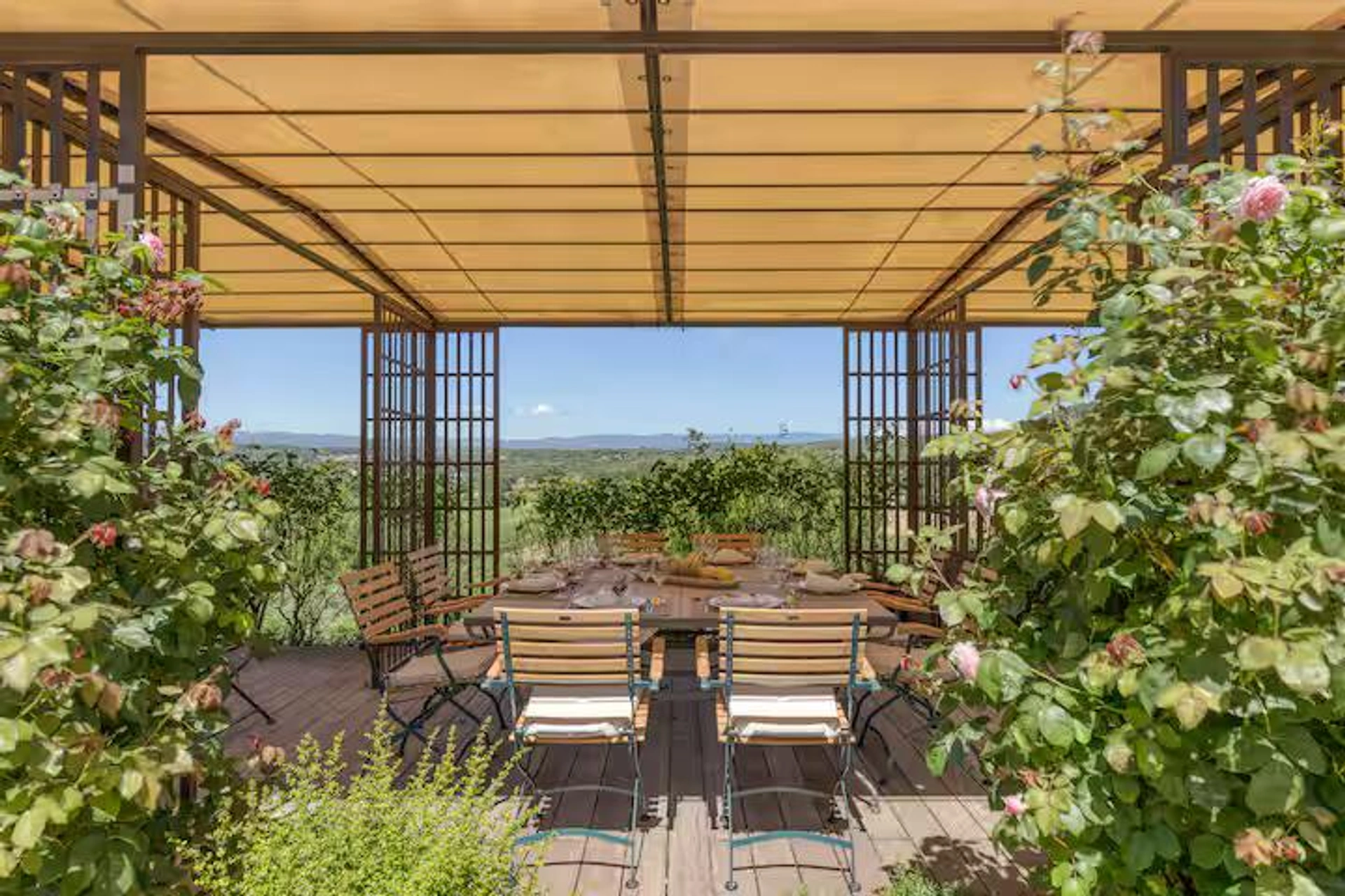 Située à Ménerbes, au cœur du Luberon, cette propriété de caractère offre un cadre unique pour des vacances en Provence, avec des vues dégagées sur la vallée et le Mont Ventoux.