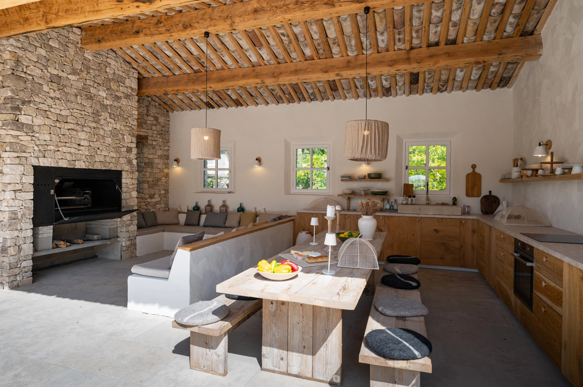Avec ses 7 chambres, chacune dotée de sa propre salle d'eau, dont une en roulotte et une en dépendance, il offre tout le confort pour accueillir de grandes familles ou groupes d'amis. Récemment restauré avec soin et matériaux de qualité, ce mas respire une atmosphère chaleureuse et raffinée. Les pièces de vie, spacieuses et baignées de lumière, sont parfaites pour des moments de détente et de convivialité.