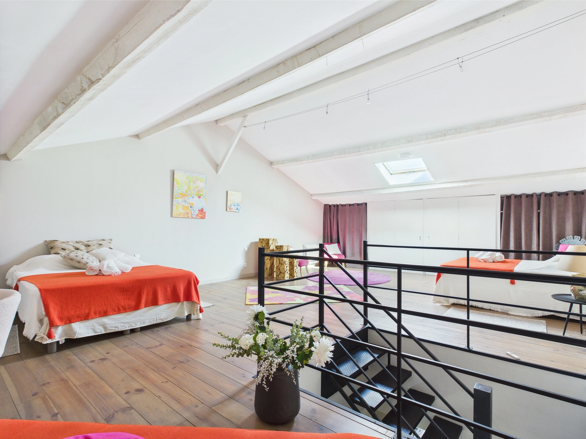 La dépendance propose : Au rez-de-chaussée : Une cuisine ouverte sur un salon/salle à manger, une chambre double, une salle de bain et un WC. À l’étage : Un dortoir confortable équipé de quatre lits simples, parfait pour les enfants ou adolescents.