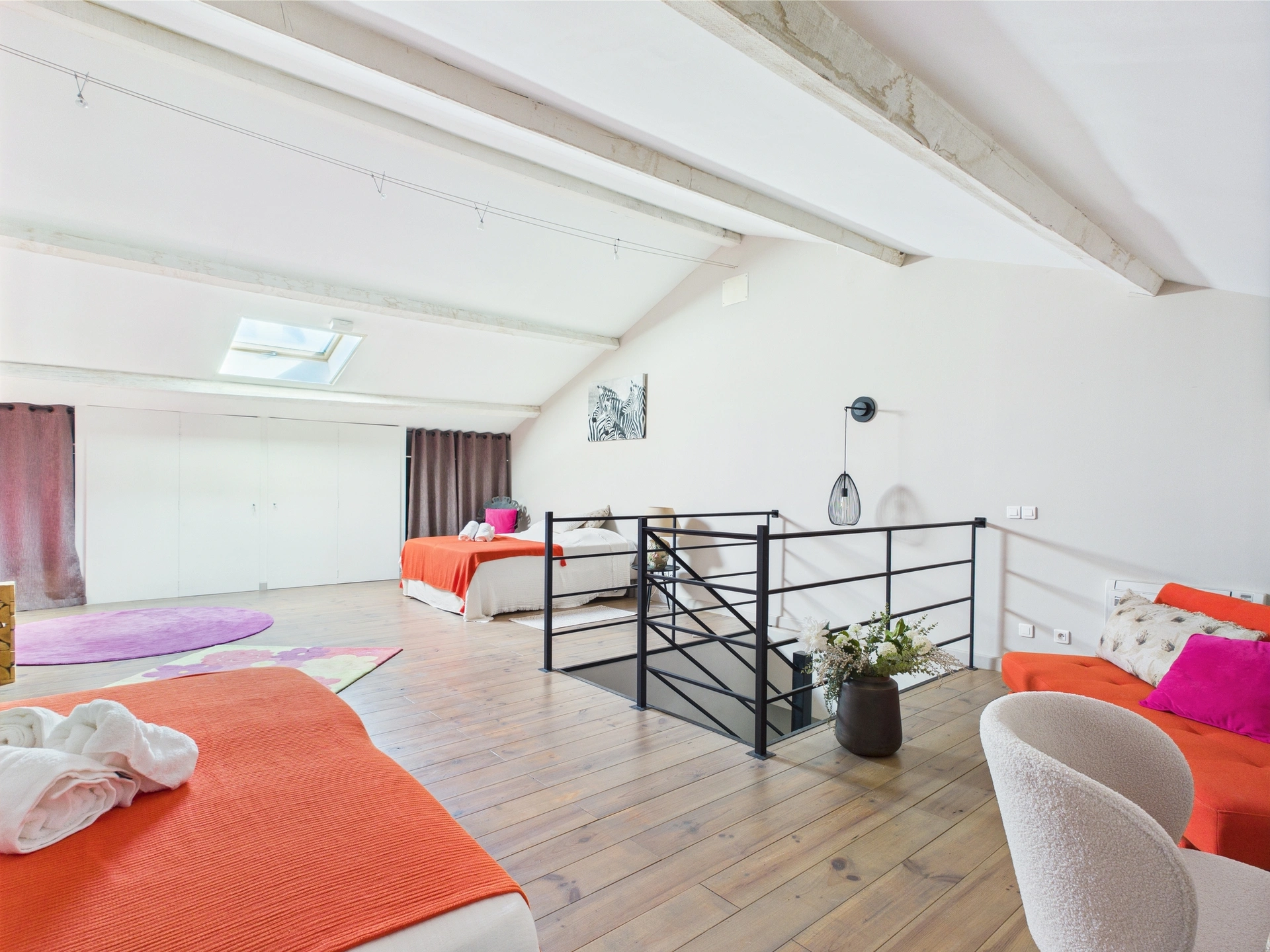 Rez-de-chaussée : Une grande cuisine équipée idéale pour préparer les produits du marché local, une salle à manger conviviale, un salon lumineux pour vos soirées détente, et un WC invité. 1er étage : Deux chambres spacieuses, chacune avec sa propre salle d’eau et WC privatif, offrant confort et intimité. 2e étage : Un espace enfants adorable avec deux lits superposés et un lit bébé, parfait pour les plus petits.